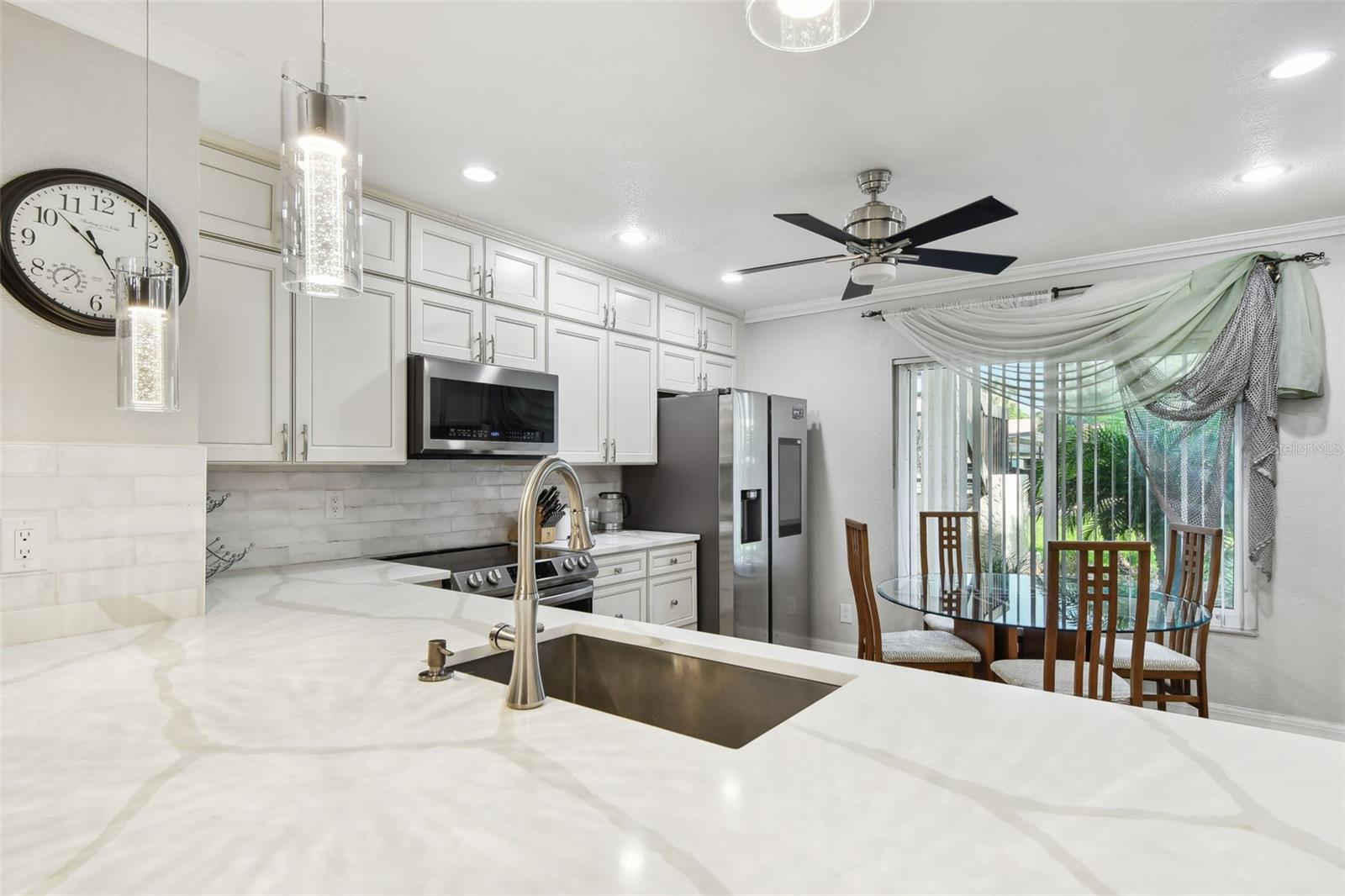 Brilliantly updated first floor home in Palm Harbor's desirable El Pasado Community! Newly renovated and full of wow factor with an ideal home site looking out on conservation. This well-kept community allows you to live a true CAREFREE Florida lifestyle. The reasonable community fees include cable, internet, community pool, exterior and grounds, sewer, trash and water!! You ONLY pay electric and UPGRADED WINDOWS throughout the home plus a 2020 new AC ensure stability for your electric bill. You just need to kick back and enjoy your luxuriously renovated home. Custom cabinetry, designer finishes and stainless appliances make the kitchen an entertainer's delight. The spacious great room boasts new flooring and fresh paint! Bathrooms have been fashionable renovated with designer choices and stunning tilework. The primary retreat offers serene conservation views, a posh ensuite bath and walk-in closet. Storage is not a problem with custom built ins and storage space as well as a laundry room with cabinetry. Living space is extended to lovely, enclosed patio. Relax, repose and take in the views! El Pasado is near to all... shopping, restaurants, medical and of course the famed Gulf beaches! A fabulously renovated home in an ideal location! Make it yours.