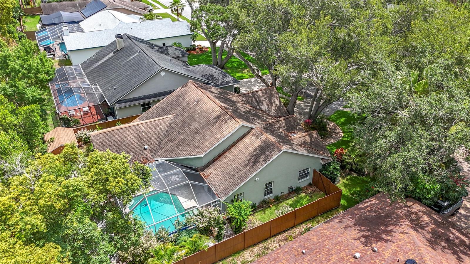 One or more photo(s) has been virtually staged. MOVE IN READY Home! Own this Palm Harbor dream home in the sought-after Groves at Cobbs Landing! This beautifully maintained 3-bedroom, 2-bathroom, 2-car garage, residence features a screen-enclosed saltwater pool, perfect for year-round enjoyment. Step inside to discover a spacious layout designed for comfort and entertaining. The open-concept living and dining areas have plenty of natural light and a seamless flow to the outdoor oasis. The kitchen has been completely remodeled with LG appliances and quartz countertops with Kraftmaid custom cabinetry with pull outs and a breakfast nook that overlooks the pool area. The primary suite boasts a private on-suite bath and direct access to the pool deck, while two additional bedrooms provide flexibility for guests, family or a home office, and are located on the opposite side of the home. Brand New Rheem Hot Water installed on 12/24/2025, with a (6 year warranty). Outside, enjoy the fully fenced backyard, ideal for pets or play, along with a detached storage shed to keep everything organized. Whether you're lounging poolside, hosting a barbecue, or relaxing under the stars, the backyard is built for Florida living. Located in a quiet cul-de-sac, well-kept neighborhood with access to top-rated schools, parks, shopping, and dining, this home combines comfort, convenience, and community. Extra features and updates include the following: Brand New Tile Shower in second bathroom, Vinyl Plank Flooring in Bedrooms 2 and 3, leaded glass front door, cathedral and vaulted ceilings, custom kitchen cabinetry from Kraftmaid with pullouts, quartz countertops, tile backsplash, new LG appliances, new salt water pool system, custom vinyl mocha privacy fence, WELL WATER FOR IRRIGATION, No Cost for watering, all RING cameras will stay and large storage shed with electricity. Don't miss your chance to own a piece of paradise in Palm Harbor! PROPERTY IS NOT LOCATED IN A FLOOD ZONE!