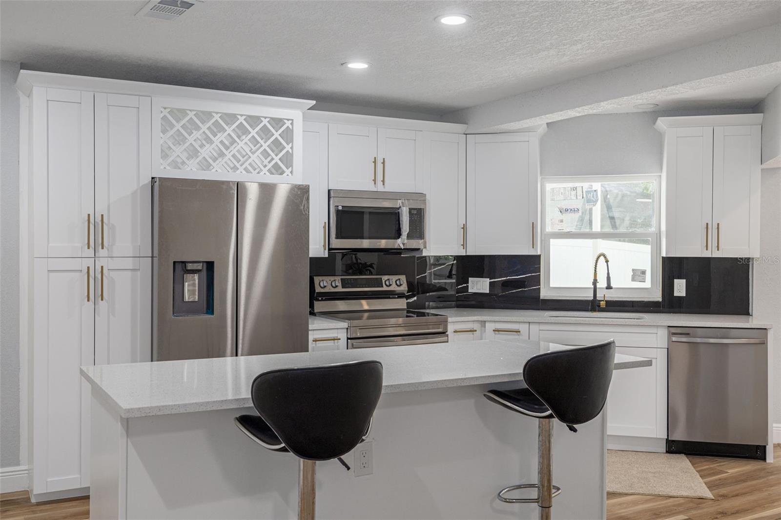 Don’t miss out on this fabulous, remodeled, mint-condition, two car garage, pool single-family home with pond view. Fantastic Non Flood Zone Location! It has 3 bedrooms and 2 bathrooms with an amazing back yard and pool facing the pond. New AC Unit NEW Garage Door Opener ,NEW roof, hurricane proof windows. The home is located in a unique community with conservation views ! It has a spectacular open living room vinyl plank . The kitchen has quartz counter-tops and with wooden cabinets, pantry. All 3 bedrooms have vinyl plank floors with the split plan. The master bedroom is with an ensuite bathroom. The entire house is tastefully painted with plenty of storage space. The bathrooms are completely renovated with new vanities, cabinets, tubs, a large shower, and modern accessories. It has a huge backyard with plenty of space with a beautiful pool, pond, and plenty of room to make your weekends unforgettable .Don’t miss the opportunity to call this breathtaking property your new home