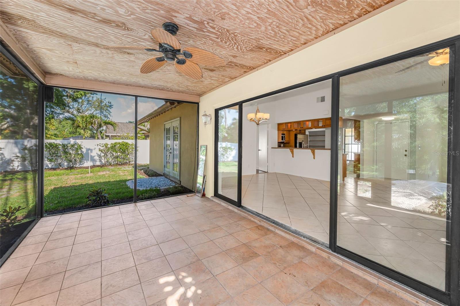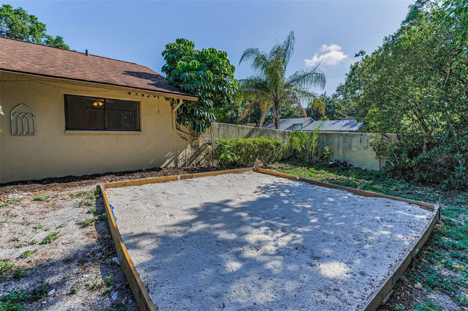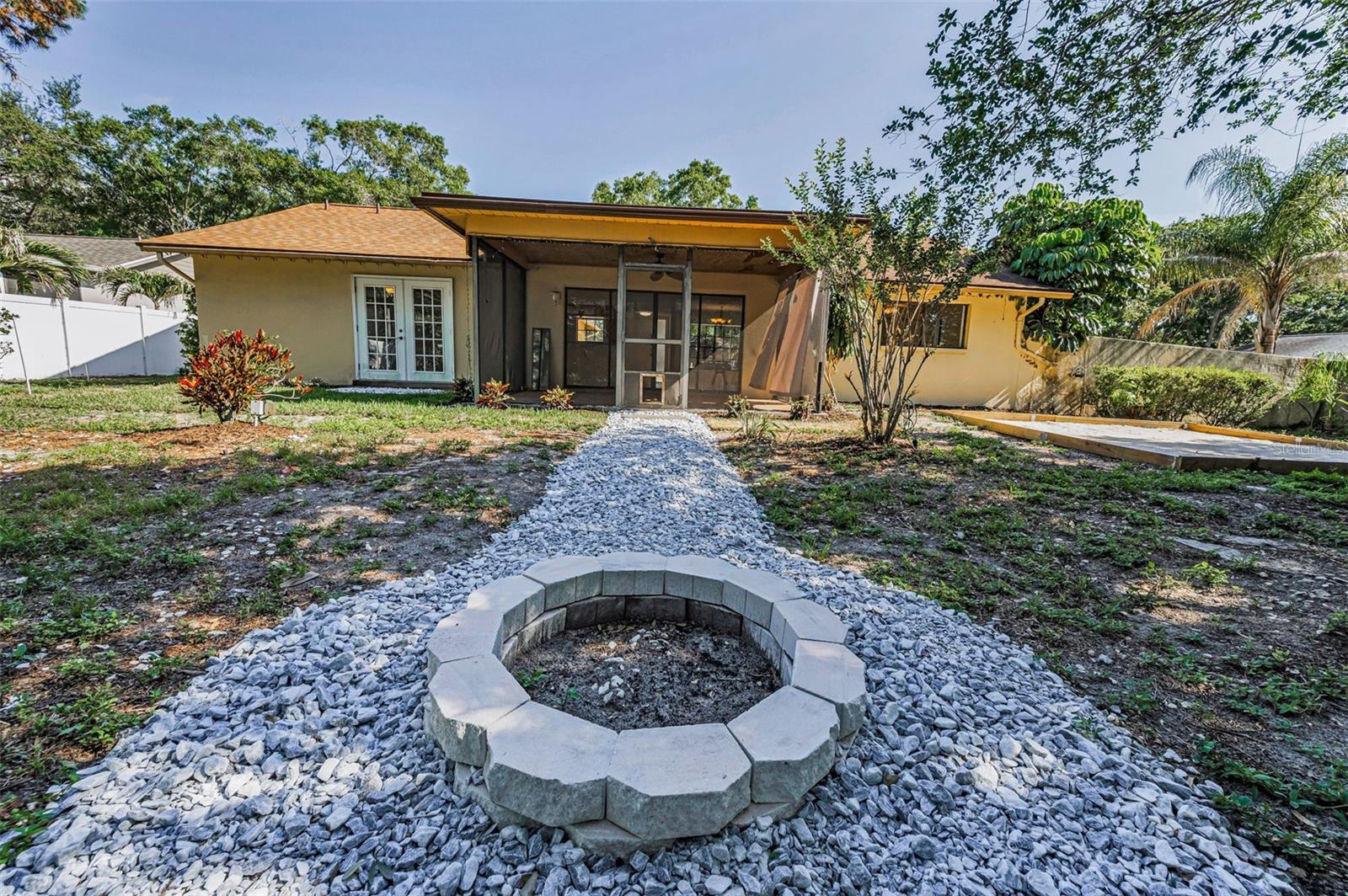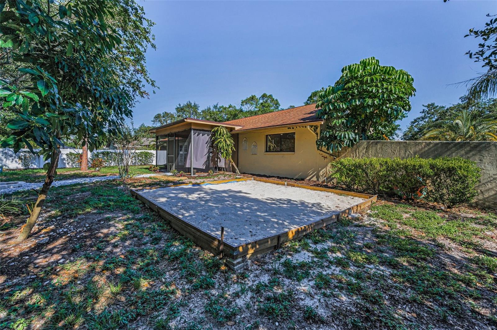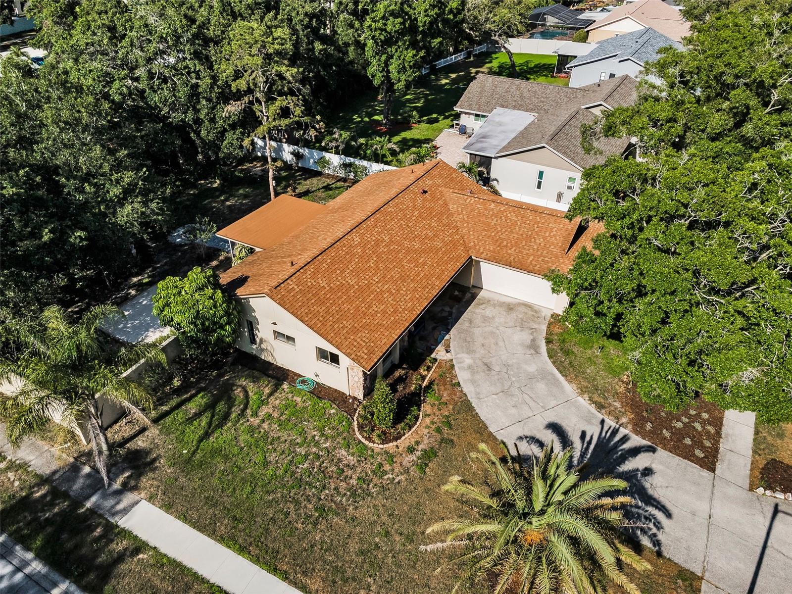 One or more photo(s) has been virtually staged. Welcome to this beautifully maintained 3-bedroom, 2-bathroom single-family home, perfectly situated on a private corner lot in one of Palm Harbor’s most desirable neighborhoods. Enjoy quintessential Florida living in a community with an optional HOA, no flood insurance requirement, and located in a non-evacuation zone. The home features a split-bedroom floor plan with an open, airy layout, highlighted by tile and wood laminate flooring throughout. Natural light pours in through large windows and sliding glass doors that lead to a spacious screened-in lanai—ideal for relaxing or entertaining. The heart of the home is the updated kitchen, complete with stainless steel appliances, wood cabinetry with under-cabinet lighting, recessed lighting, a movable island, and a generous walk-in pantry. Adjacent to the kitchen is a convenient laundry room with direct access to the attached two-car garage. The primary suite offers a tranquil retreat, featuring a large walk-in closet with custom shelving, double vanity sinks, and a step-down shower that doubles as a soaking tub. French doors open from the primary bedroom to a newly added rock patio and freshly landscaped lawn—perfect for enjoying the outdoors. The partially fenced backyard also includes a spacious sandbox area, easily convertible into an above-ground pool. Updates include a roof replaced in February 2020 and HVAC system upgraded in August 2021. Located just minutes from top-rated schools, shopping, dining, and the stunning Gulf Coast beaches, with Tampa International Airport and St. Pete-Clearwater Airport only 30–35 minutes away, this move-in ready home offers Florida charm and convenience without extra fees. Don’t miss this rare opportunity!