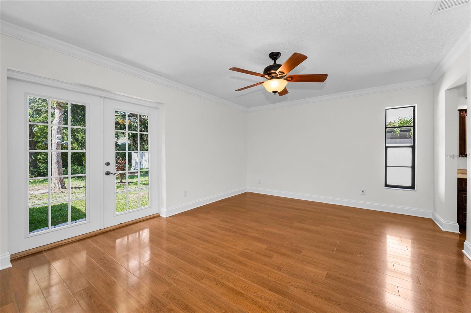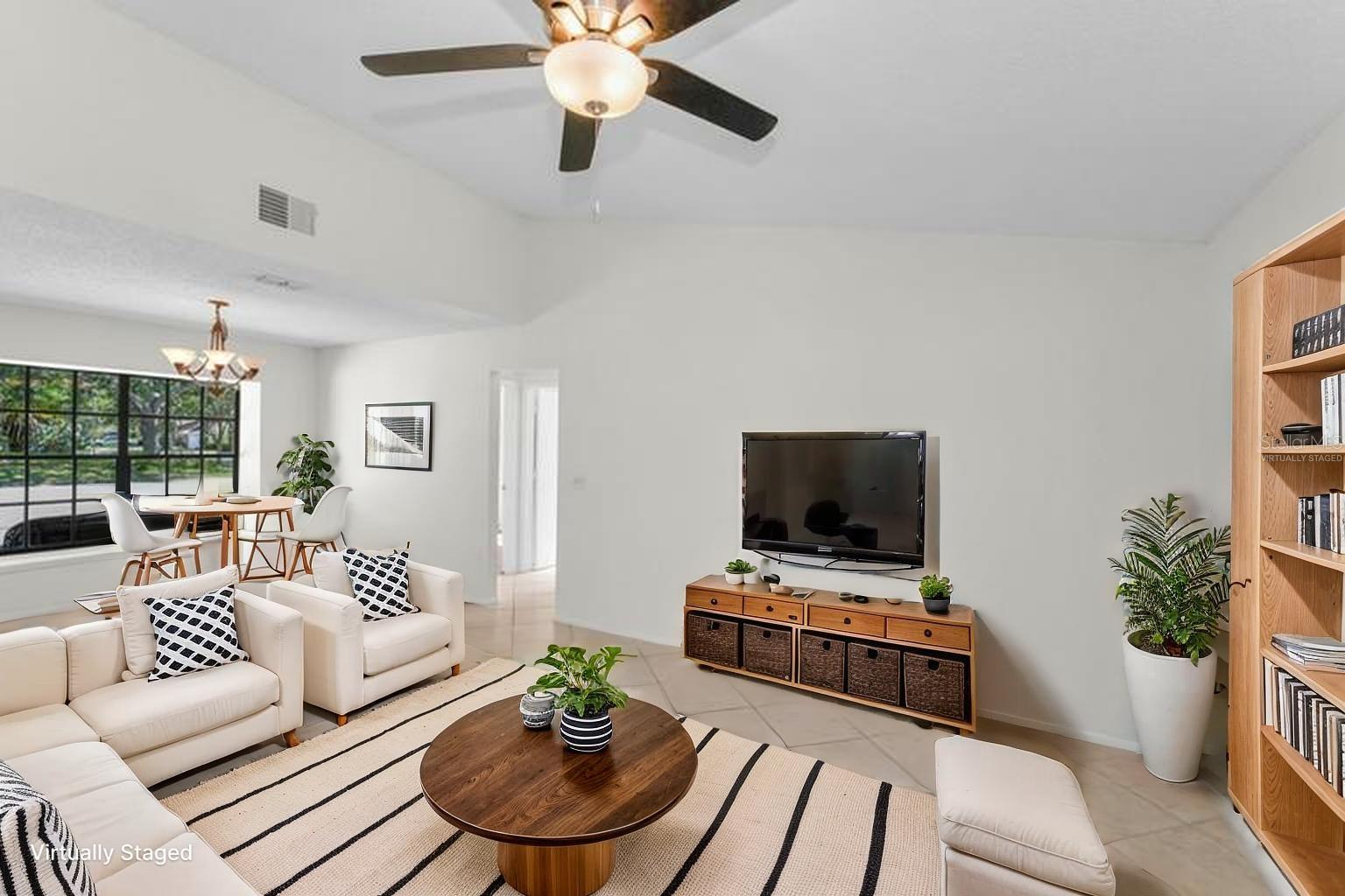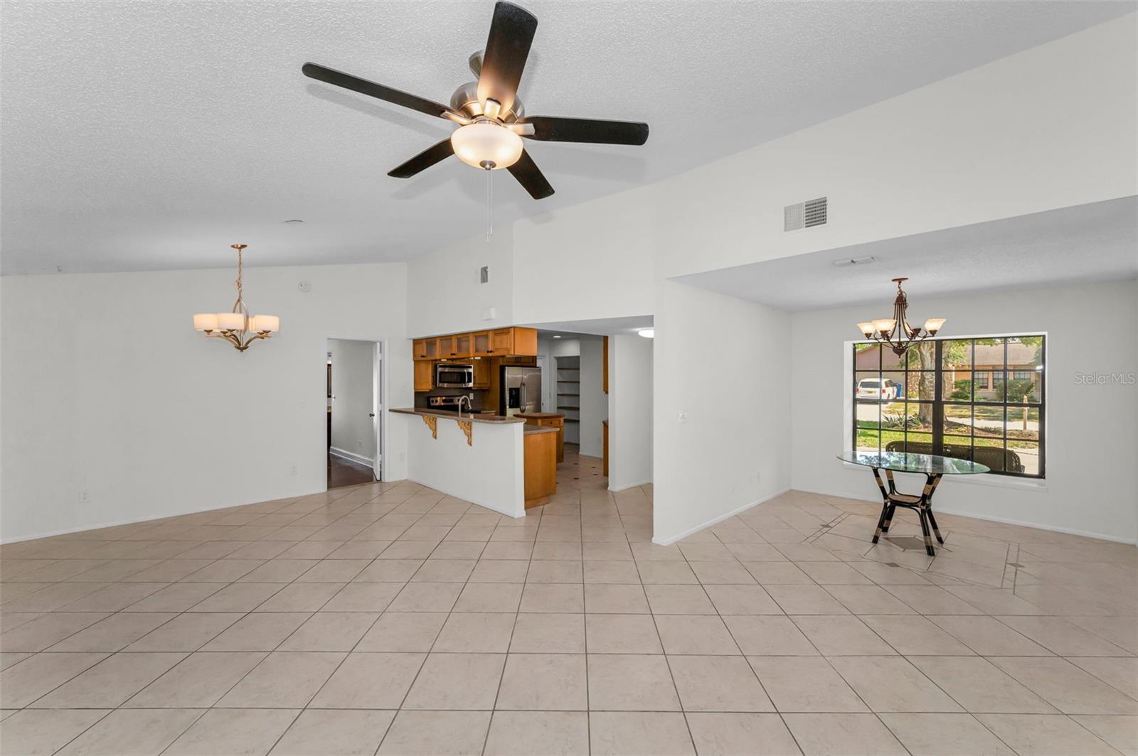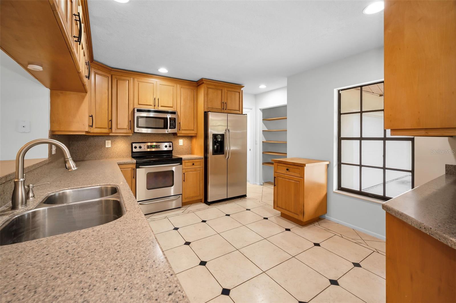 One or more photo(s) has been virtually staged. Welcome to this beautifully maintained 3-bedroom, 2-bathroom single-family home, perfectly situated on a private corner lot in one of Palm Harbor’s most desirable neighborhoods. Enjoy quintessential Florida living in a community with an optional HOA, no flood insurance requirement, and located in a non-evacuation zone. The home features a split-bedroom floor plan with an open, airy layout, highlighted by tile and wood laminate flooring throughout. Natural light pours in through large windows and sliding glass doors that lead to a spacious screened-in lanai—ideal for relaxing or entertaining. The heart of the home is the updated kitchen, complete with stainless steel appliances, wood cabinetry with under-cabinet lighting, recessed lighting, a movable island, and a generous walk-in pantry. Adjacent to the kitchen is a convenient laundry room with direct access to the attached two-car garage. The primary suite offers a tranquil retreat, featuring a large walk-in closet with custom shelving, double vanity sinks, and a step-down shower that doubles as a soaking tub. French doors open from the primary bedroom to a newly added rock patio and freshly landscaped lawn—perfect for enjoying the outdoors. The partially fenced backyard also includes a spacious sandbox area, easily convertible into an above-ground pool. Updates include a roof replaced in February 2020 and HVAC system upgraded in August 2021. Located just minutes from top-rated schools, shopping, dining, and the stunning Gulf Coast beaches, with Tampa International Airport and St. Pete-Clearwater Airport only 30–35 minutes away, this move-in ready home offers Florida charm and convenience without extra fees. Don’t miss this rare opportunity!