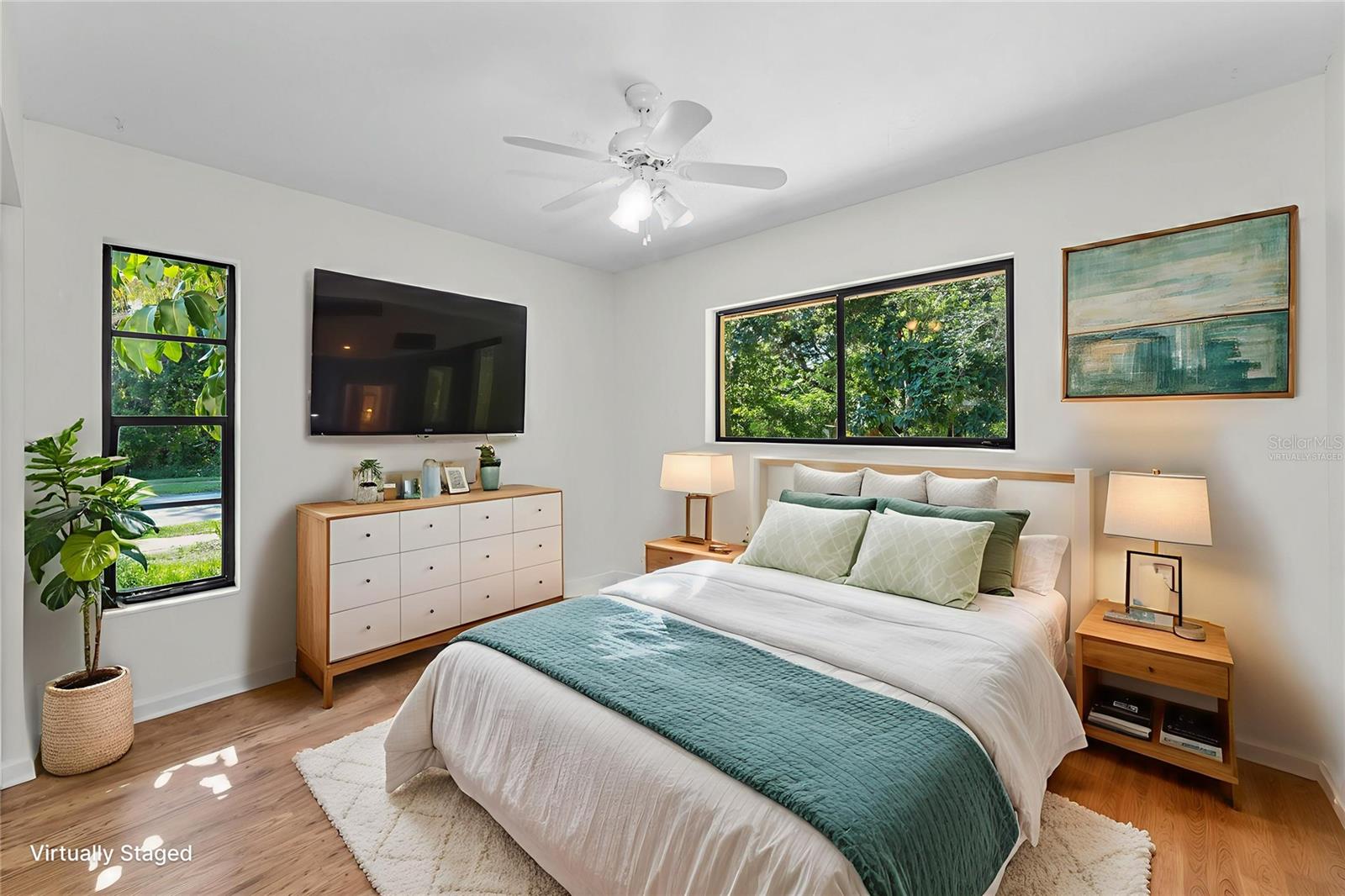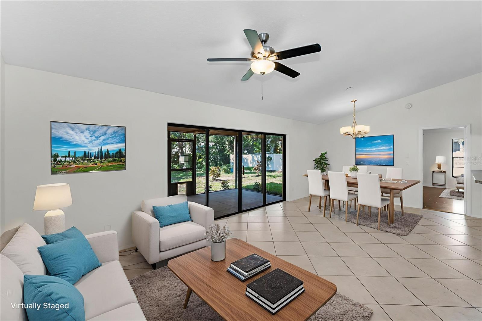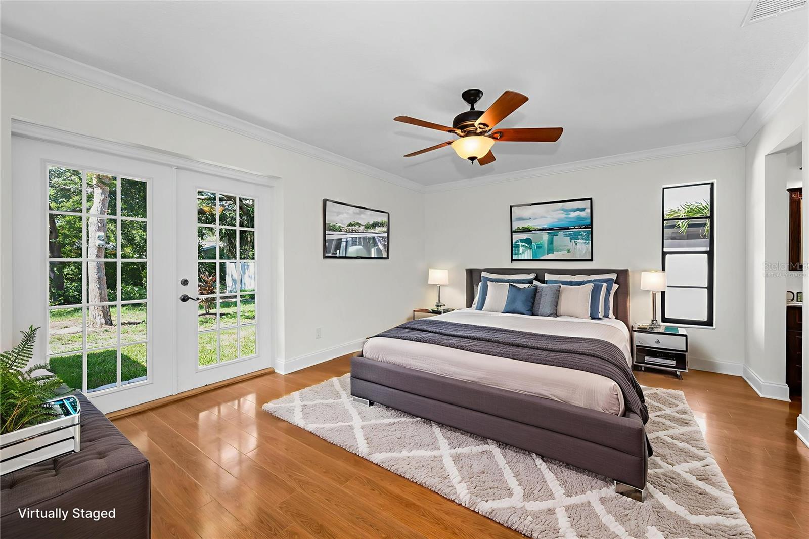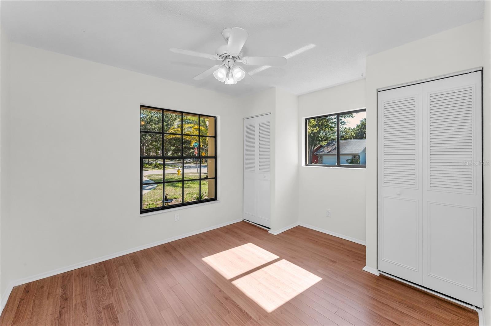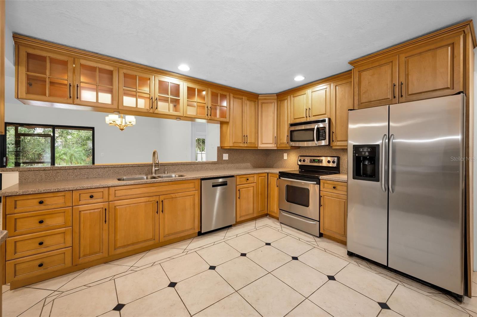 One or more photo(s) has been virtually staged. Welcome to this beautifully maintained 3-bedroom, 2-bathroom single-family home, perfectly situated on a private corner lot in one of Palm Harbor’s most desirable neighborhoods. Enjoy quintessential Florida living in a community with an optional HOA, no flood insurance requirement, and located in a non-evacuation zone. The home features a split-bedroom floor plan with an open, airy layout, highlighted by tile and wood laminate flooring throughout. Natural light pours in through large windows and sliding glass doors that lead to a spacious screened-in lanai—ideal for relaxing or entertaining. The heart of the home is the updated kitchen, complete with stainless steel appliances, wood cabinetry with under-cabinet lighting, recessed lighting, a movable island, and a generous walk-in pantry. Adjacent to the kitchen is a convenient laundry room with direct access to the attached two-car garage. The primary suite offers a tranquil retreat, featuring a large walk-in closet with custom shelving, double vanity sinks, and a step-down shower that doubles as a soaking tub. French doors open from the primary bedroom to a newly added rock patio and freshly landscaped lawn—perfect for enjoying the outdoors. The partially fenced backyard also includes a spacious sandbox area, easily convertible into an above-ground pool. Updates include a roof replaced in February 2020 and HVAC system upgraded in August 2021. Located just minutes from top-rated schools, shopping, dining, and the stunning Gulf Coast beaches, with Tampa International Airport and St. Pete-Clearwater Airport only 30–35 minutes away, this move-in ready home offers Florida charm and convenience without extra fees. Don’t miss this rare opportunity!