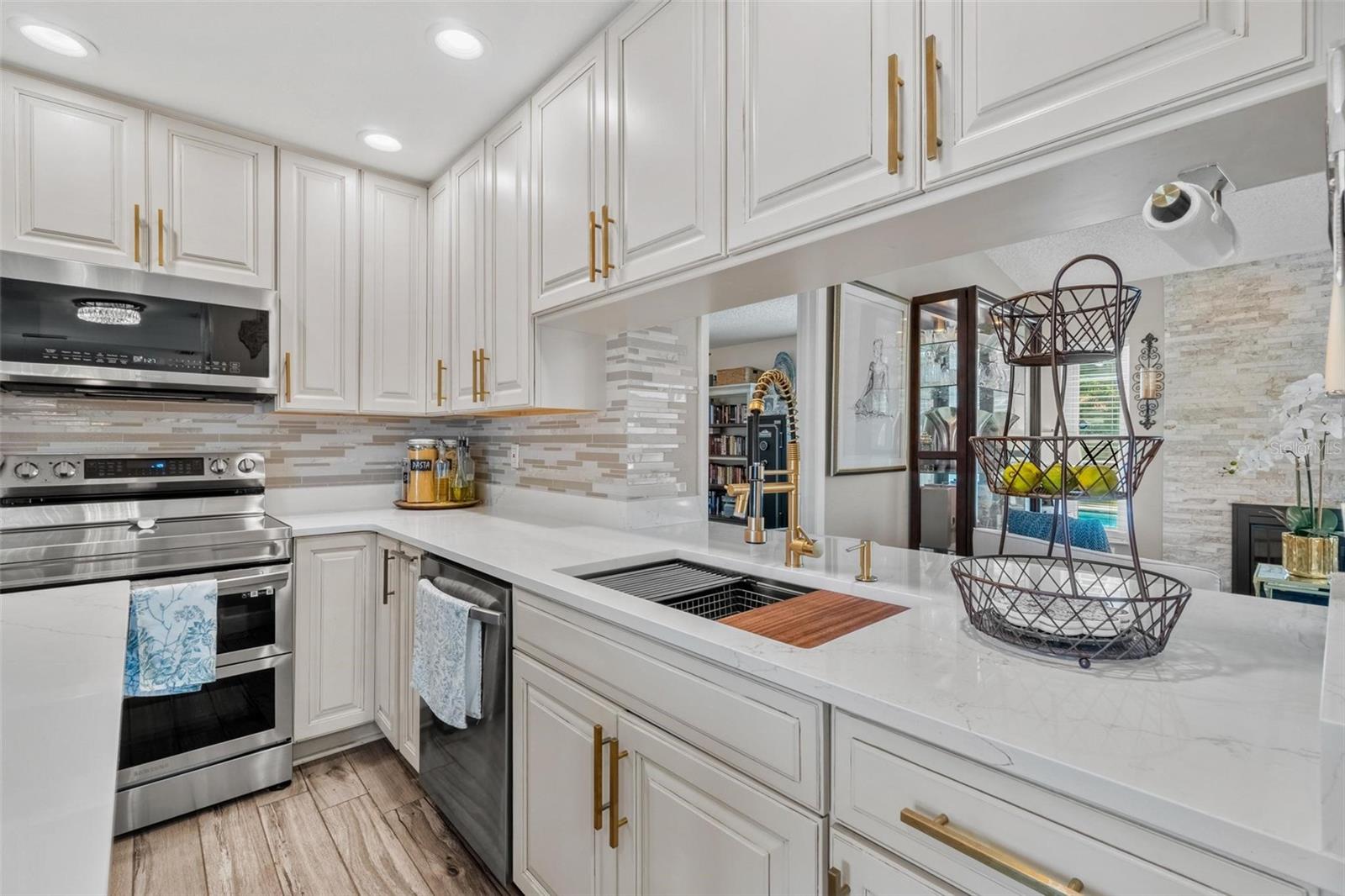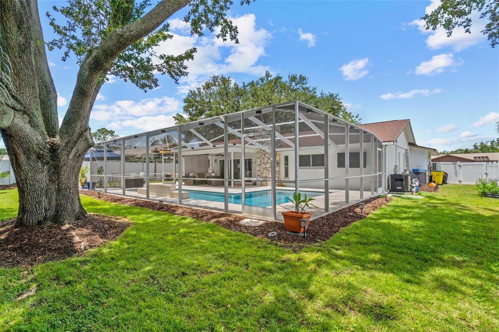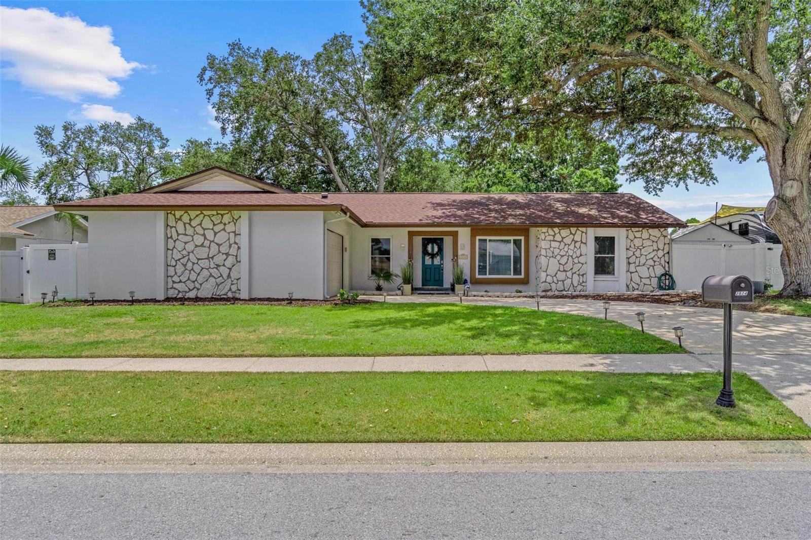 Welcome to your dream pool home in the sought-after Rustic Oaks community, perfectly situated within the highly desirable Palm Harbor University school zone. This immaculate, fully remodeled residence impresses from the moment you arrive, boasting gorgeous curb appeal with stone accents, fresh landscaping with in-ground irrigation, and a side-load garage. The home is located on one of the highest streets in the area – 65 feet above sea level in flood zone X – providing peace of mind that you’re high and dry, with no flood insurance required. Step inside to discover a thoughtfully designed open-concept floor plan featuring a spacious great room layout with soaring cathedral ceilings, a cozy wood-burning fireplace, and split bedrooms for privacy. The gourmet kitchen is truly the heart of the home, showcasing elegant Thomasville custom cabinetry, granite countertops, a brand-new island, beverage station, and top-of-the-line Samsung Smart Hub stainless steel appliances – including a French door smart refrigerator and double oven range. Quartz crystal chandeliers accent the expansive living and dining areas, perfect for entertaining. The primary suite is a peaceful retreat with a large walk-in closet and luxurious en suite bathroom. Additional bedrooms are generously sized, offering flexibility for family, guests, or a home office. Enjoy resort-style living in your private backyard oasis featuring a screen-enclosed lanai with light travertine tile, a stunning temperature-controlled saltwater pool, and a brand-new paved patio area – ideal for outdoor dining and entertaining under the Florida sun. The fully automated smart home system includes a Ring doorbell camera, Honeywell Wi-Fi thermostat, ADT Pulse security system with front and backyard cameras, and hurricane-impact windows and sliders (installed 2012, lifetime warranty). Recent updates provide peace of mind and modern comfort, including a new roof (2023), electrical panel (2016), Tesla/EV charger, new water softener salt system (2022), and high-efficiency Thermau heater with Pentair pool equipment and rain monitor sensor. The upgraded garage adds 400 sq ft of heated space – perfect for an office, gym, or flex space – with a new split A/C unit with heat, a new app-controlled garage door opener, and new attic. And the location can’t be beat – just 5 miles from the beach, 2 miles to Ozona, 30 minutes to Weeki Wachee, and close to downtown Palm Harbor, Safety Harbor, St. Pete/Clearwater Airport, and the new Trader Joe’s. This home offers luxury, comfort, and security with no flood insurance required – and even stays powered during storms thanks to newly upgraded electrical lines. Schedule your private showing today and come experience the best of Palm Harbor living.