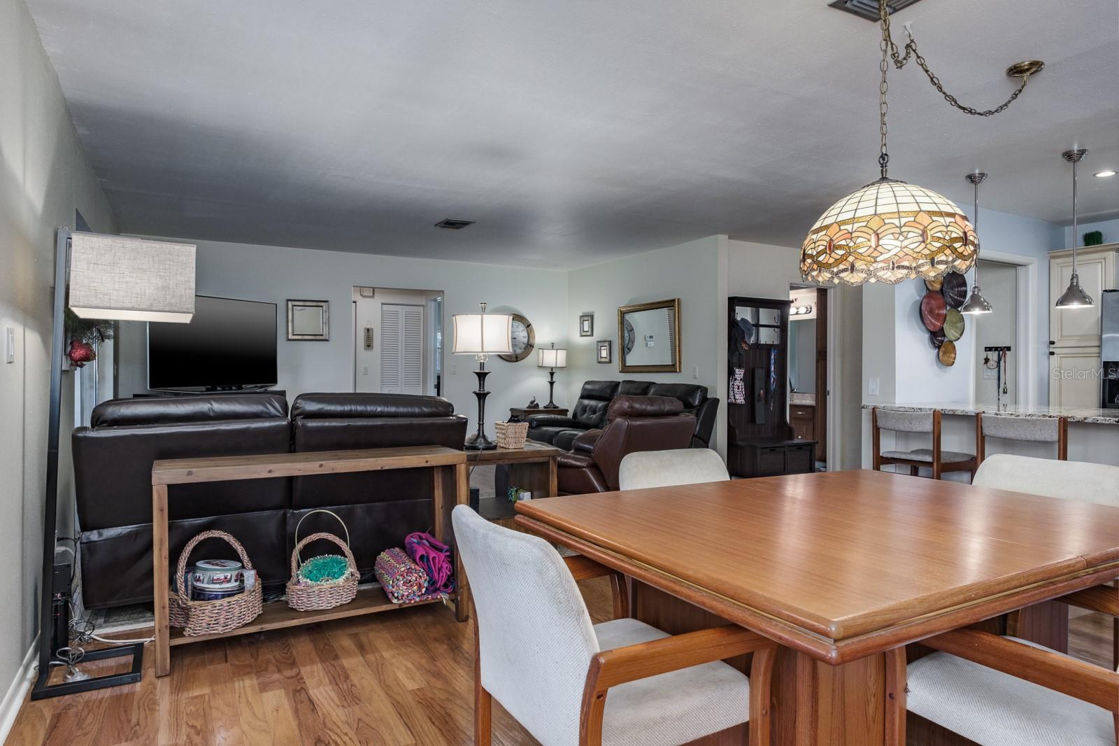 Location, Location, Location!!! Your carefree, maintenance free lifestyle awaits in fabulous Palm Harbor! Move-in ready, one-story villa with just under 1,700 sq ft of living space. Two bedrooms, 2 full bathrooms and an oversized 2 car tandem garage. The front patio leads to the main living space offering an open floor plan with sizable living and dining areas ideal for fine family living and entertaining and featuring gorgeous wood flooring. The open and inviting, updated kitchen boasts plank tile flooring, stunning granite counters, tumble marble backsplash, designer wood cabinetry with crown molding, pullout butler drawers and under cabinet lighting, a convenient large cabinet pantry with butler drawers, upgraded hardware and designer pendant lighting over the generous island and breakfast bar, stainless steel range, built-in microwave, side by side refrigerator and dishwasher. The home offers a magnificent bonus space with an enclosed, air-conditioned Florida Room found through the sliding glass doors at the rear of the home and family and entertaining space is even further extended to an enclosed sitting area overlooking the open patio finished with lovely pavers and creating the perfect setting for your morning coffee or evening cocktail! The serene view looks out on a pond and the golf course beyond. Two spacious bedrooms are located on the opposite side of the home. The secondary bedroom at the front of the home features wood flooring, a wall closet and ensuite bath with a glass door tub/shower combination, single cultured marble vanity with abundant storage in the beautiful tower cabinetry. Surprise storage space is revealed in the generous sized, deep hallway closet. The spacious primary bedroom offers an expansive walk-in closet and boasts an ensuite bath with corian counter vanity and full walk-in shower with floor to ceiling tile heightened by designer listello accents. The garage is arranged for 2 car tandem parking or plenty of room for a single car plus a golf cart! The home boasts newer windows, and the roof was replaced in 2013. The well-manicured Tarpon Woods Tanglewood community has a delightful community pool and offers a maintenance free lifestyle in a valued location. The East Lake location has you minutes from the beautiful John Chestnut Park, several golf courses, Pinellas Trail, shopping, restaurants, medical and fine family living. Low monthly HOA fee includes Cable TV, Internet, Trash, Grounds Maintenance and that refreshing community pool and patio. Live a true carefree Florida lifestyle…. Live your dream!