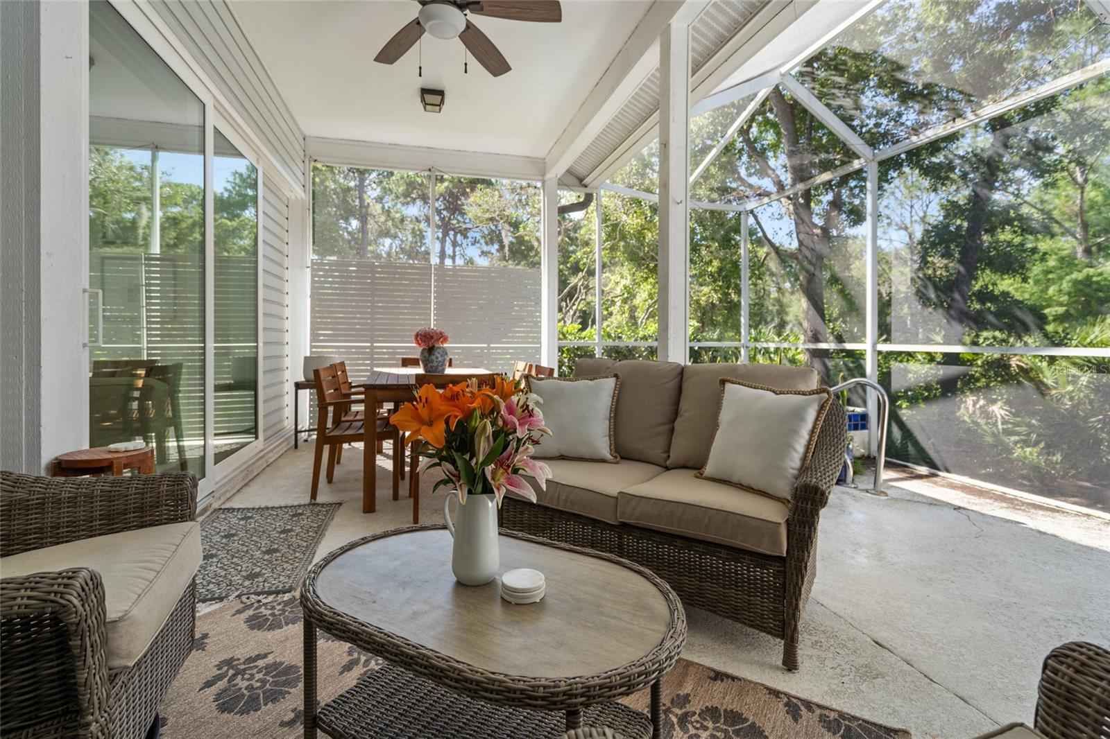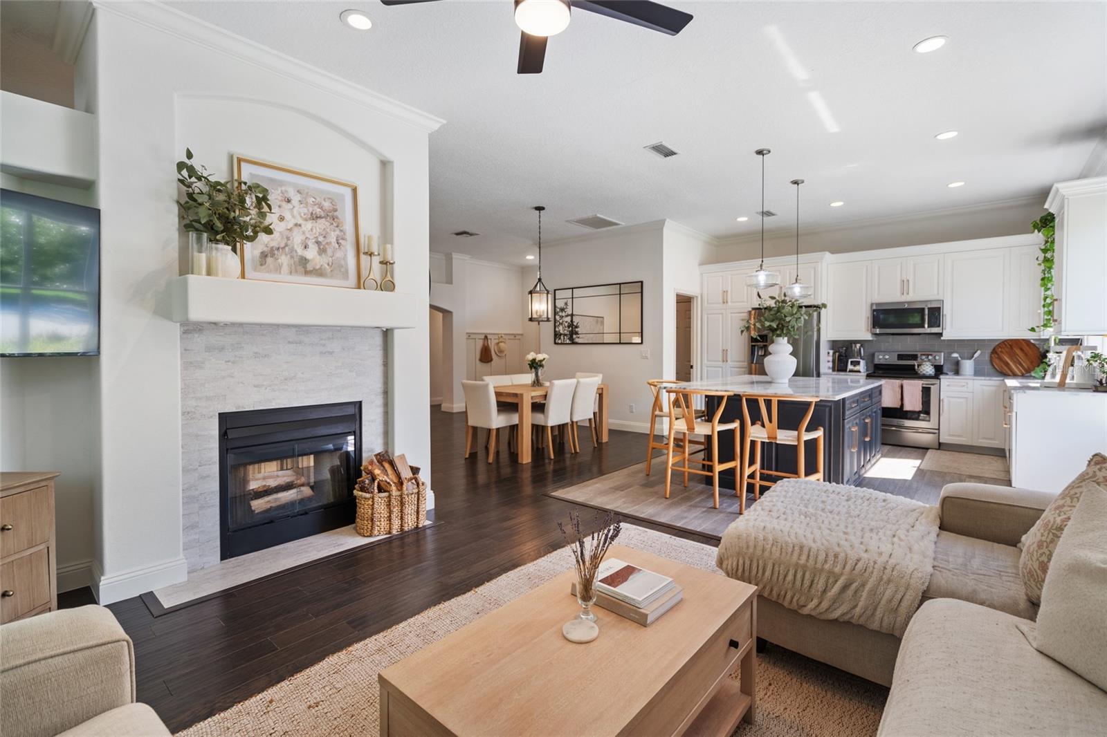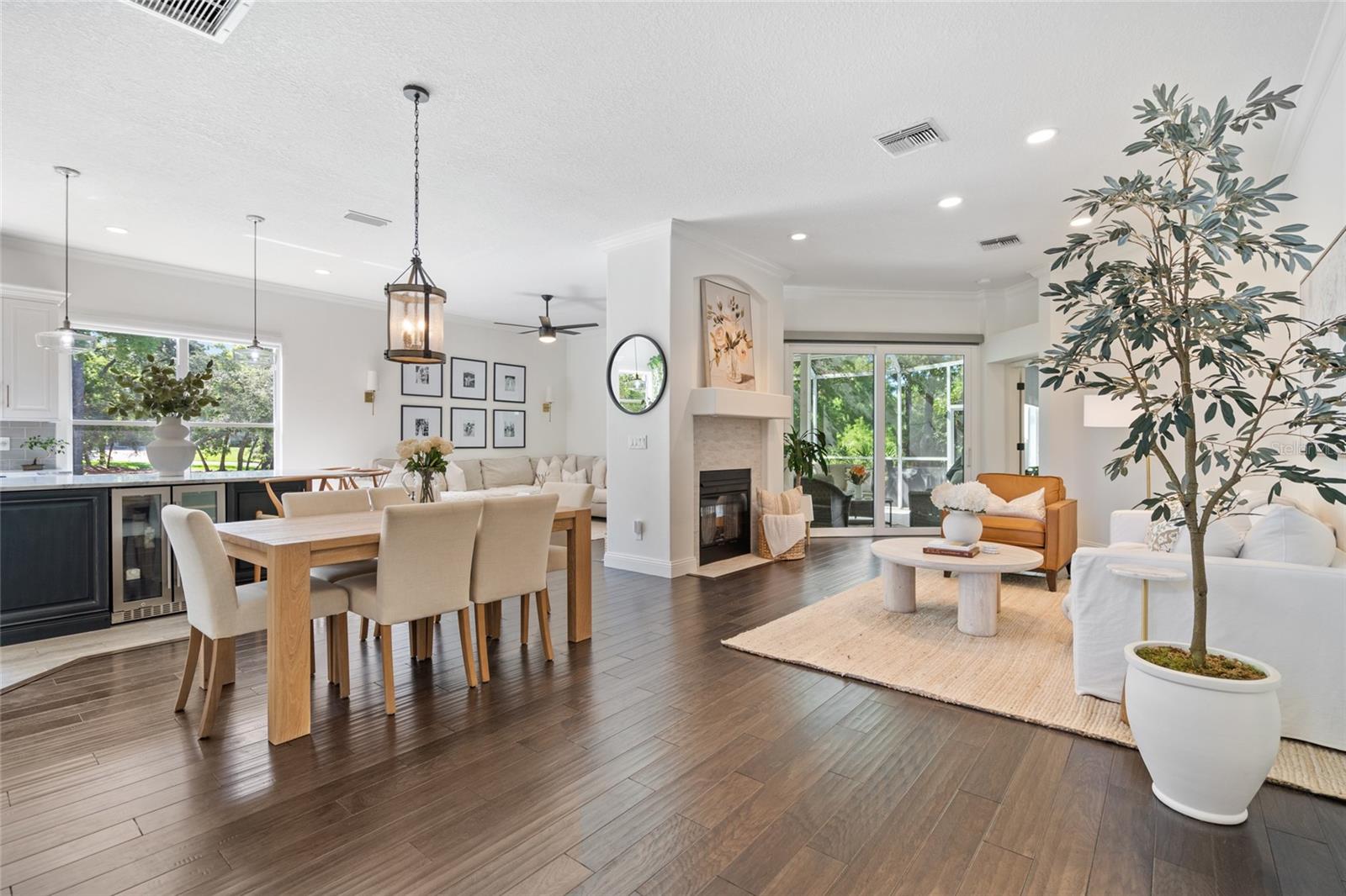 Welcome to 2182 Trevor Rd, an extensively updated 4-bedroom, 2-bath home located in the Enclave at Gleneagles, one of Palm Harbor’s most desirable neighborhoods. Situated on a quiet corner lot with no rear neighbors, this property offers both privacy and a sense of open space rarely found in residential settings. Once you step inside this beauty you are welcomed by 10-foot ceilings, engineered hardwood floors throughout the main living areas, and a bright, open-concept layout designed for both everyday comfort and elegant entertaining. Large windows and NEW hurricane-impact sliding glass doors flood the home with natural light and feature remote-controlled custom blinds for added ease and style. At the heart of the home is a stunning, oversized gourmet kitchen, truly the centerpiece of the residence. Designed for both beauty and functionality, it boasts solid surface countertops, a massive center island with cabinet storage on both sides, stainless steel appliances, a wine refrigerator, and sleek modern finishes. The kitchen flows seamlessly into the main living and dining areas, making it the perfect gathering space for family and friends. The home includes four generously sized bedrooms, including a private owner’s suite with a large walk-in closet and direct access to the screened lanai. The fourth bedroom offers great flexibility as a den, office, or guest room. All secondary bedrooms feature newly installed custom California closets. Additional Highlights: • Three NEW high-impact hurricane-rated sliding doors • Updated modern lighting and ceiling fans • NEW interior paint and upgraded door hardware • Popcorn ceilings removed and professionally retextured • NEW Epoxy-coated garage floor • NEW Reverse osmosis system and water softener • NEW irrigation system and well pump • Renovated guest bathroom Enjoy tranquil evenings in the screened lanai, where you can relax and unwind while overlooking the open green space behind—no rear neighbors, just peace and privacy. Located in the established Gleneagles community with mature trees, well-kept surroundings, and quiet streets. Also, close to great shopping including a brand new TRADER JOE'S nearby. With 1,964 square feet of thoughtfully designed living space, a 2-car garage, and an HOA that includes cable and internet, this beautifully remodeled home is move-in ready and offers exceptional value in one of Palm Harbor’s most desirable locations. Additionally, this home is not in a flood zone, providing peace of mind. A true standout...don’t miss the opportunity to make this remarkable home yours.