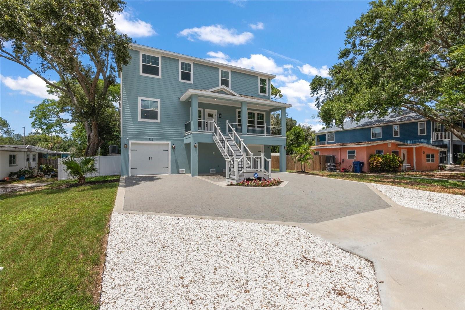 Welcome to the quaint tree-lined streets and golf-cart friendly town of Crystal Beach. Built in 2023, this three-level home combines modern construction with coastal charm! The 2,340 heated square footage includes 4 bedrooms, 2.5 bathrooms with thoughtfully designed living space that perfectly captures the essence of laid-back Florida living. Situated on a 75' x 120' lot and located in unincorporated Pinellas County, you'll enjoy the freedom of no HOA restrictions, with plenty of room to bring your boat, RV, golf cart, pets, and all your toys. The ground level of this home is all about convenience and storage, offering two generous garage bays with additional space for a golf cart, bikes, paddleboards, fishing gear, jet skis, and has a keyed storage closet. A grand staircase and 196 square foot covered front porch welcome you and your guests to the elevated main living area. At the heart of the home, the kitchen seamlessly connects the open floor plan with the dining and living rooms-perfect for both everyday living and effortless entertaining. The kitchen stands out with quartz countertops, Frigidaire stainless steel appliances, convection oven and microwave wall combo, sleek vent hood, center island with counter height seating, closet pantry, and coffee nook. The spacious dining and living room allow easy access to first and third levels along with a half bath and additional hall storage closet. The primary suite is conveniently tucked away just off the main living area, offering privacy and comfort. This spacious retreat offers 2 closets and an ensuite bathroom with a double sink vanity, glass framed walk-in shower, and a soaking garden tub-a tranquil place to unwind at the end of the day. Carpeted stairs with landing carry you to the top floor, which includes a versatile loft space-ideal as a second living area, playroom, or reading nook, alongside three spacious bedrooms, and a well-appointed full bath with walk-in shower. The upstairs laundry room is complete with laundry countertop, storage cabinets, and outfitted with the option of front or top load washer and dryer. Just off the garage, a central hallway connects to a 279 square foot covered patio. The backyard’s size and configuration offer the flexibility to bring your vision to life, whether it’s a sparkling pool, lush vegetable garden, or the ultimate outdoor entertainment space, the possibilities are endless! Located just blocks from the Pinellas Trail and a short distance to Live Oak Park- an ideal spot to catch breathtaking sunsets! The community allows short term rentals and conveniently located to grocery, dining, Ozona, Downtown Palm Harbor, St. Joseph Sound, Sutherland Bayou Boat Ramp, top-rated schools, Dunedin Causeway, & Honeymoon Island State Park. Crystal Beach invites you to slow down, unwind, and truly enjoy coastal living. This is your opportunity to make one of Pinellas County’s most charming communities your home!