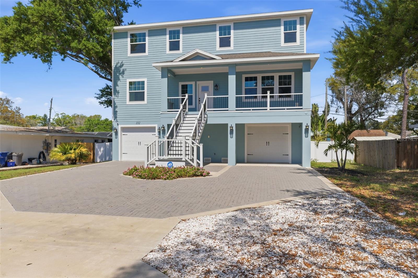 Built in 2023, this elevated home blends modern construction with timeless coastal charm, offering 4 bedrooms, 2.5 bathrooms, and 2,340 heated square feet of thoughtfully designed living space. Situated on a 75' x 120' lot, located in unincorporated Pinellas County, you'll enjoy the benefits of no HOA restrictions with the freedom and plenty of room to bring your boat, RV, golf cart, pets, and all of your toys. The ground level is designed for convenience with two garage bays plus additional space for a golf cart, bikes, paddleboards, fishing gear, jet skis, and a keyed storage closet for added security of tools. A welcoming staircase leads to the 196 sq ft covered front porch and the elevated main living level. The open-concept layout connects the living and dining areas to a beautiful kitchen. The kitchen stands out with quartz countertops, Frigidaire stainless steel appliances, convection oven and microwave wall combo, sleek vent hood, center island with counter height seating, closet pantry, and coffee nook. The spacious dining and living room allow easy access to first and third levels along with a half bath and additional hall storage closet. The primary suite is conveniently tucked away just off the main living area, offering privacy and comfort. This retreat offers 2 closets and an ensuite bathroom with a double sink vanity, glass framed walk-in shower, soaking garden tub, and water closet with linen closet. A carpeted staircase leads to a versatile loft space ideal as a second living area for workspace, playroom, or reading nook, alongside three guest bedrooms, and a well-appointed full bath with dual sink vanity and walk-in shower. The upstairs laundry room is complete with laundry countertop, storage cabinets, and outfitted for the option of front or top load washer and dryer. Just off the garages, a central hallway connects to a 279 square foot covered patio. The backyard’s size and configuration offer the flexibility to bring your vision to life: whether it’s a sparkling pool, lush vegetable garden, or the ultimate outdoor entertainment space, the possibilities are endless! Cruise your golf cart to sunset views at Live Oak Park, bike the nearby Pinellas Trail, or spend the day at Honeymoon Island State Park. With short-term rentals allowed, this home offers flexibility as a primary residence, vacation getaway, or investment opportunity. Conveniently located to grocery, dining, Ozona, Downtown Palm Harbor, St. Joseph Sound, Sutherland Bayou Boat Ramp, top-rated schools, Dunedin Causeway, & Honeymoon Island State Park. Crystal Beach invites you to slow down, unwind, and truly enjoy coastal living. This is your opportunity to make one of Pinellas County’s most charming communities your home!