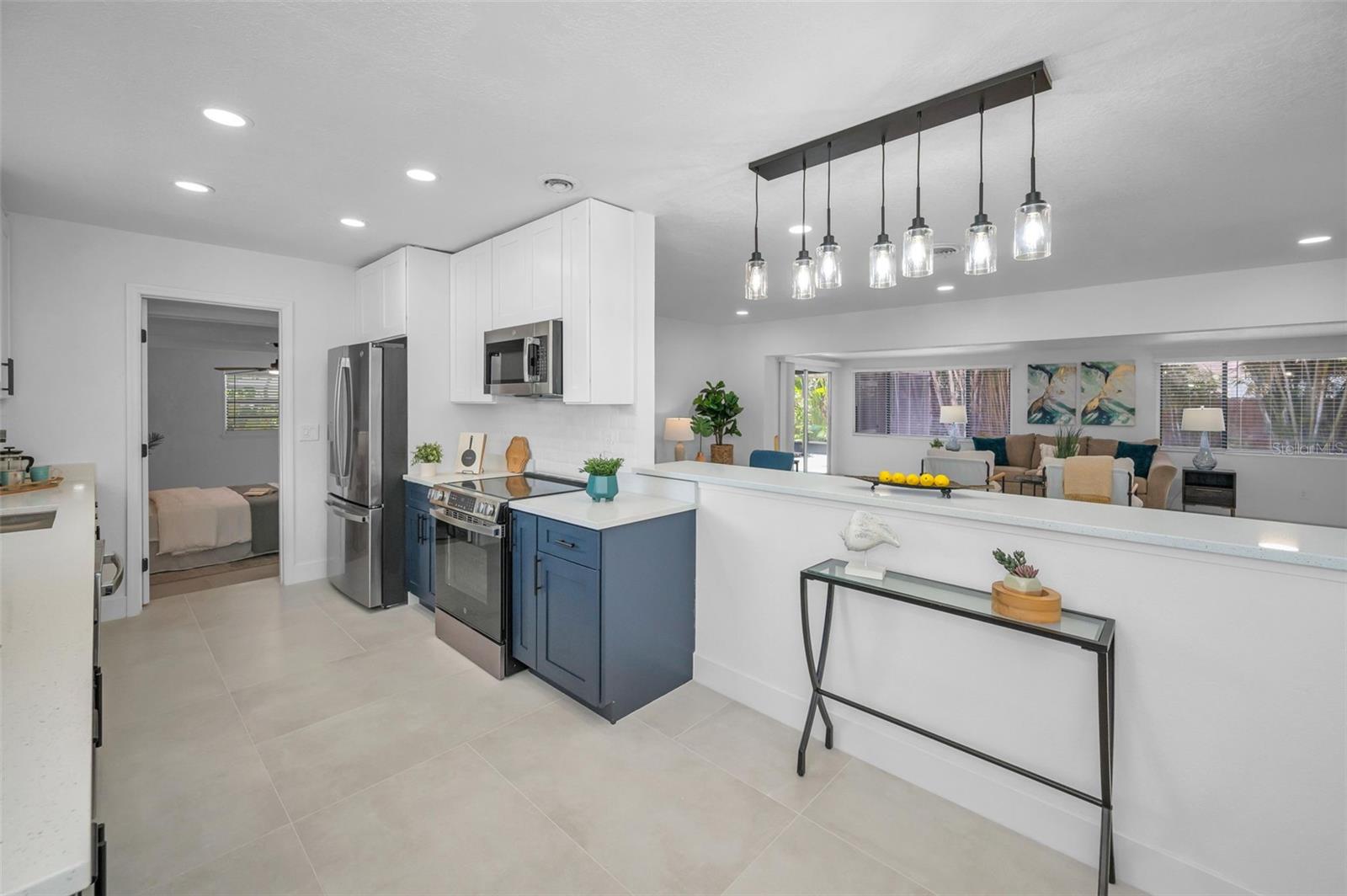 Potential Airbnb income awates! Welcome to Paradise! Stunning Coastal Retreat on Indian Harbor Bluff Island! Your dream home awaits in the highly sought-after community of Indian Bluff! This beautifully renovated four-bedroom, two-bathroom residence embodies the perfect blend of modern elegance and coastal charm. Step inside to discover an open and airy living space adorned with exquisite tile, creating a seamless flow throughout the home. The heart of this home features brand-new, top-of-the-line GE appliances, complemented by stunning quartz countertops and stylish shaker cabinets, including a convenient bar area- perfect for entertaining family and friends. The HVAC is (2024), Roof is (2020). The master bedroom is a true sanctuary, complete with a beautifully renovated ensuite bathroom with double vanities and a beautiful walk in shower. The master also has a door that opens to the expansive lanie, inviting you to enjoy serene mornings and warm Florida evenings. The spacious back yard is freshly mulched and shelled to provide the coastal feel you've been waiting for. The backyard also offers endless possibilities for outdoor living, with ample room to add a pool and create your own private oasis. With its key west-inspired design and coastal vibe, this property captures the essence of Florida living at its finest. Situated just minutes away from world-famous beaches, shopping and dining, this gem won't last long! Don't miss your chance to own a piece of paradise in Indian Bluff Island- schedule your viewing today!