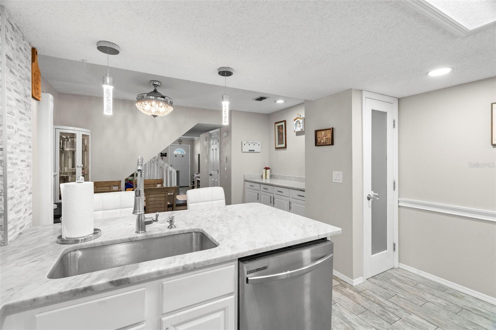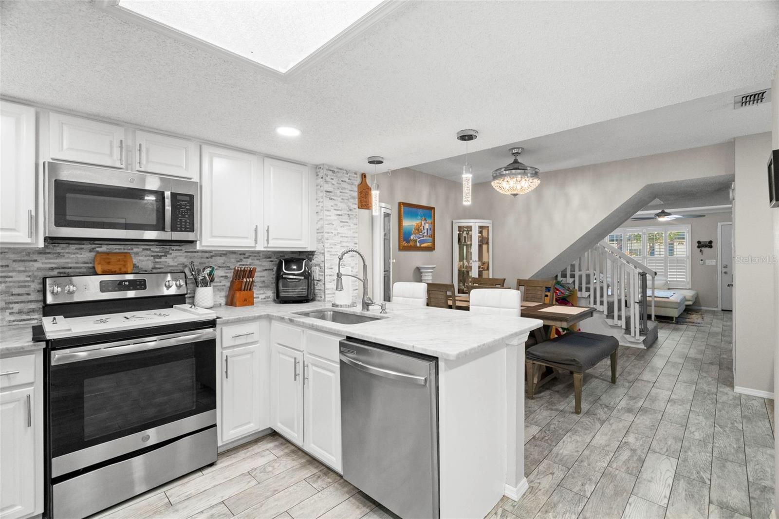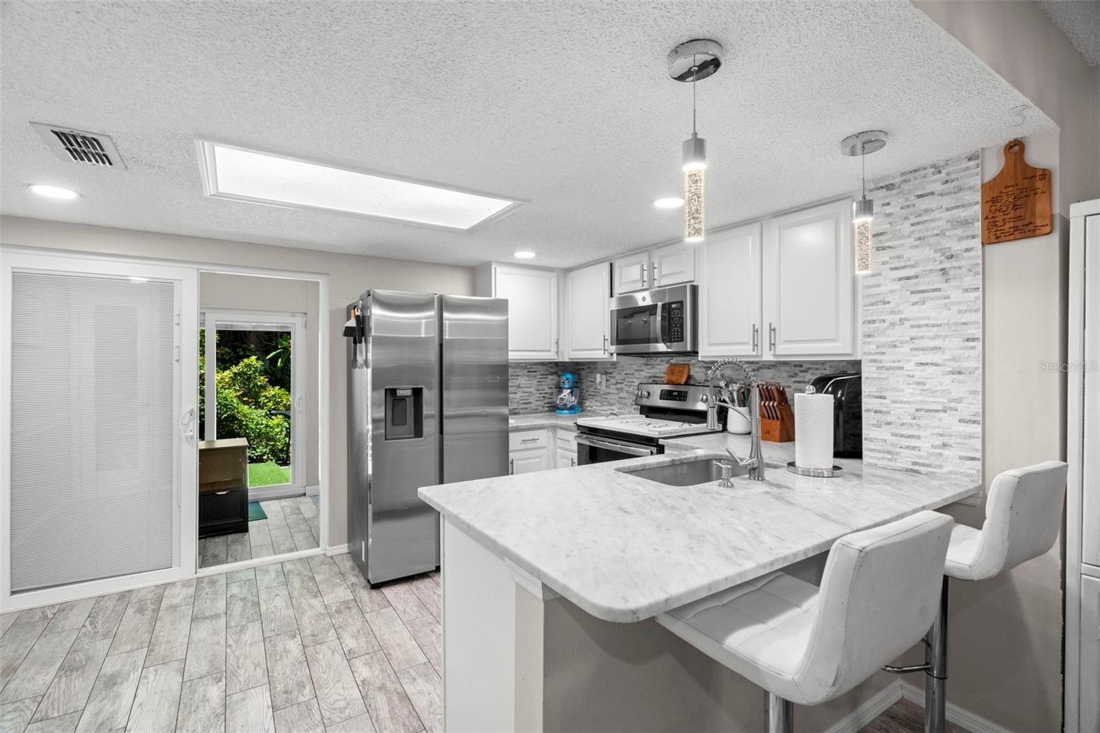 Honey, stop the car!!! This stunning townhome in the highly desirable Fox Chase community of Palm Harbor is truly one of a kind. Unlike neighboring units, this property features a bonus room off the kitchen that can be used as an office, play space, or even additional storage! The home underwent a full makeover in 2020, showcasing brand-new flooring on the main level, plush carpeting upstairs, fresh paint throughout, and a beautifully updated kitchen with sleek countertops, modern cabinetry, and all-new appliances—including a refrigerator, microwave, dishwasher, washer, and dryer. New light fixtures throughout the home add a warm, contemporary touch, while a brand-new roof installed in 2025 provides years of low-maintenance living. The home also has a HVAC that was replaced in 2020. Inside, you'll appreciate the smart layout with a convenient first-floor powder bath, two upstairs bedrooms each with ensuite bathrooms, and vaulted ceilings that enhance the sense of space. The kitchen opens to a cozy dining area complete with a wet bar, perfect for entertaining, and sliding doors lead out to a lanai overlooking serene wooded views. The home is nestled within a well-maintained community that offers fantastic amenities, including a pool, playground, and tennis courts—and a brand-new gate has just been installed at the entrance, enhancing both security and curb appeal. Located just minutes from Gulf beaches, top-rated schools—including Sutherland Elementary, Palm Harbor Middle, and Palm Harbor University High—local shopping, restaurants, and easy access to Tampa and St. Pete, this home checks every box. Whether you’re a first-time buyer or looking for a beautiful place to call home, this move-in ready townhome is a rare find in a prime location. Don’t miss your opportunity to own one of the most updated and unique units in Fox Chase!