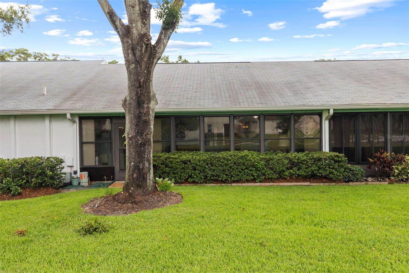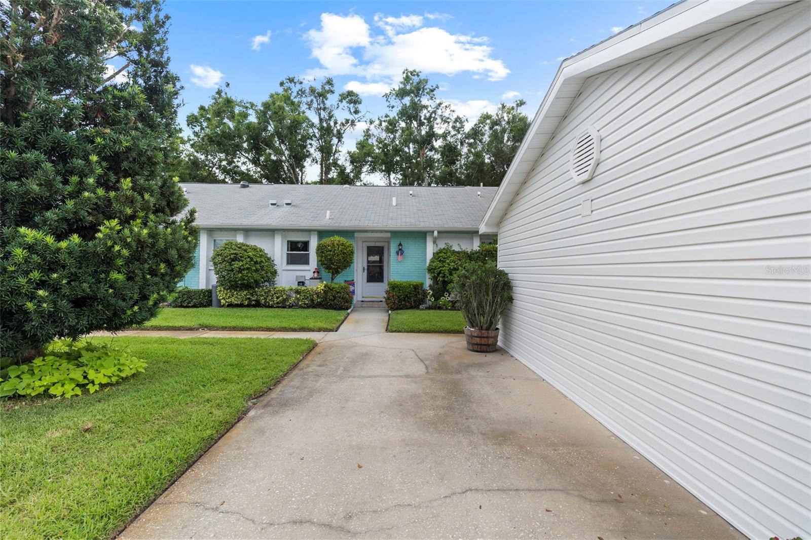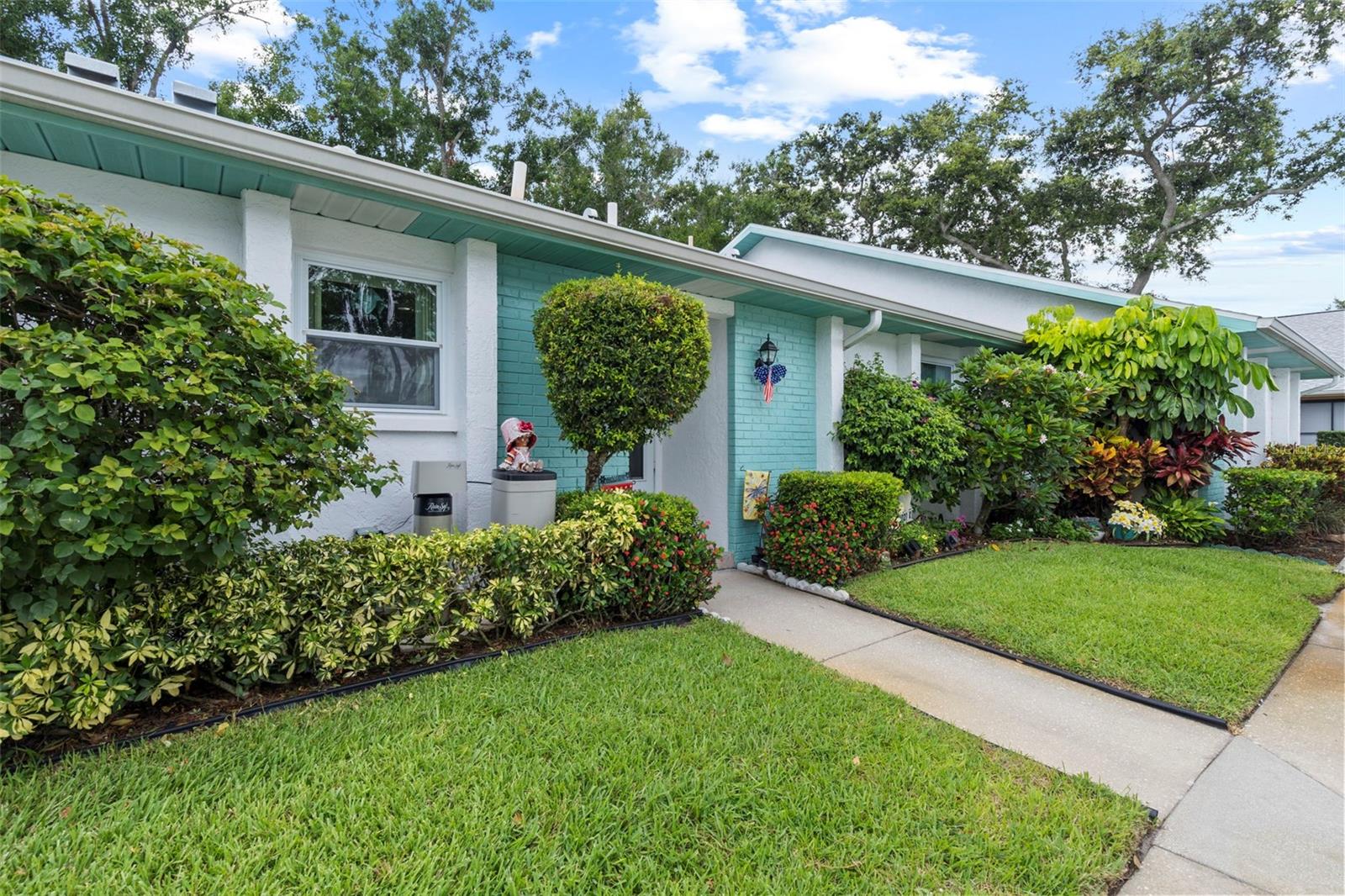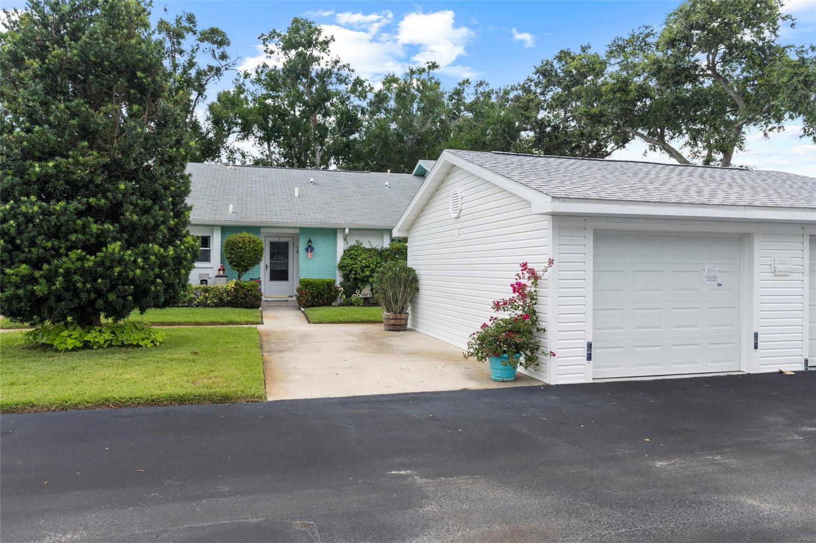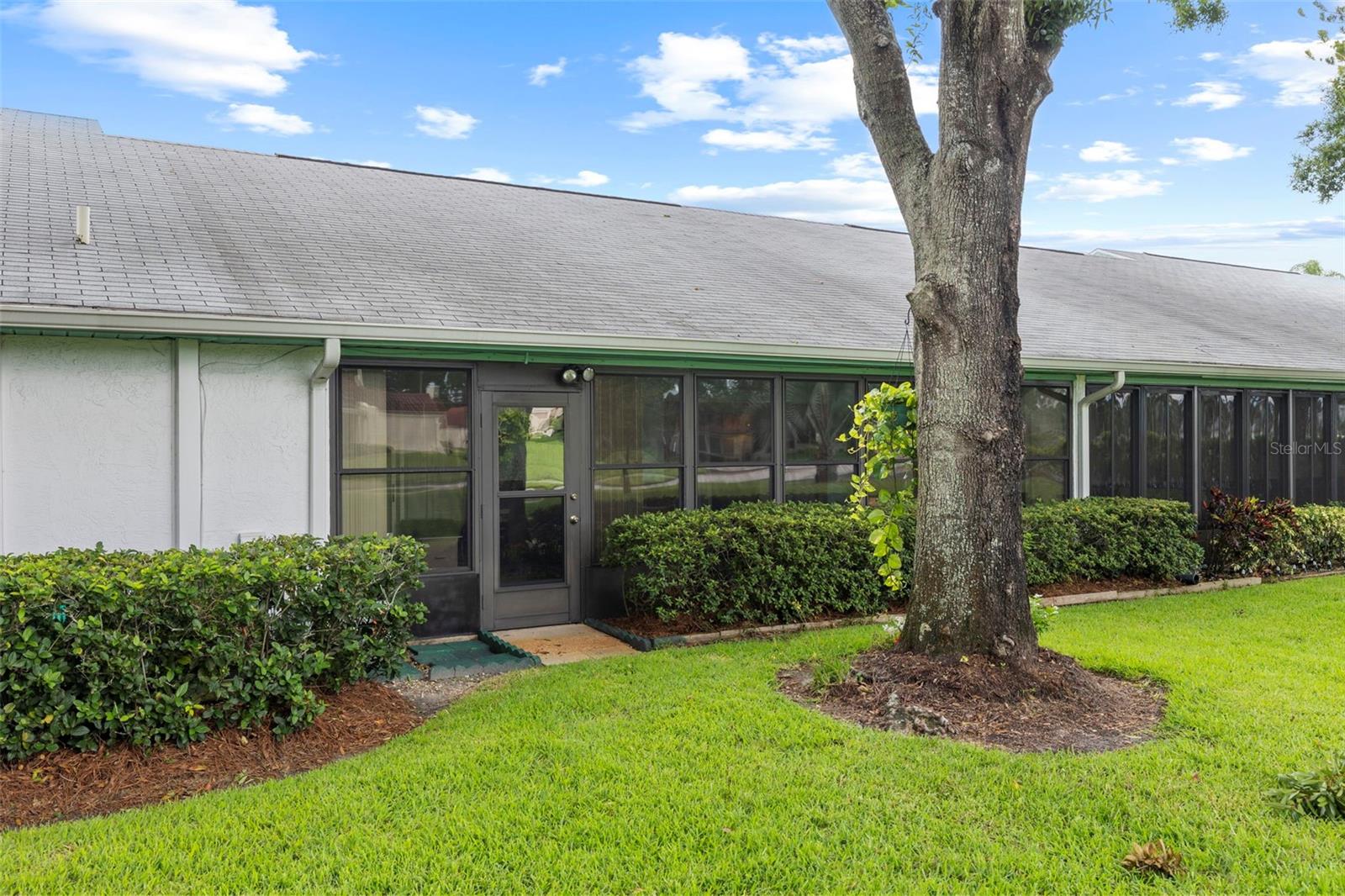 Nestled in the highly sought-after 55+ Greenview Villas of Highland Lakes, this lovingly maintained 2-bedroom, 2-bathroom villa with a one-car garage is ready for its new owner. This charming home is full of warmth, personality, and thoughtful updates, offering comfortable living both inside and out. Curb appeal meets coastal charm with a freshly manicured lawn, a crisp white garage, and pops of vibrant color from blooming flowers and potted palms. Step inside to discover a spacious living and dining area with vaulted ceilings and double-paned windows that allow an abundance of natural light. The soft coastal palette and tasteful nautical touches throughout create a relaxed, vacation-like vibe. The modern kitchen boasts newer appliances, updated white cabinetry that provides ample storage, recessed lighting, and stunning granite countertops paired beautifully with a glass tile backsplash. The living area flows seamlessly into a private enclosed Florida room vented with air-conditioning, featuring floor to ceiling windows overlooking the beautifully landscaped green space, ideal for both entertaining and relaxation. The spacious master bedroom complete with a walk-in closet and en-suite, and has direct access to the Florida room and offers plenty of space for a king-sized bed and sitting area. The guest bathroom is whimsical and fun, adorned with a colorful aquatic theme that will make any visitor smile. This home includes a dedicated laundry room with storage cabinets and utility sink, a spacious guest bedroom, a water softener, a new water heater, AC and ductwork(2019), roof (2018), tile flooring throughout, and a garage with brand new siding, epoxy flooring and shelving. Greenview Villas offers its own community pool, while Highland Lakes features three beautiful Executive 9-hole golf courses, a Clubhouse with a heated Olympic-sized pool and spa, tennis, bocce, pickleball, shuffleboard, and fitness classes. There are opportunities to connect with other residents through clubs and social events. Additionally, you can take a refreshing swim at the Lodge on Lake Tarpon or enjoy a tour on one of the Pontoon Touring Boats. Don't miss out – schedule your appointment today!