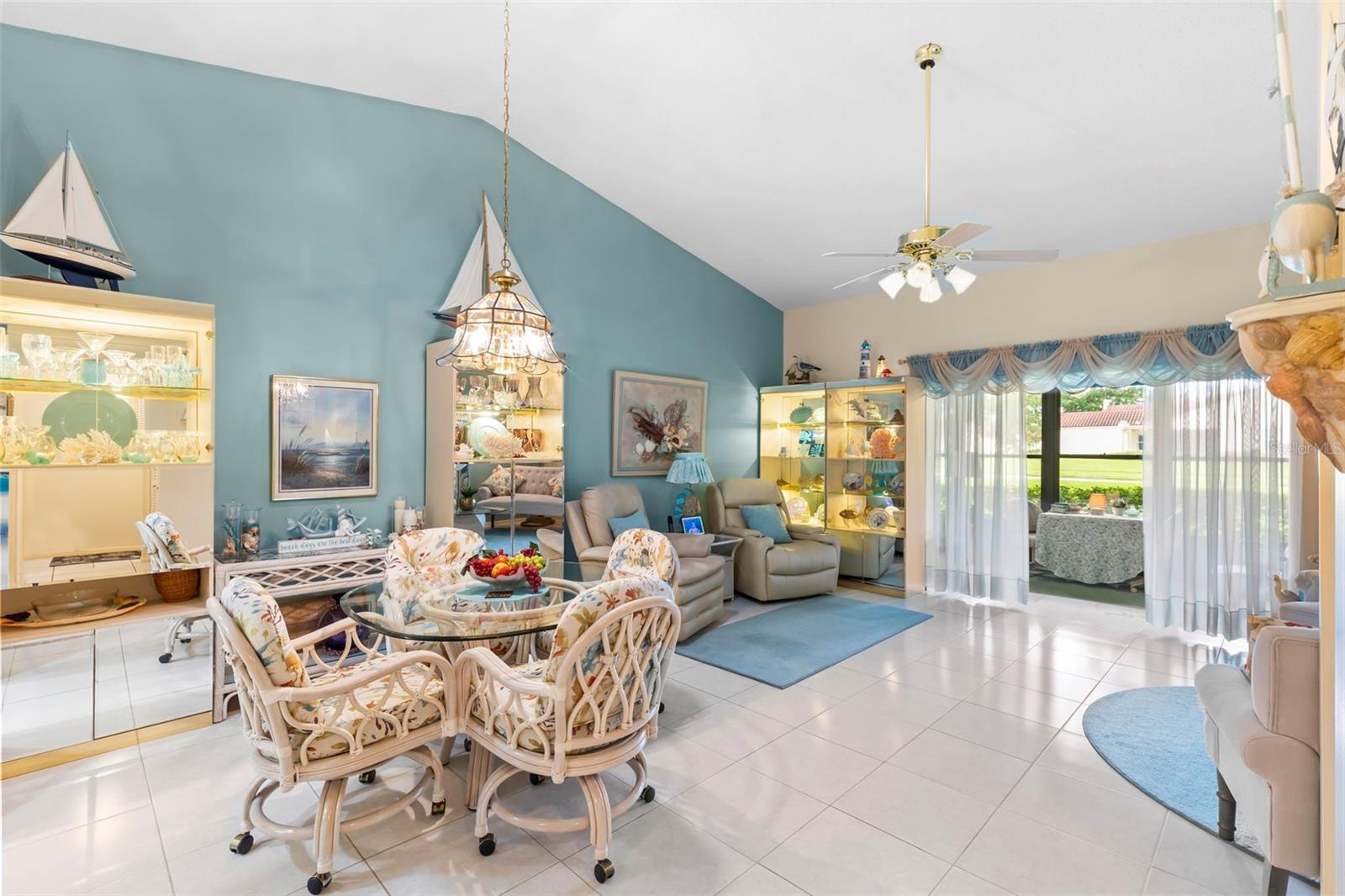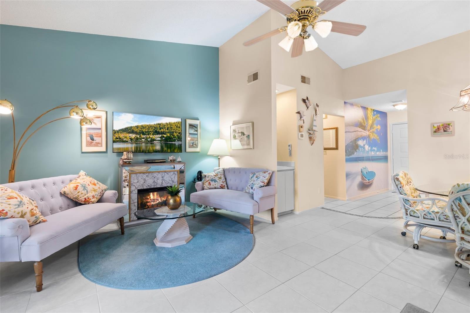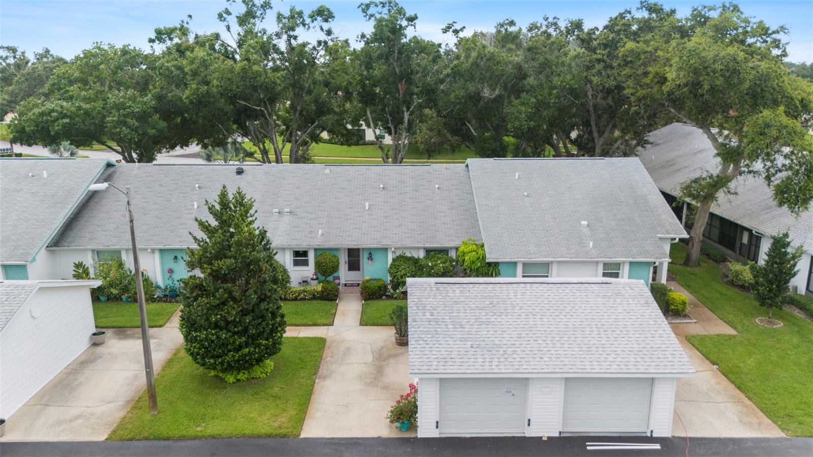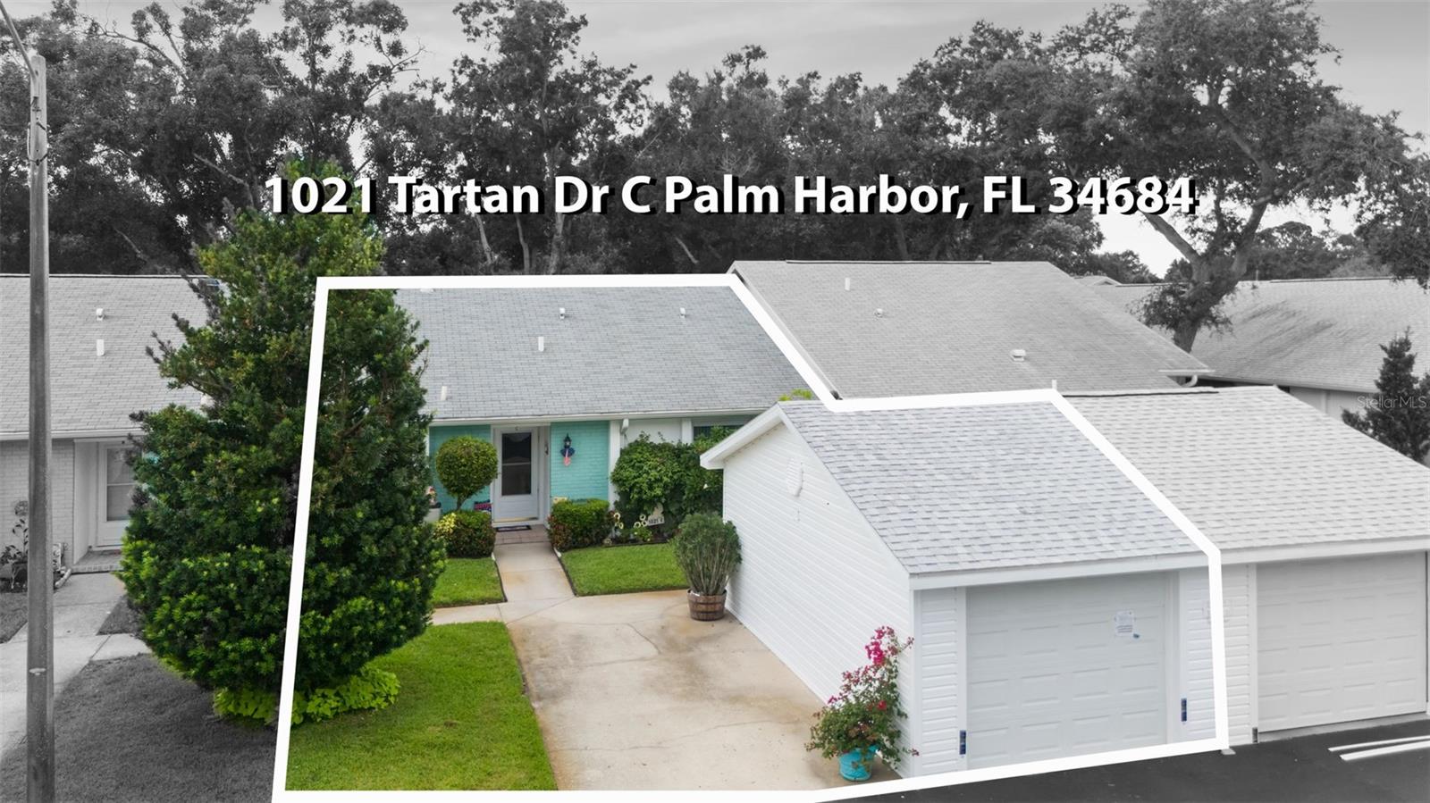 Nestled in the highly sought-after 55+ Greenview Villas of Highland Lakes, this lovingly maintained 2-bedroom, 2-bathroom villa with a one-car garage is ready for its new owner. This charming home is full of warmth, personality, and thoughtful updates, offering comfortable living both inside and out. Curb appeal meets coastal charm with a freshly manicured lawn, a crisp white garage, and pops of vibrant color from blooming flowers and potted palms. Step inside to discover a spacious living and dining area with vaulted ceilings and double-paned windows that allow an abundance of natural light. The soft coastal palette and tasteful nautical touches throughout create a relaxed, vacation-like vibe. The modern kitchen boasts newer appliances, updated white cabinetry that provides ample storage, recessed lighting, and stunning granite countertops paired beautifully with a glass tile backsplash. The living area flows seamlessly into a private enclosed Florida room vented with air-conditioning, featuring floor to ceiling windows overlooking the beautifully landscaped green space, ideal for both entertaining and relaxation. The spacious master bedroom complete with a walk-in closet and en-suite, and has direct access to the Florida room and offers plenty of space for a king-sized bed and sitting area. The guest bathroom is whimsical and fun, adorned with a colorful aquatic theme that will make any visitor smile. This home includes a dedicated laundry room with storage cabinets and utility sink, a spacious guest bedroom, a water softener, a new water heater, AC and ductwork(2019), roof (2018), tile flooring throughout, and a garage with brand new siding, epoxy flooring and shelving. Greenview Villas offers its own community pool, while Highland Lakes features three beautiful Executive 9-hole golf courses, a Clubhouse with a heated Olympic-sized pool and spa, tennis, bocce, pickleball, shuffleboard, and fitness classes. There are opportunities to connect with other residents through clubs and social events. Additionally, you can take a refreshing swim at the Lodge on Lake Tarpon or enjoy a tour on one of the Pontoon Touring Boats. Don't miss out – schedule your appointment today!