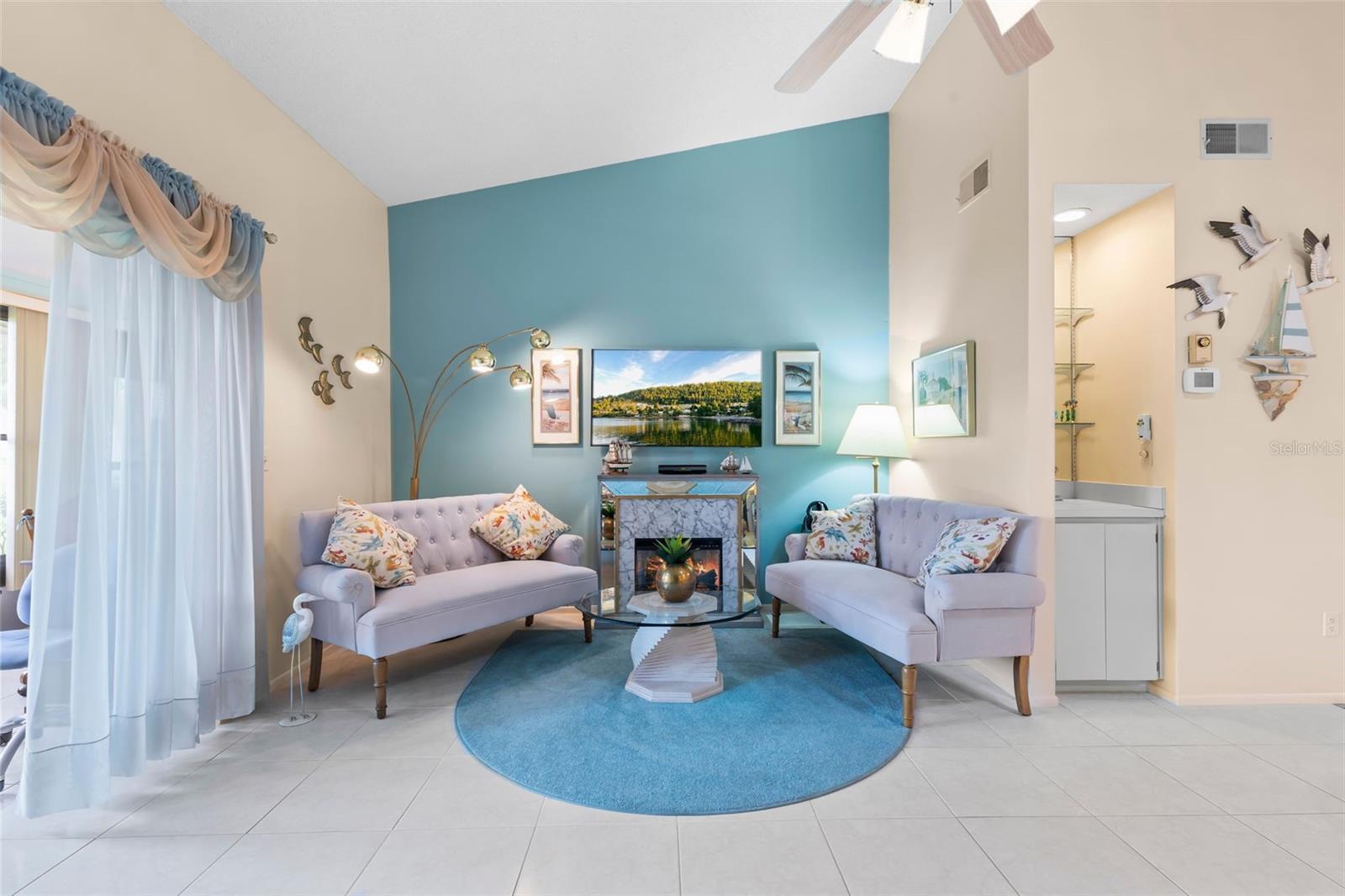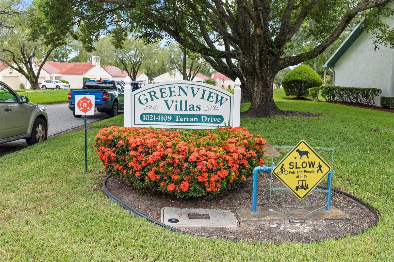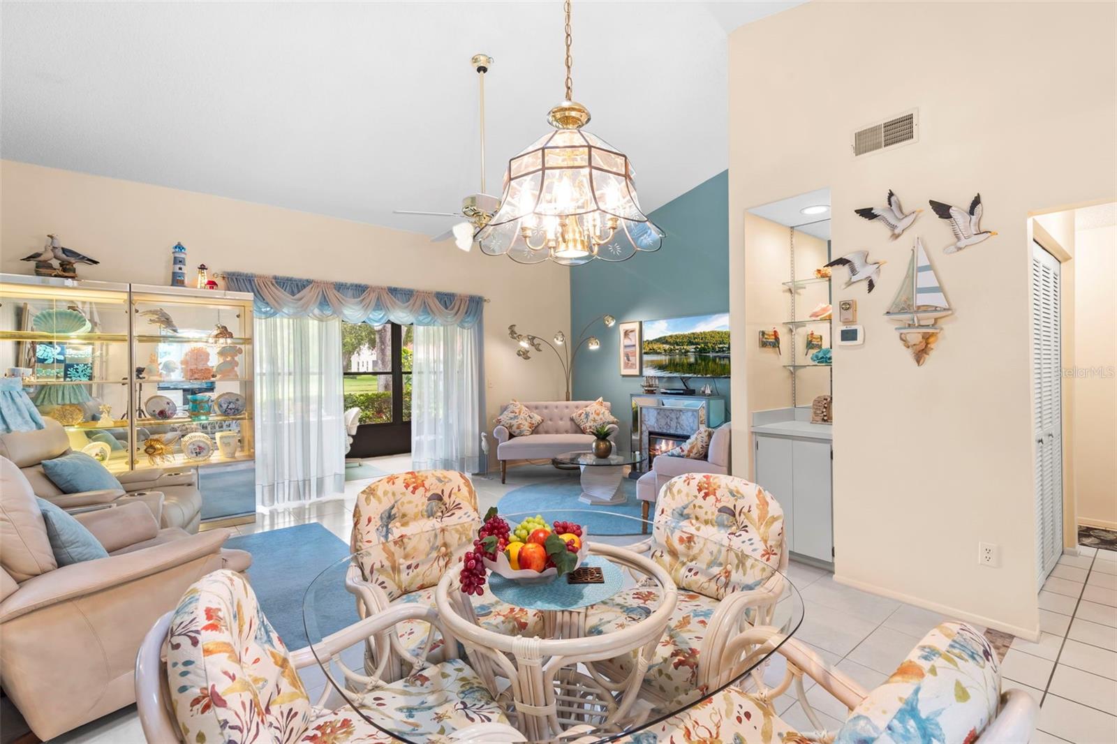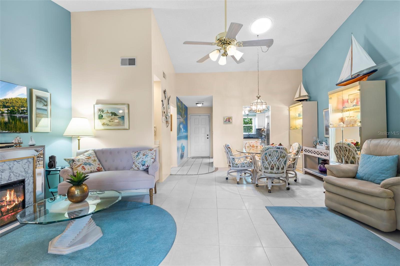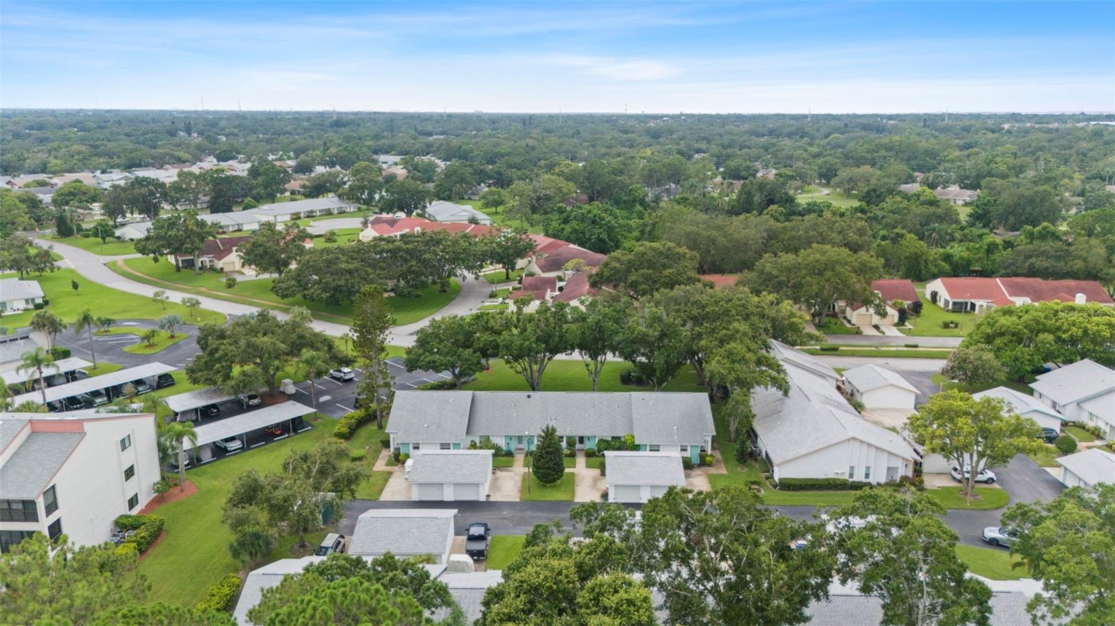 Nestled in the highly sought-after 55+ Greenview Villas of Highland Lakes, this lovingly maintained 2-bedroom, 2-bathroom villa with a one-car garage is ready for its new owner. This charming home is full of warmth, personality, and thoughtful updates, offering comfortable living both inside and out. Curb appeal meets coastal charm with a freshly manicured lawn, a crisp white garage, and pops of vibrant color from blooming flowers and potted palms. Step inside to discover a spacious living and dining area with vaulted ceilings and double-paned windows that allow an abundance of natural light. The soft coastal palette and tasteful nautical touches throughout create a relaxed, vacation-like vibe. The modern kitchen boasts newer appliances, updated white cabinetry that provides ample storage, recessed lighting, and stunning granite countertops paired beautifully with a glass tile backsplash. The living area flows seamlessly into a private enclosed Florida room vented with air-conditioning, featuring floor to ceiling windows overlooking the beautifully landscaped green space, ideal for both entertaining and relaxation. The spacious master bedroom complete with a walk-in closet and en-suite, and has direct access to the Florida room and offers plenty of space for a king-sized bed and sitting area. The guest bathroom is whimsical and fun, adorned with a colorful aquatic theme that will make any visitor smile. This home includes a dedicated laundry room with storage cabinets and utility sink, a spacious guest bedroom, a water softener, a new water heater, AC and ductwork(2019), roof (2018), tile flooring throughout, and a garage with brand new siding, epoxy flooring and shelving. Greenview Villas offers its own community pool, while Highland Lakes features three beautiful Executive 9-hole golf courses, a Clubhouse with a heated Olympic-sized pool and spa, tennis, bocce, pickleball, shuffleboard, and fitness classes. There are opportunities to connect with other residents through clubs and social events. Additionally, you can take a refreshing swim at the Lodge on Lake Tarpon or enjoy a tour on one of the Pontoon Touring Boats. Don't miss out – schedule your appointment today!