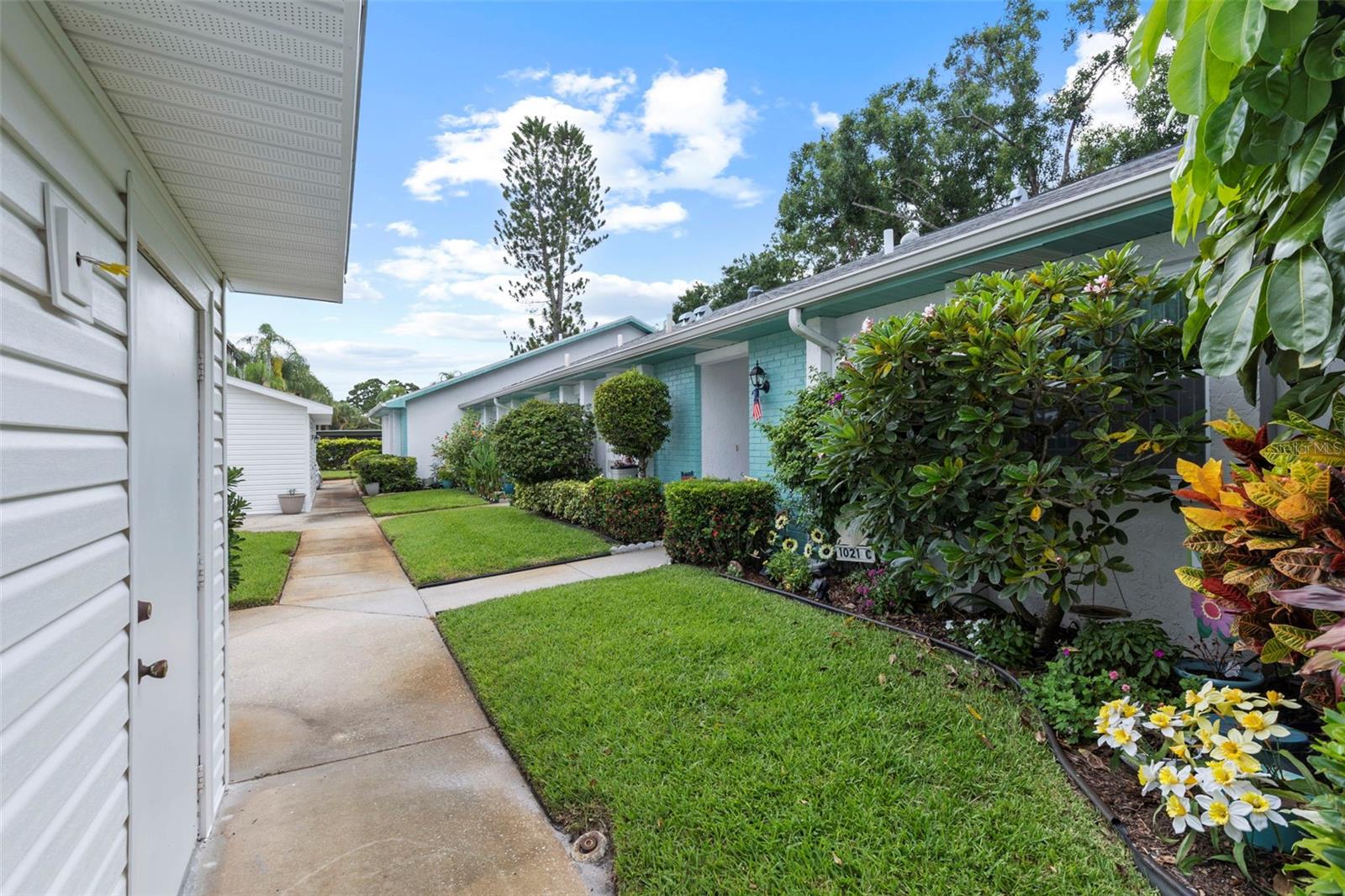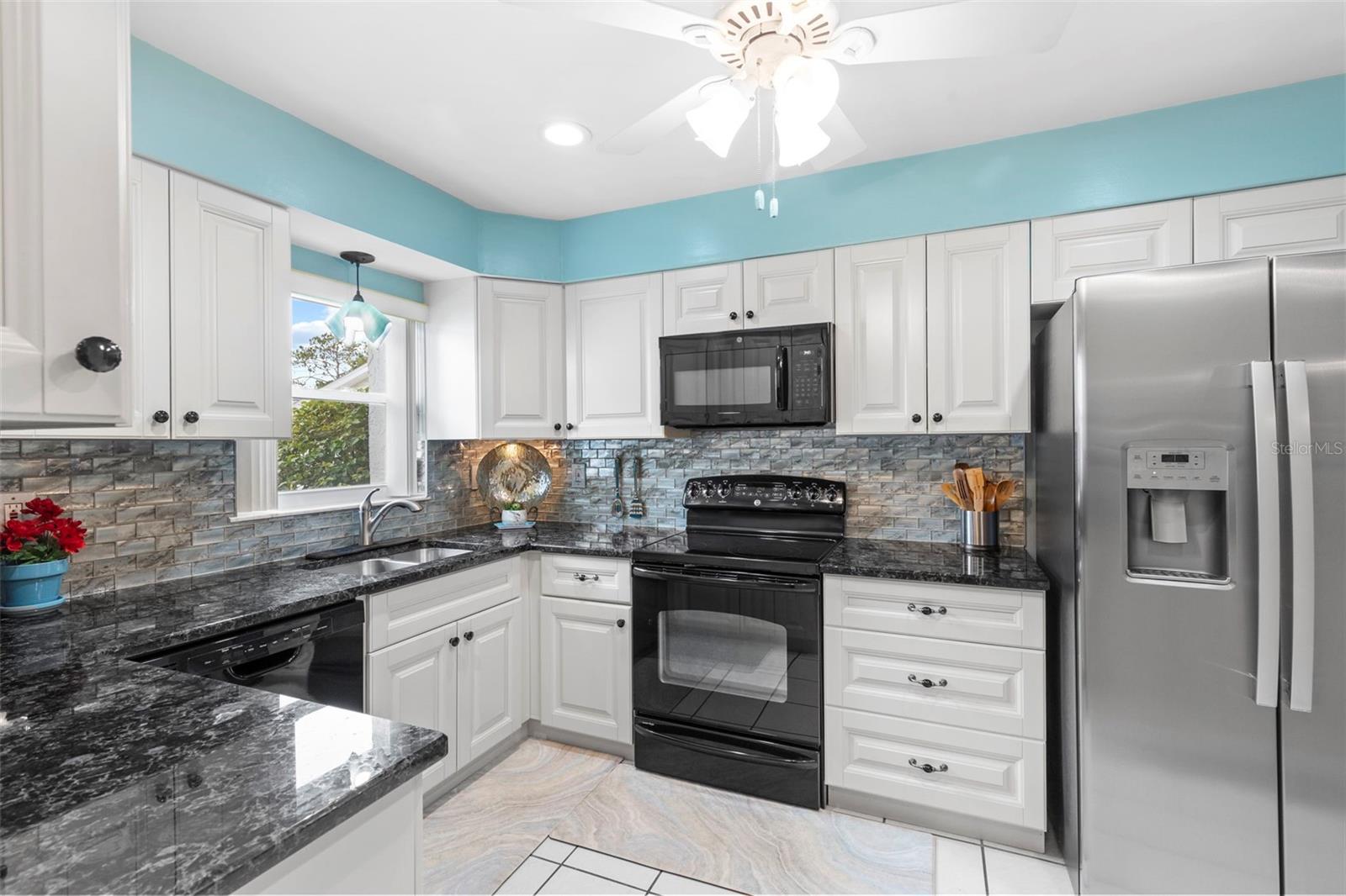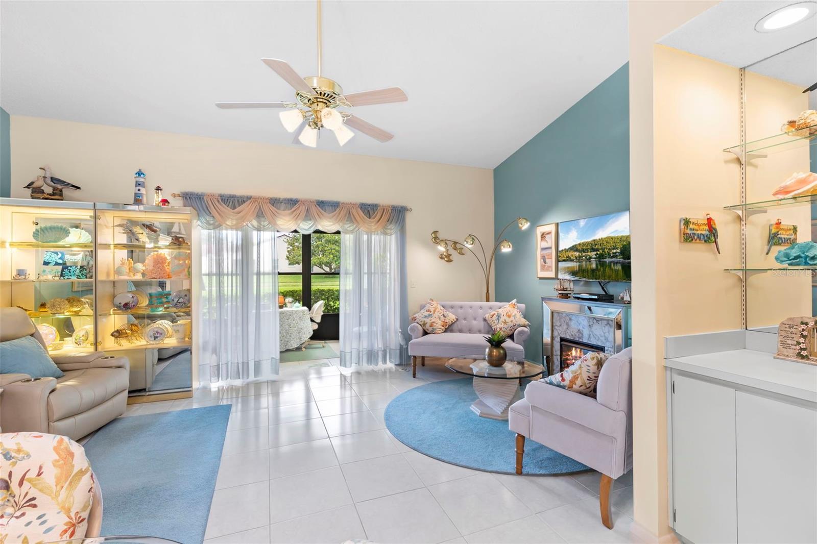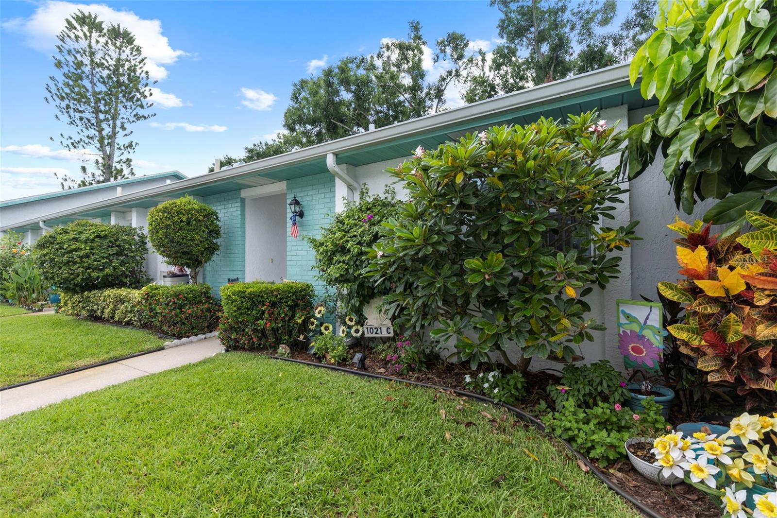 Nestled in the highly sought-after 55+ Greenview Villas of Highland Lakes, this lovingly maintained 2-bedroom, 2-bathroom villa with a one-car garage is ready for its new owner. This charming home is full of warmth, personality, and thoughtful updates, offering comfortable living both inside and out. Curb appeal meets coastal charm with a freshly manicured lawn, a crisp white garage, and pops of vibrant color from blooming flowers and potted palms. Step inside to discover a spacious living and dining area with vaulted ceilings and double-paned windows that allow an abundance of natural light. The soft coastal palette and tasteful nautical touches throughout create a relaxed, vacation-like vibe. The modern kitchen boasts newer appliances, updated white cabinetry that provides ample storage, recessed lighting, and stunning granite countertops paired beautifully with a glass tile backsplash. The living area flows seamlessly into a private enclosed Florida room vented with air-conditioning, featuring floor to ceiling windows overlooking the beautifully landscaped green space, ideal for both entertaining and relaxation. The spacious master bedroom complete with a walk-in closet and en-suite, and has direct access to the Florida room and offers plenty of space for a king-sized bed and sitting area. The guest bathroom is whimsical and fun, adorned with a colorful aquatic theme that will make any visitor smile. This home includes a dedicated laundry room with storage cabinets and utility sink, a spacious guest bedroom, a water softener, a new water heater, AC and ductwork(2019), roof (2018), tile flooring throughout, and a garage with brand new siding, epoxy flooring and shelving. Greenview Villas offers its own community pool, while Highland Lakes features three beautiful Executive 9-hole golf courses, a Clubhouse with a heated Olympic-sized pool and spa, tennis, bocce, pickleball, shuffleboard, and fitness classes. There are opportunities to connect with other residents through clubs and social events. Additionally, you can take a refreshing swim at the Lodge on Lake Tarpon or enjoy a tour on one of the Pontoon Touring Boats. Don't miss out – schedule your appointment today!
