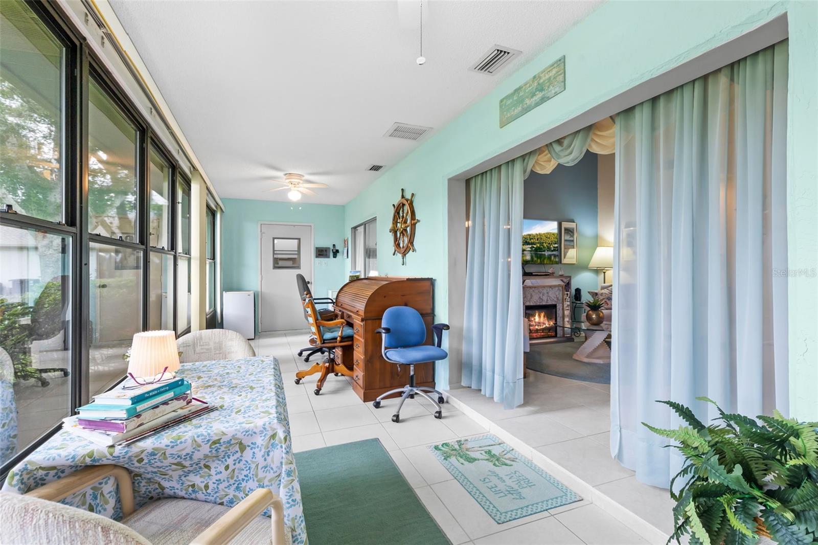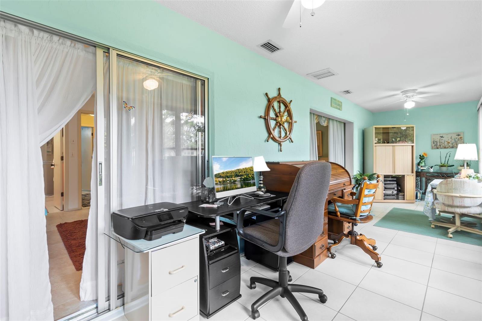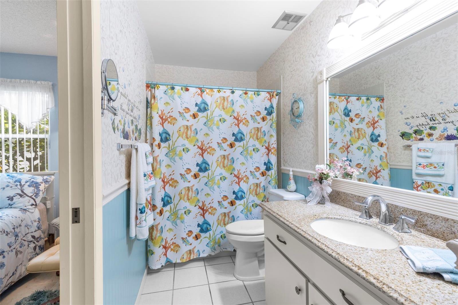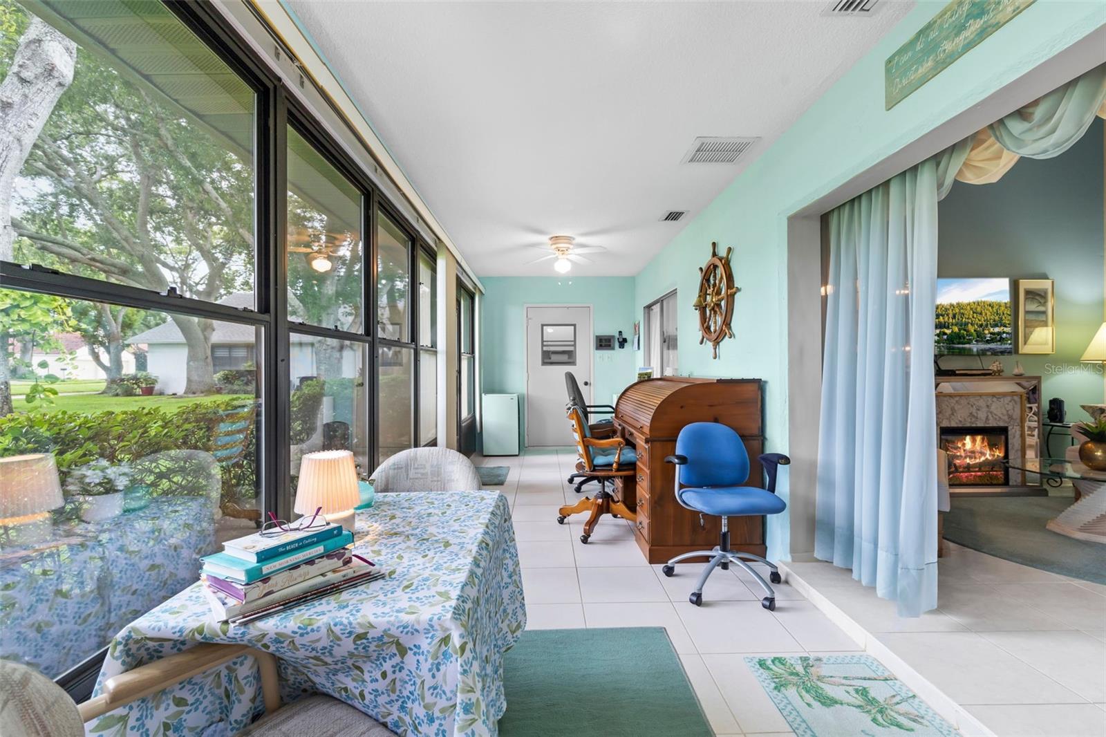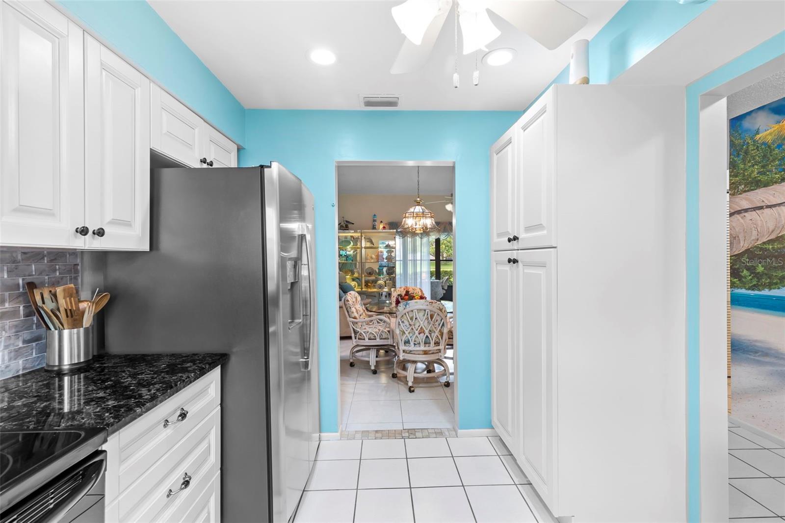 Nestled in the highly sought-after 55+ Greenview Villas of Highland Lakes, this lovingly maintained 2-bedroom, 2-bathroom villa with a one-car garage is ready for its new owner. This charming home is full of warmth, personality, and thoughtful updates, offering comfortable living both inside and out. Curb appeal meets coastal charm with a freshly manicured lawn, a crisp white garage, and pops of vibrant color from blooming flowers and potted palms. Step inside to discover a spacious living and dining area with vaulted ceilings and double-paned windows that allow an abundance of natural light. The soft coastal palette and tasteful nautical touches throughout create a relaxed, vacation-like vibe. The modern kitchen boasts newer appliances, updated white cabinetry that provides ample storage, recessed lighting, and stunning granite countertops paired beautifully with a glass tile backsplash. The living area flows seamlessly into a private enclosed Florida room vented with air-conditioning, featuring floor to ceiling windows overlooking the beautifully landscaped green space, ideal for both entertaining and relaxation. The spacious master bedroom complete with a walk-in closet and en-suite, and has direct access to the Florida room and offers plenty of space for a king-sized bed and sitting area. The guest bathroom is whimsical and fun, adorned with a colorful aquatic theme that will make any visitor smile. This home includes a dedicated laundry room with storage cabinets and utility sink, a spacious guest bedroom, a water softener, a new water heater, AC and ductwork(2019), roof (2018), tile flooring throughout, and a garage with brand new siding, epoxy flooring and shelving. Greenview Villas offers its own community pool, while Highland Lakes features three beautiful Executive 9-hole golf courses, a Clubhouse with a heated Olympic-sized pool and spa, tennis, bocce, pickleball, shuffleboard, and fitness classes. There are opportunities to connect with other residents through clubs and social events. Additionally, you can take a refreshing swim at the Lodge on Lake Tarpon or enjoy a tour on one of the Pontoon Touring Boats. Don't miss out – schedule your appointment today!
