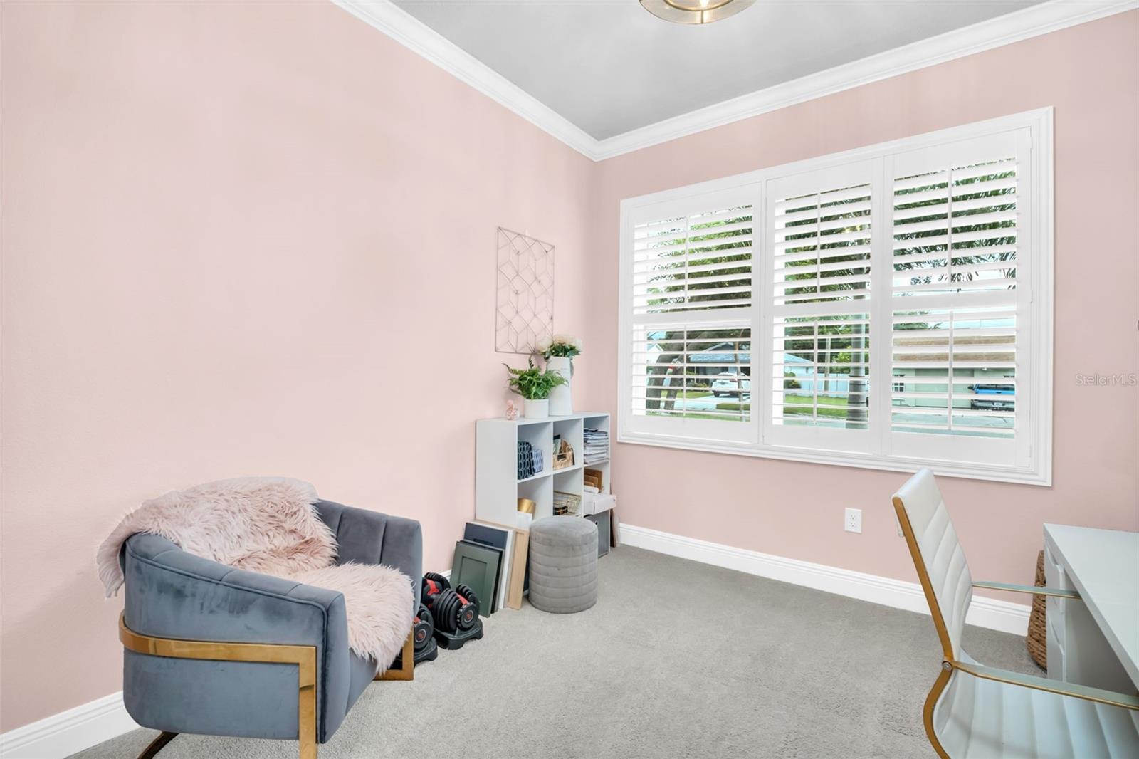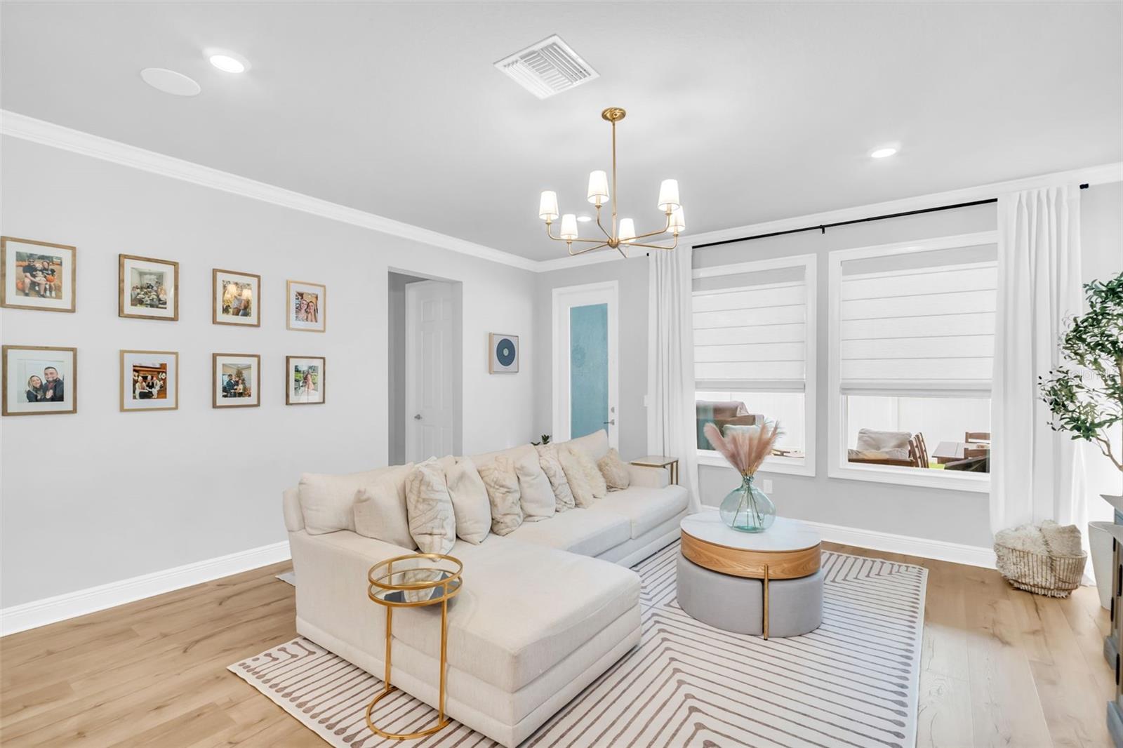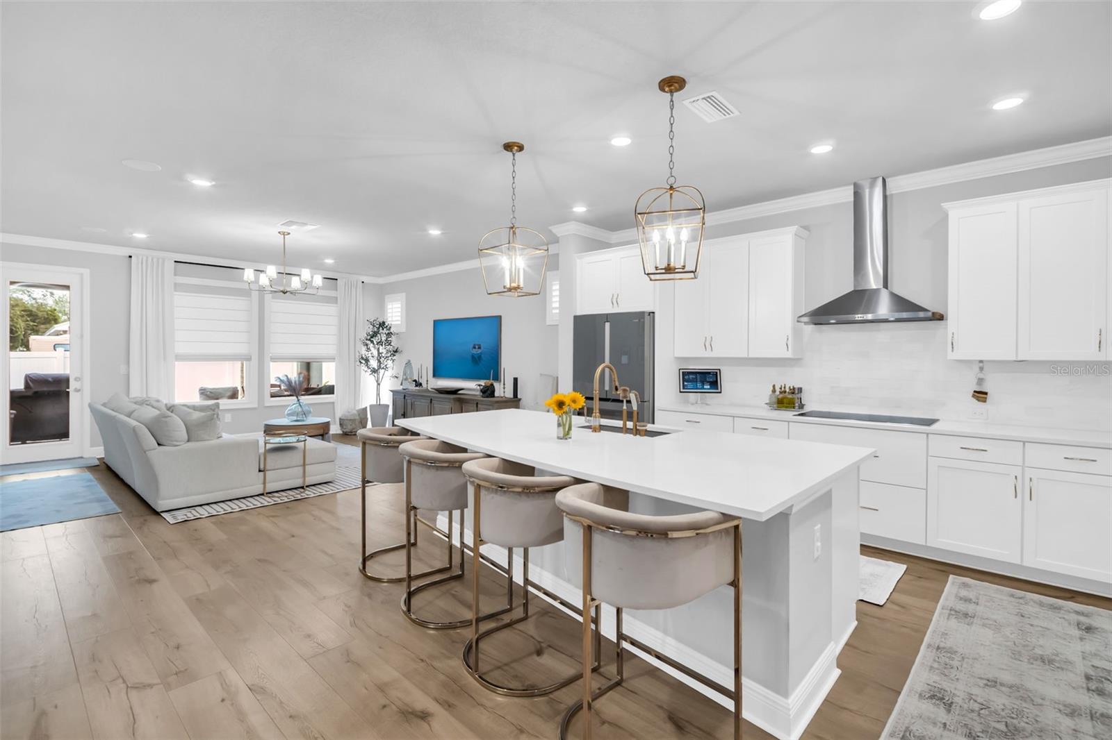Live the laid-back Palm Harbor lifestyle without the hassle of an older home. Built in 2023, this 3-bed, 2-bath plus dedicated office offers modern construction, thoughtful upgrades, and a location that checks every box for buyers who want top-rated schools, quick golf-cart rides to downtown eateries, and a quiet street to call home. Step inside to an open great room dressed in crown molding and wide-plank LVP, framed by custom window casings and motorized shades that disappear with a tap. The kitchen is a chef’s treat: Bosch refrigerator with wine drawer, Wolf induction cooktop paired with a sleek, high-capacity vent hood, and a custom wood pantry that keeps everything organized. Around the corner, the private bedroom wing features plush-carpeted rooms and a luxe primary suite—each wired with Sonos ceiling speakers for whole-home sound. A flex office up front adapts easily to homework, workouts, or guest overflow. Need more? The garage is finished with a flake floor, houses a full-home water filtration & softener system, and is pre-wired for your EV charger. Out back, the yard is pool-ready with county-approved plans already in hand—just pick your design and break ground. Whether you’re walking to nearby schools, cruising the golf-cart zone to downtown coffee shops, or catching sunset at nearby beaches, you’ll appreciate having newer construction plus all the “little extras” already dialed in. Skip the remodel, keep the fun. Move in, plug in, and start living the Palm Harbor dream.