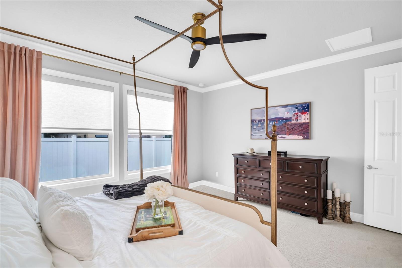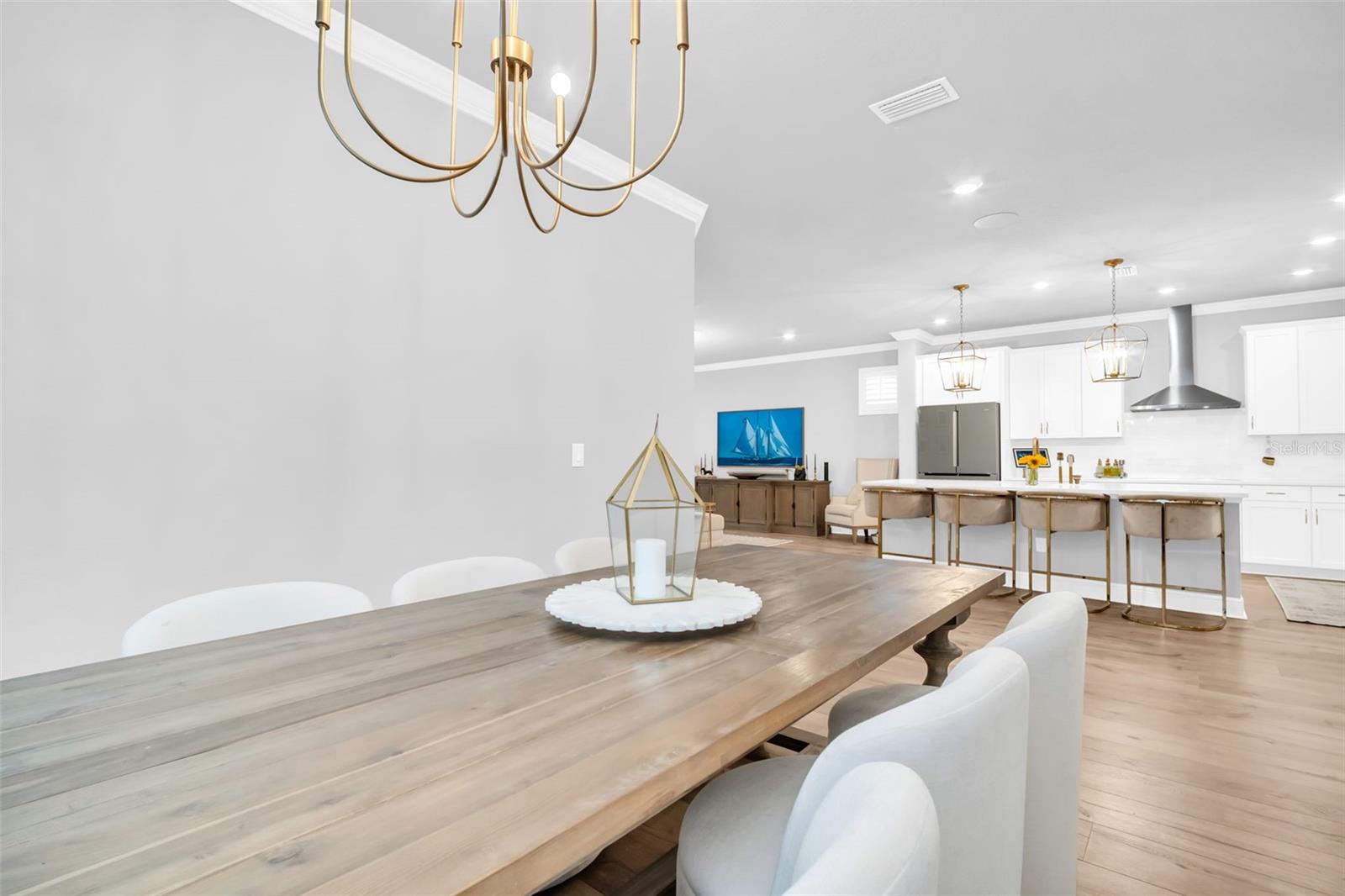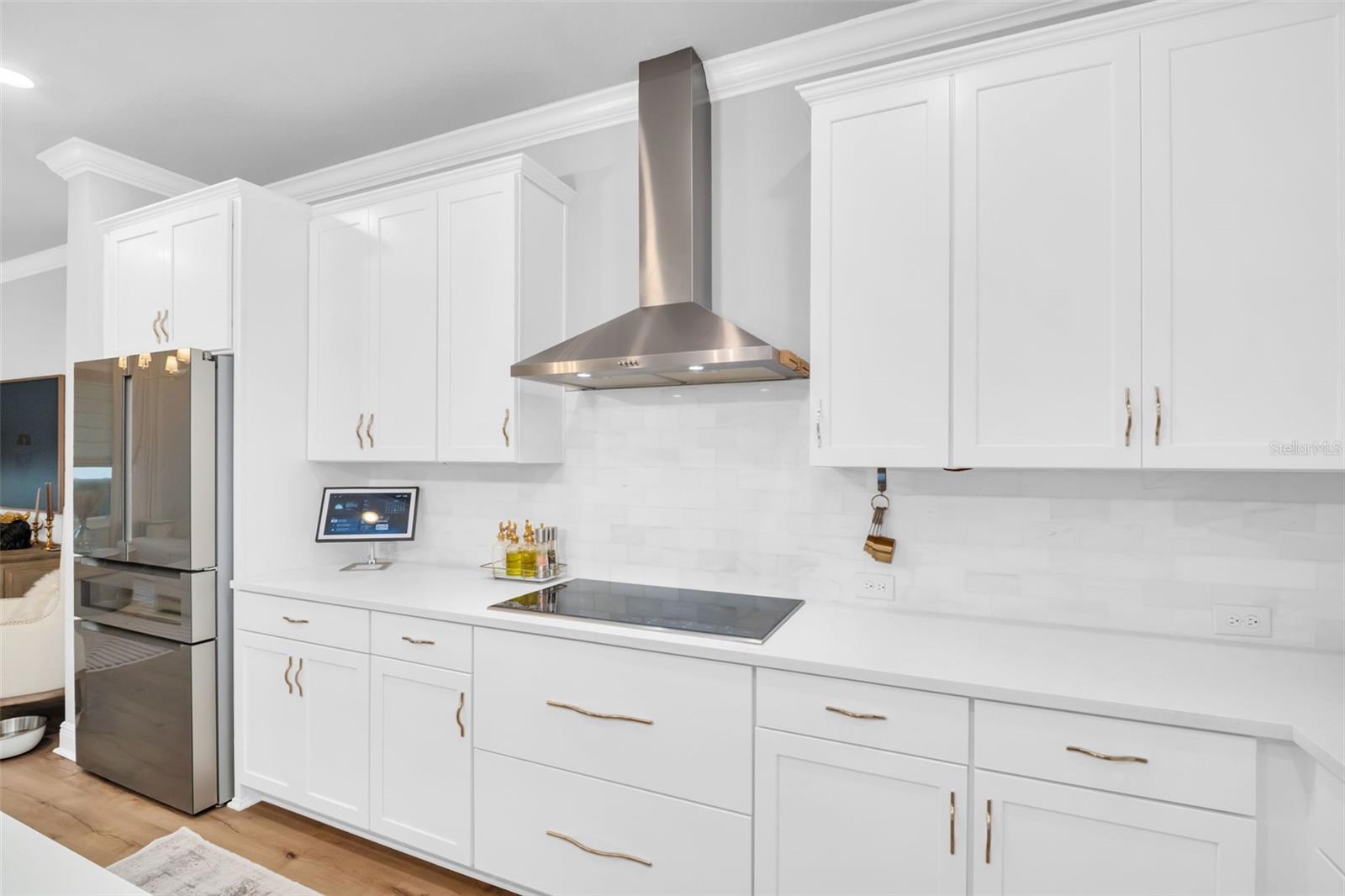 Live the laid-back Palm Harbor lifestyle without the hassle of an older home. Built in 2023, this 3-bed, 2-bath plus dedicated office offers modern construction, thoughtful upgrades, and a location that checks every box for buyers who want top-rated schools, quick golf-cart rides to downtown eateries, and a quiet street to call home. Step inside to an open great room dressed in crown molding and wide-plank LVP, framed by custom window casings and motorized shades that disappear with a tap. The kitchen is a chef’s treat: Bosch refrigerator with wine drawer, Wolf induction cooktop paired with a sleek, high-capacity vent hood, and a custom wood pantry that keeps everything organized. Around the corner, the private bedroom wing features plush-carpeted rooms and a luxe primary suite—each wired with Sonos ceiling speakers for whole-home sound. A flex office up front adapts easily to homework, workouts, or guest overflow. Need more? The garage is finished with a flake floor, houses a full-home water filtration & softener system, and is pre-wired for your EV charger. Out back, the yard is pool-ready with county-approved plans already in hand—just pick your design and break ground. Whether you’re walking to nearby schools, cruising the golf-cart zone to downtown coffee shops, or catching sunset at nearby beaches, you’ll appreciate having newer construction plus all the “little extras” already dialed in. Skip the remodel, keep the fun. Move in, plug in, and start living the Palm Harbor dream.