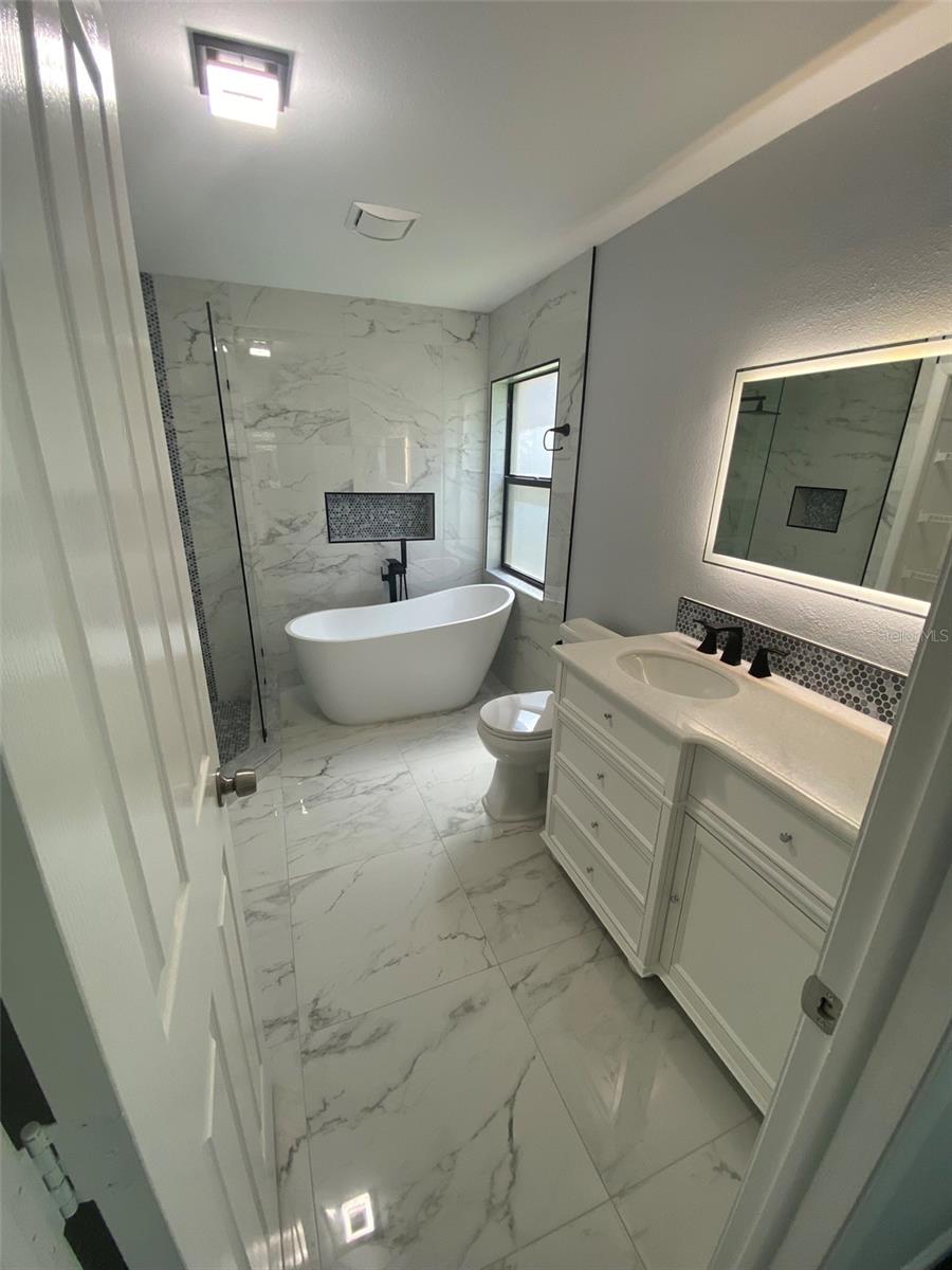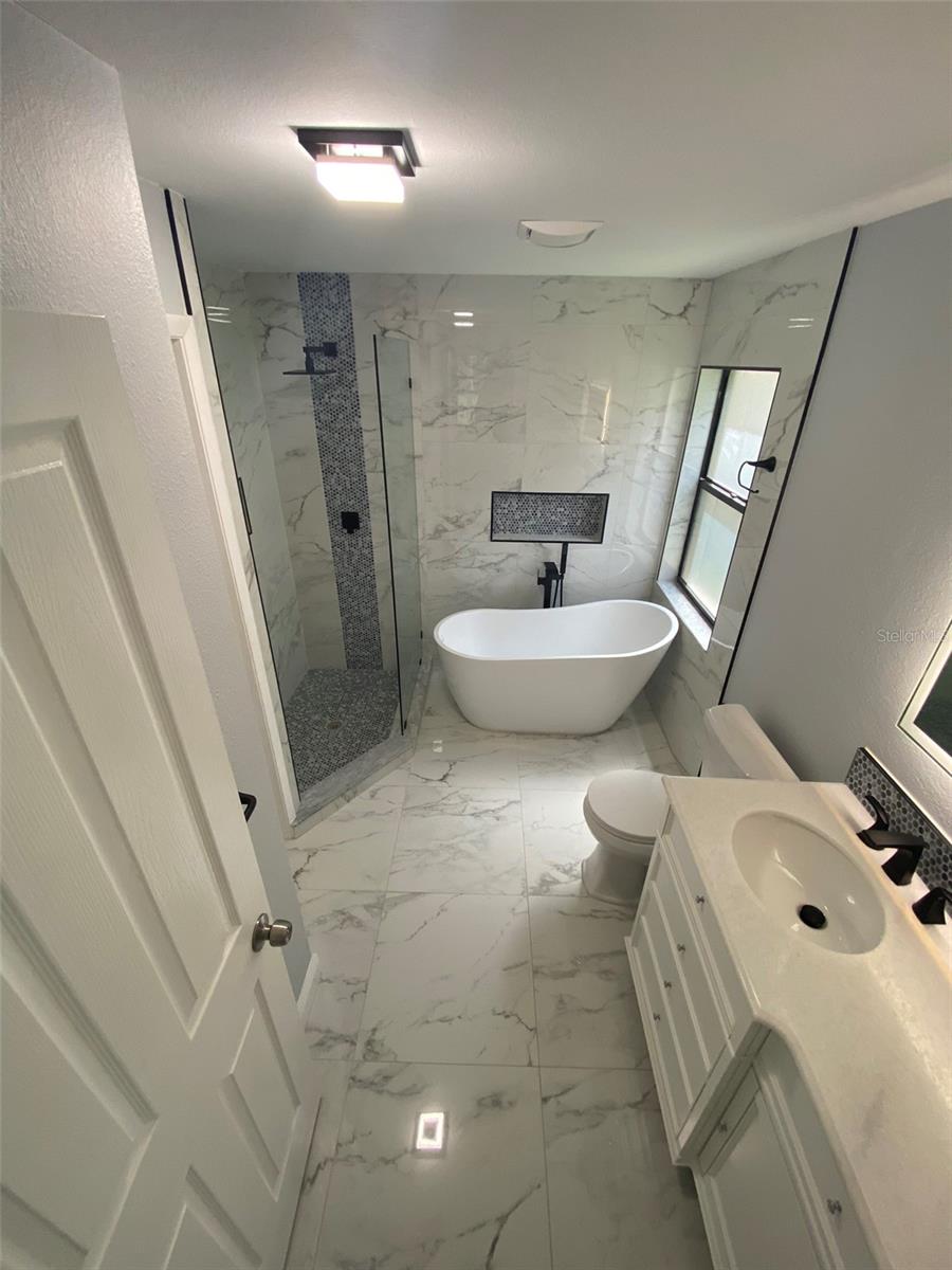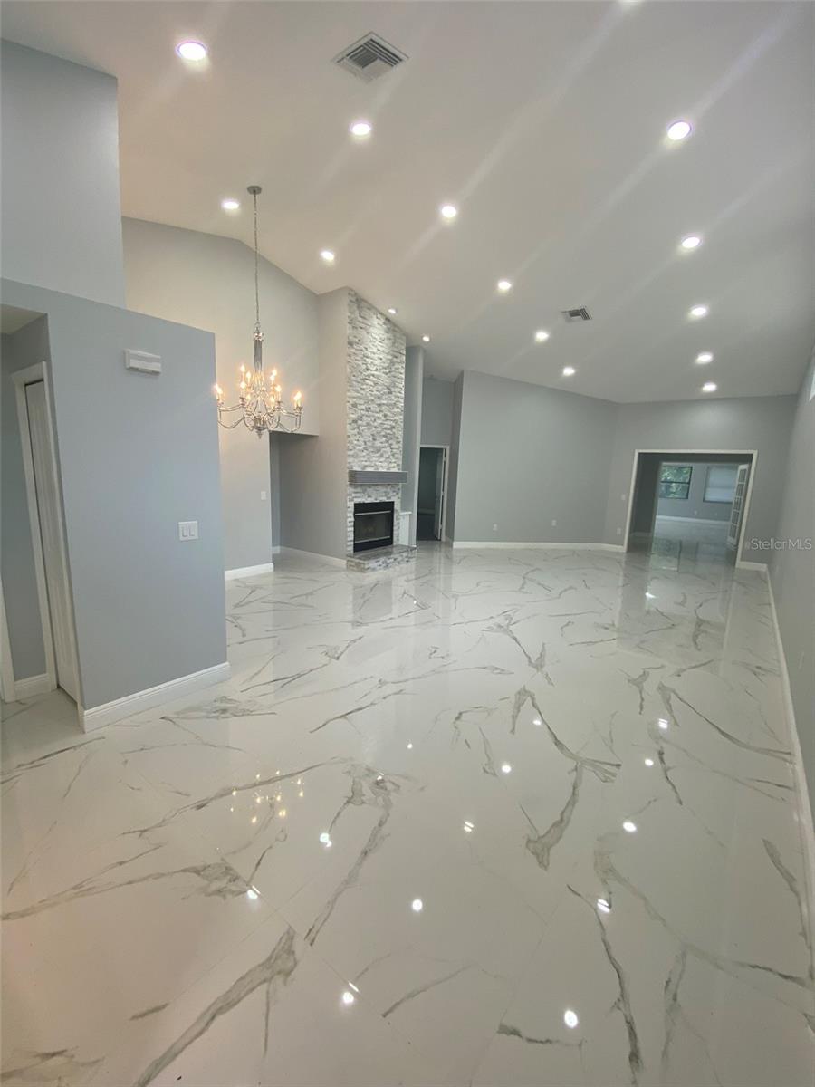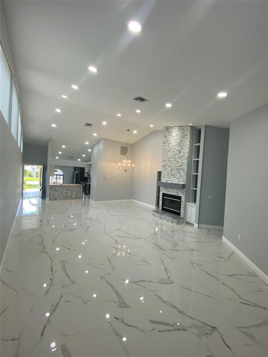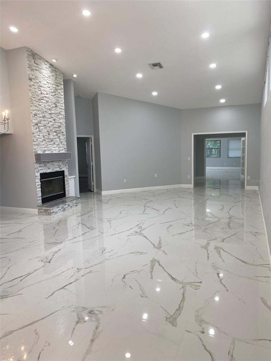 Welcome to this beautifully updated 3-bedroom, 2-bath home with a versatile 4th bonus room, perfectly situated on a peaceful lot with serene pond and woodland views. This move-in-ready home features high ceilings, elegant porcelain tile flooring, fresh interior paint, new blinds, and modern ceiling fans throughout. The spacious living area is highlighted by a custom stone fireplace and built-in shelves with LED lighting, creating a warm and inviting atmosphere. The remodeled kitchen is a standout, showcasing quartz countertops, soft-close wood cabinets, stainless steel appliances, a sleek range hood, and a designer porcelain backsplash. The primary suite overlooks the tranquil pond and includes a large walk-in closet, a luxurious soaking tub, and a unique shower with a temperature-sensitive color-changing faucet. Additional features include a durable tile roof, a generous attic space, well- maintained HVAC and water heater systems, and a convenient soft water hookup. Located in desirable Chattam Landing at Ridgemoor, the community offers tennis courts, a basketball court, and a playground. Just minutes from top-rated schools, beaches, restaurants, shopping, YMCA, and more —this home truly has it all. Don’t miss your opportunity to own this stunning retreat in a prime location!