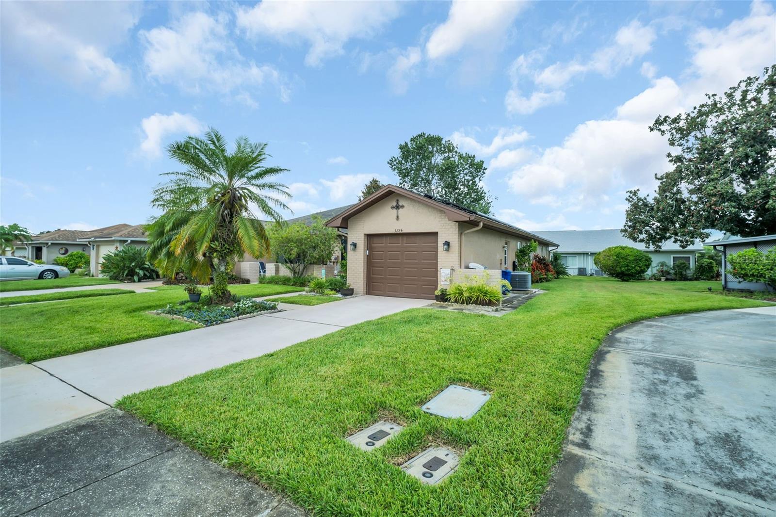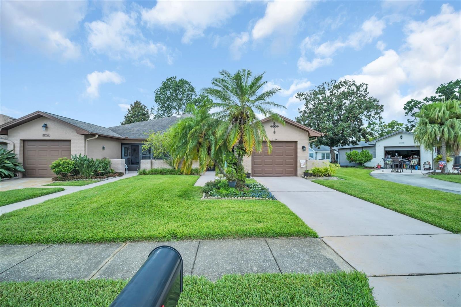 Updates Galore in this gorgeous two bedroom two full bath Villa! NO expense was spared in renovations! ENPHASE SOLAR PANELS with Batteries installed (cost $46,000.). Solar Panels significantly lower monthly electric bill ($30. average monthly bill). The recent kitchen renovation created a large open dining space complete with stunning cabinetry, high-end stainless appliances, granite countertops, beautiful mosaic tile backsplash and TONS of storage. Quality materials and workmanship can be found throughout this welcoming Villa. New hurricane impact windows. Continuous waterproof luxury vinyl plank flooring, tile in kitchen and primary bath, popcorn ceilings removed and all ceilings have been re-textured. Both bathrooms have been elegantly updated. Electric fireplace. Ceiling fans. Attached one car garage with washer, dryer and loads of storage! New hot water tank. Newer roof, A/C (maintained every six months) and newer electric panel. Whole house water softener and filtration system. Villa is located above the flood plain in a NO FLOOD ZONE on a quiet cul-de-sac. The low HOA fee of just $164/month includes lawn service, irrigation water and sprinkler maintenance, high speed internet and cable TV and trash removal. This is a Planned Unit Development community, so you own your own lot instead of just a unit. Concrete block construction provides a secure and quiet home. Highland Lakes is Palm Harbor’s PREMIER 55+ golf and lakefront community offering OUTSTANDING amenities including FREE UNLIMITED GREEN FEES on three private nine-hole executive courses, putting green and driving cages. FREE RV and BOAT storage. The main clubhouse is the hub for entertainment and social events including every club imaginable! Clubhouse offers a heated and cooled 0lympic-size pool with heated whirlpool spa, fitness, pickleball, four tennis courts with night lighting, eight shuffleboard courts, bocce ball court, arts, interest and hobby programs. The Lake Tarpon Lodge offers a second heated pool, picnic and party facilities, fishing pier, two community pontoon touring boats and a boat dock. Pontoon boats ferry residents to a local waterfront restaurant. Highland Lakes homes are HIGH and DRY and are located in the most convenient location in Tampa Bay…within minutes of the best Gulf beaches, two international airports, extensive retail options and wonderful restaurants, professional sporting events, rich cultural resources and excellent medical services are all nearby. Nothing to do except move in and enjoy this lovely completely updated Villa! Highland Lakes is CAREFREE Florida living at its FINEST!