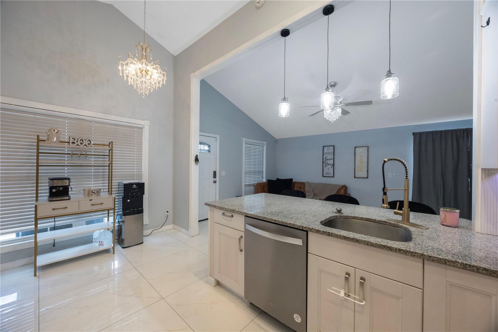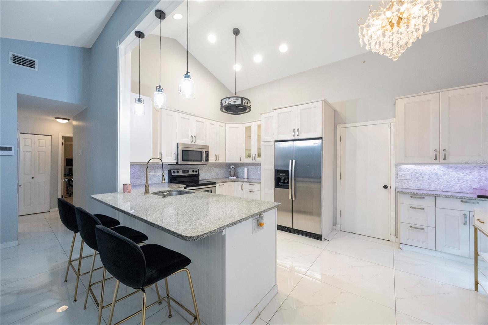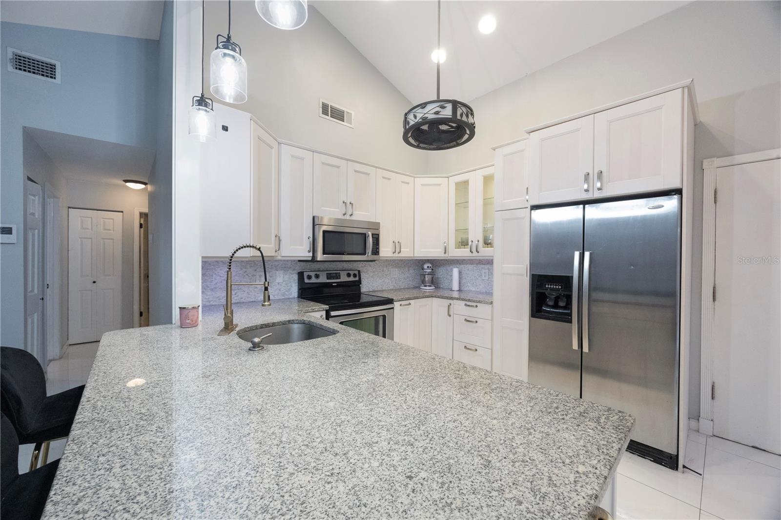 Beautifully updated 3/2 home in the conveniently located and popular community of Lake St. George! Step through the front door and you will fall in love with the open floor plan that has a light and bright kitchen with 42” white shaker cabinets, newly installed 36" tile floors throughout the home along with vaulted ceilings and tons of natural light. In addition to the amazing layout, the kitchen has granite countertops, stainless steel appliances, under cabinet and recessed lighting. You will appreciate the breakfast bar with pendant lighting that opens up to the great room making this an excellent home for entertaining and gathering together to make wonderful memories. The Primary Bedroom features an en-suite bathroom and a double closet. All bedrooms are spacious with plenty of storage space and the 3rd bedroom features a newer sliding glass door to the back yard, making it great for an office or playroom! Enjoy outside entertaining on this large corner lot and quiet street! There is plenty of room to create a backyard oasis and possibly add a pool. The huge back yard sports a newer white vinyl privacy fence giving you a perfect space for parties, pets, grilling or chilling! The Roof and A/C were replaced in 2022. This home is in a non-evacuation zone and does not require flood insurance. Travel about 3 blocks to the Lake St. George Community recreation area that has a lakefront park, picnic tables, fishing pier, community pool, playground, tennis and basketball courts. Other local attractions include East Lake Woodlands Country Club, Lake Tarpon, Brooker Creek Preserve, great restaurants and it’s just a short trip from here to Honeymoon and Caladesi Islands. Last but not least, the zoned elementary and middle schools are A rated and combined with the local amenities this is the perfect home for the next chapter in your book..