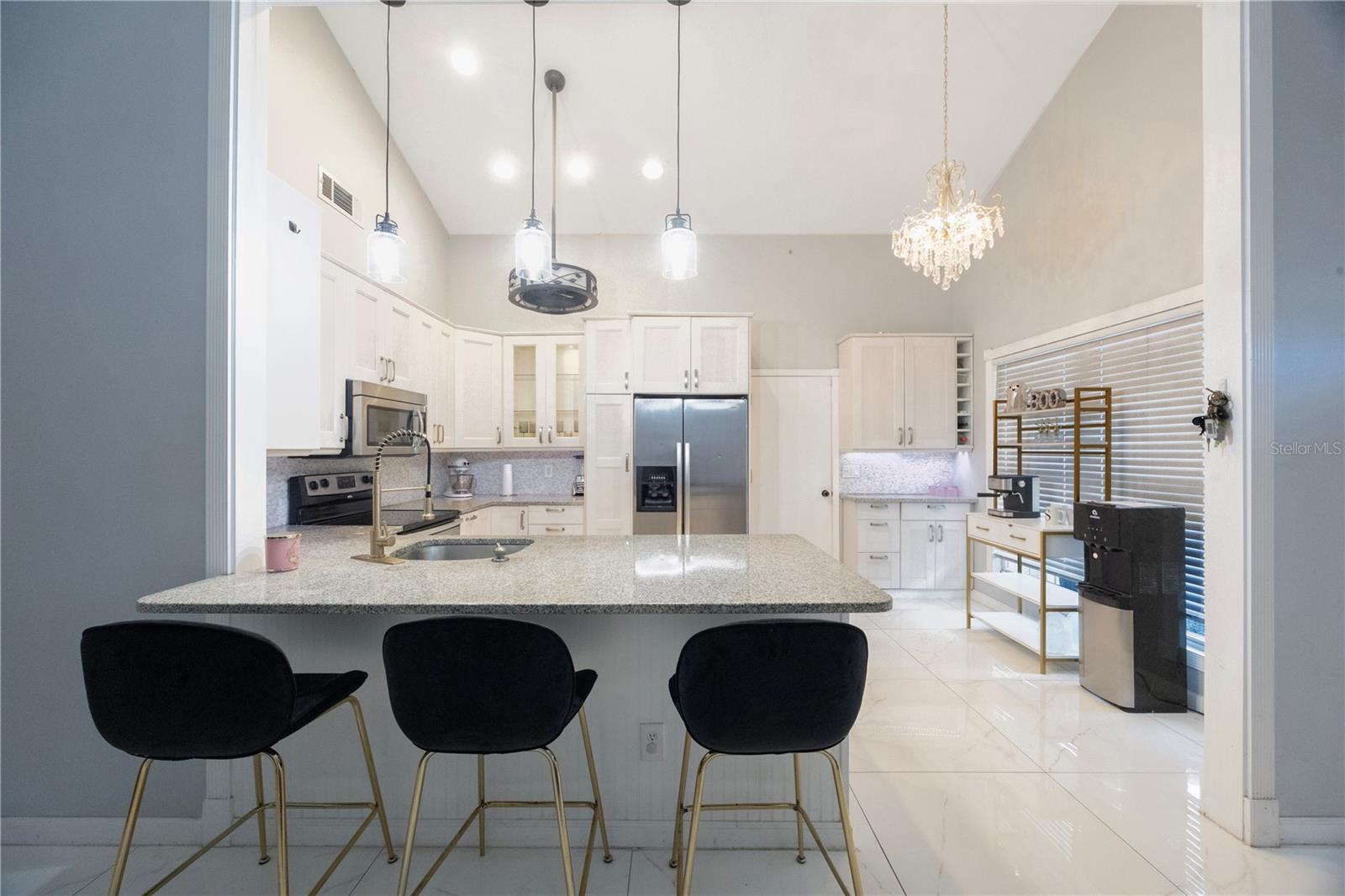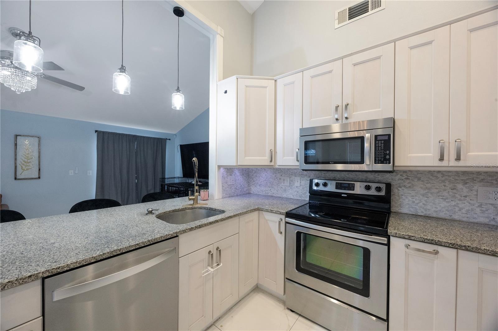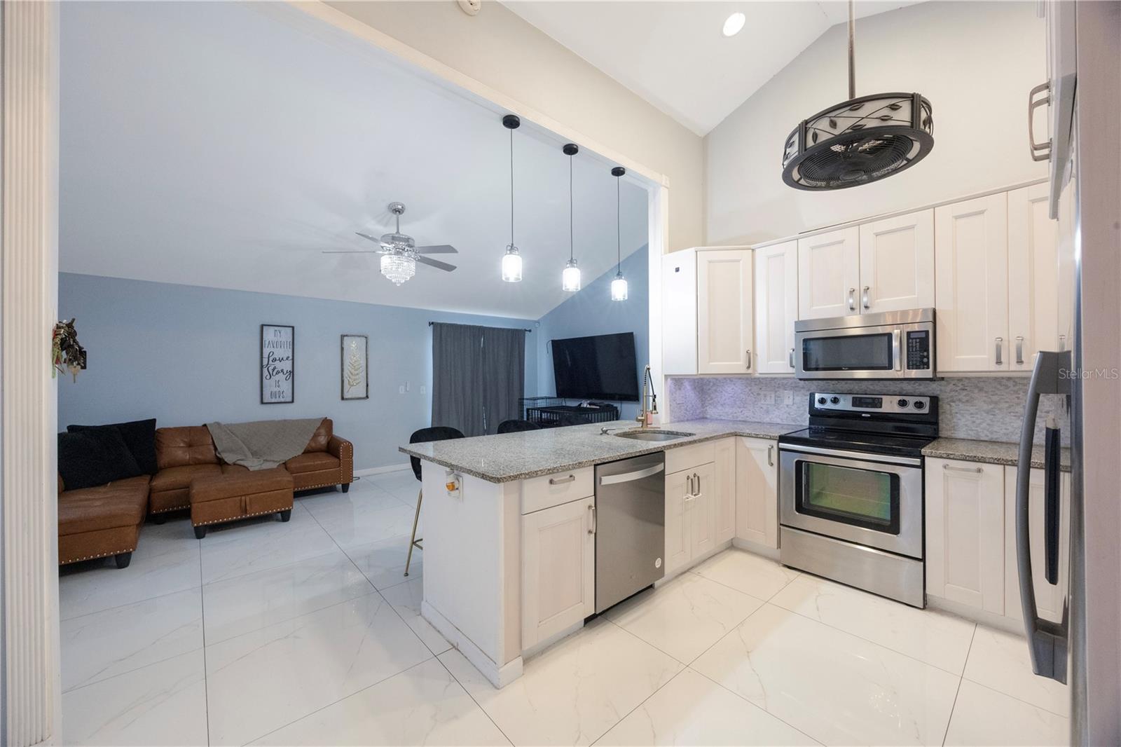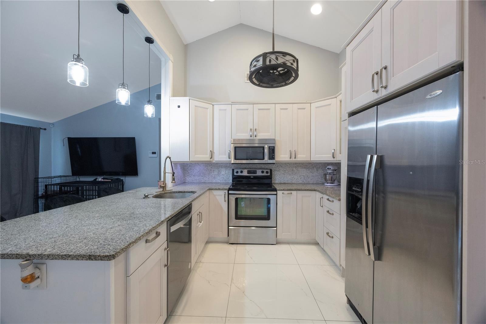 Beautifully updated 3/2 home in the conveniently located and popular community of Lake St. George! Step through the front door and you will fall in love with the open floor plan that has a light and bright kitchen with 42” white shaker cabinets, newly installed 36" tile floors throughout the home along with vaulted ceilings and tons of natural light. In addition to the amazing layout, the kitchen has granite countertops, stainless steel appliances, under cabinet and recessed lighting. You will appreciate the breakfast bar with pendant lighting that opens up to the great room making this an excellent home for entertaining and gathering together to make wonderful memories. The Primary Bedroom features an en-suite bathroom and a double closet. All bedrooms are spacious with plenty of storage space and the 3rd bedroom features a newer sliding glass door to the back yard, making it great for an office or playroom! Enjoy outside entertaining on this large corner lot and quiet street! There is plenty of room to create a backyard oasis and possibly add a pool. The huge back yard sports a newer white vinyl privacy fence giving you a perfect space for parties, pets, grilling or chilling! The Roof and A/C were replaced in 2022. This home is in a non-evacuation zone and does not require flood insurance. Travel about 3 blocks to the Lake St. George Community recreation area that has a lakefront park, picnic tables, fishing pier, community pool, playground, tennis and basketball courts. Other local attractions include East Lake Woodlands Country Club, Lake Tarpon, Brooker Creek Preserve, great restaurants and it’s just a short trip from here to Honeymoon and Caladesi Islands. Last but not least, the zoned elementary and middle schools are A rated and combined with the local amenities this is the perfect home for the next chapter in your book..