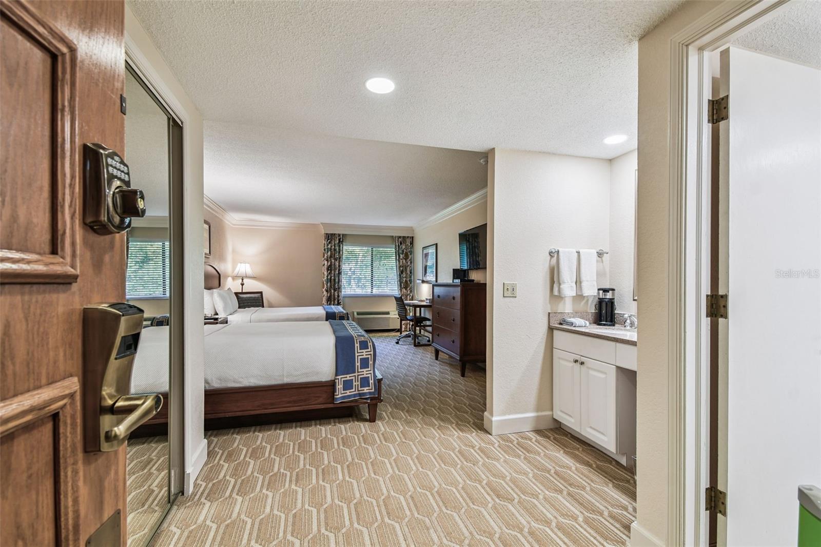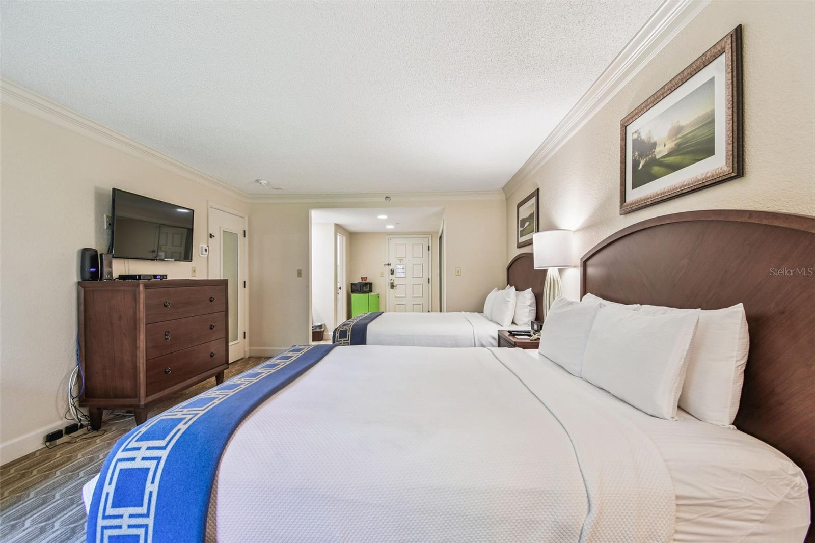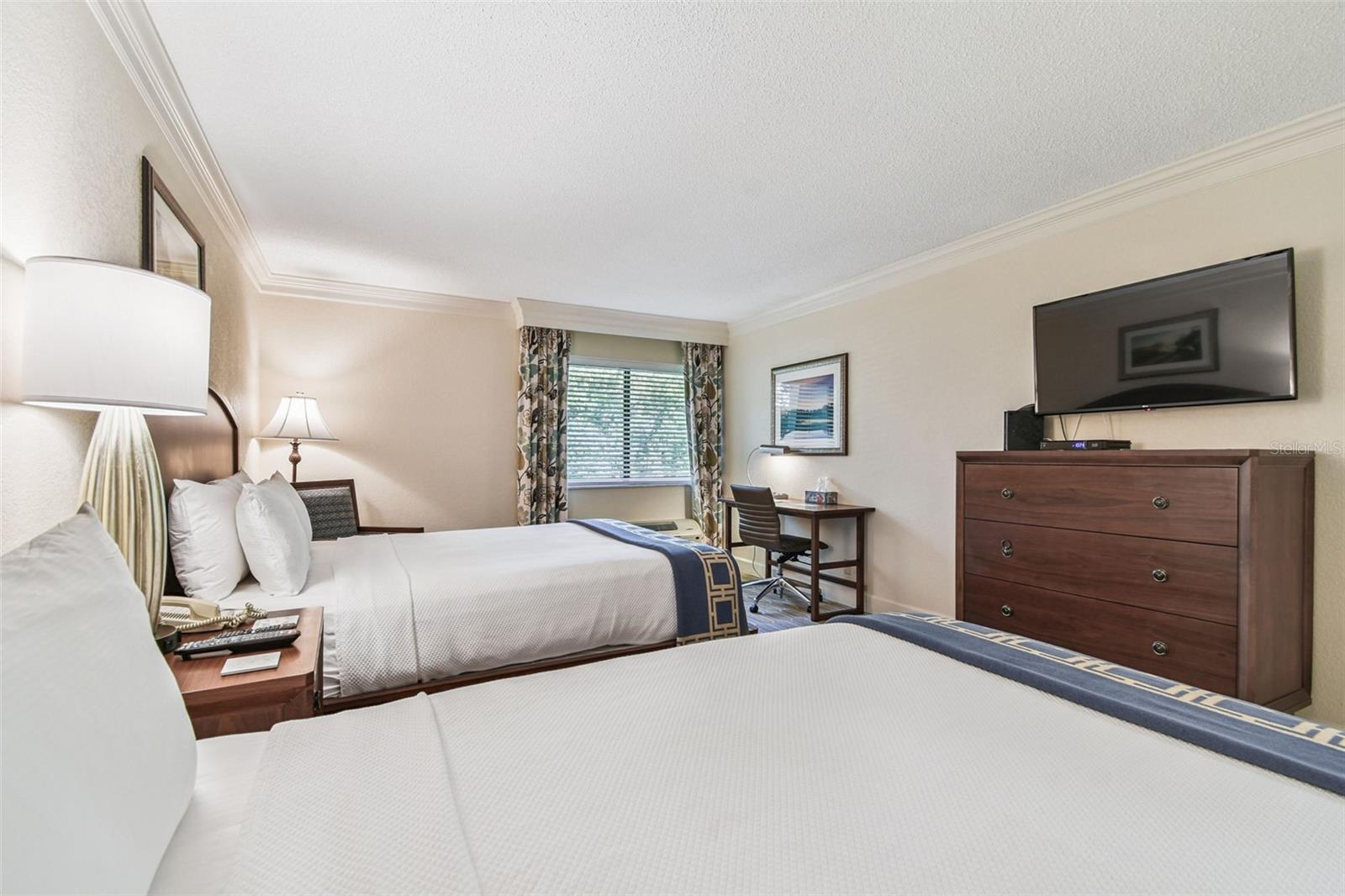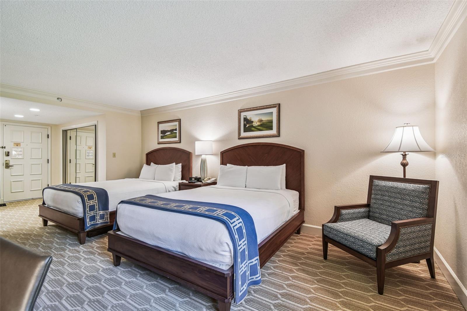 Three Bedroom/Two Bath "D" Unit - Top floor of 2-story lodge, this CORNER Unit with lovely greenery and nature will stimulate the senses as you enjoy days and evenings relaxing on the large wrap-around corner balcony. The “hotel suite” Primary bedroom furnished with two Queen pillow-top beds and furnishings UPDATED TO MEET THE RESORT'S RENTAL POOL STANDARDS. The interior is spacious and inviting with 3 actual bedrooms. This condo is offered fully furnished including a sleeper sofa in the living room and plenty of spaciousness for entertaining. King size bed in the 3rd bedroom with a large closet and two Twin beds in 2nd bedroom. The “hotel suite” Primary bedroom furnished with two Queen pillow-top beds and furnishings updated to meet the Resort’s RENTAL POOL STANDARDS. Please inquire to learn more about ownership in the Rental Pool Program. Several levels of club memberships are available for purchase to participate in the Innisbrook amenities. Innisbrook condo owners have the option to participate in the Resort’s optional Rental Pool program (condos in lodges 1-24 only). Situated on 800 wooded acres of rolling hills and 70 acres of lakes, Innisbrook, A Salamander Golf and Spa Resort is located just 25 minutes from Tampa International Airport. Innisbrook features sixty-three holes of golf, including the PGA’s Valspar Championship Copperhead course, 280spacious guest suites and rooms, 5 restaurants and 3 bars including the FAIRWAYS COFFEE AND WINE BAR featuring STARBUCKS coffee, 10 Har-Tru TENNIS courts, 4 Hard-court PICKLEBALL Courts, 3 Indoor RACQUETBALL courts, a full-service Salamander SPA with 12 treatment rooms and Fitness Center, 6 Swimming POOL Complexes, and 2 Conference halls.