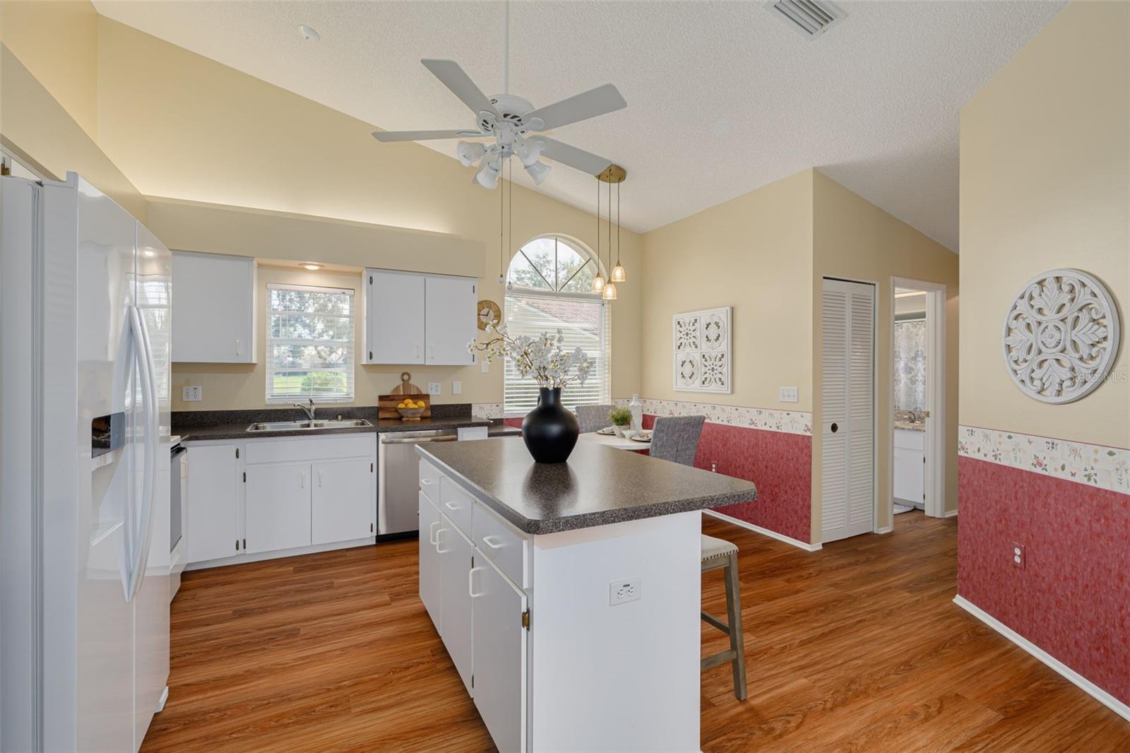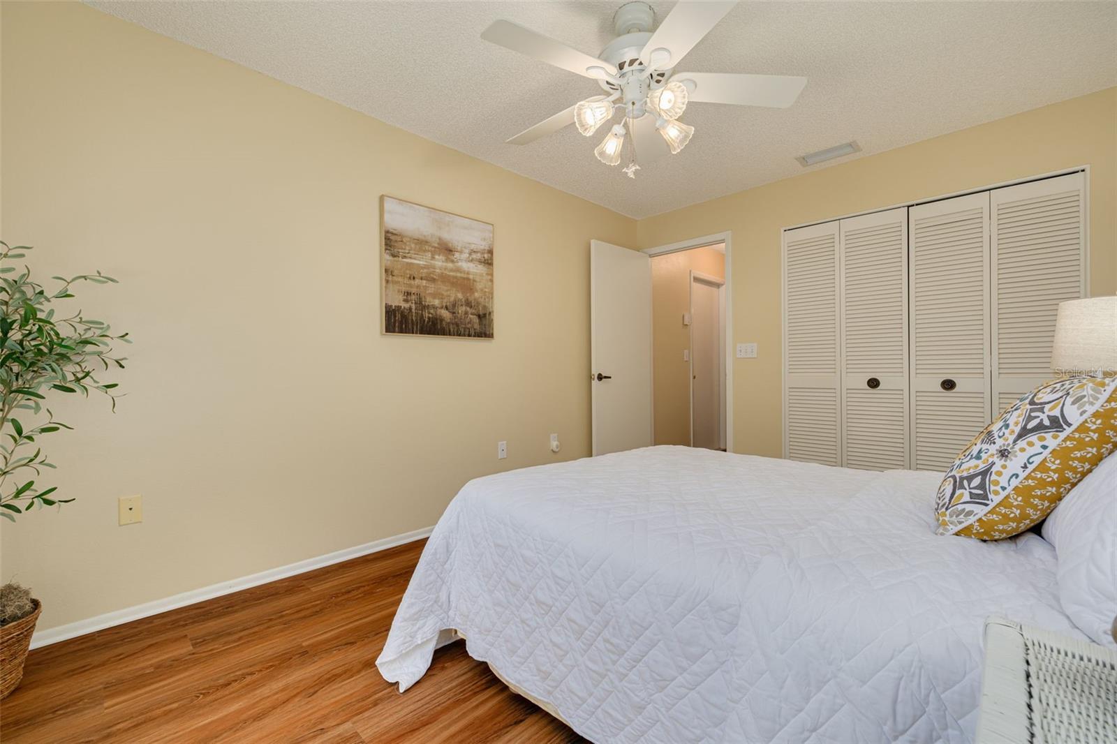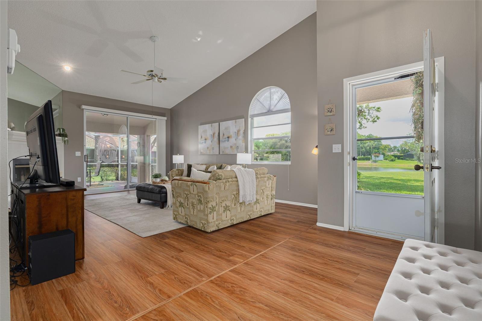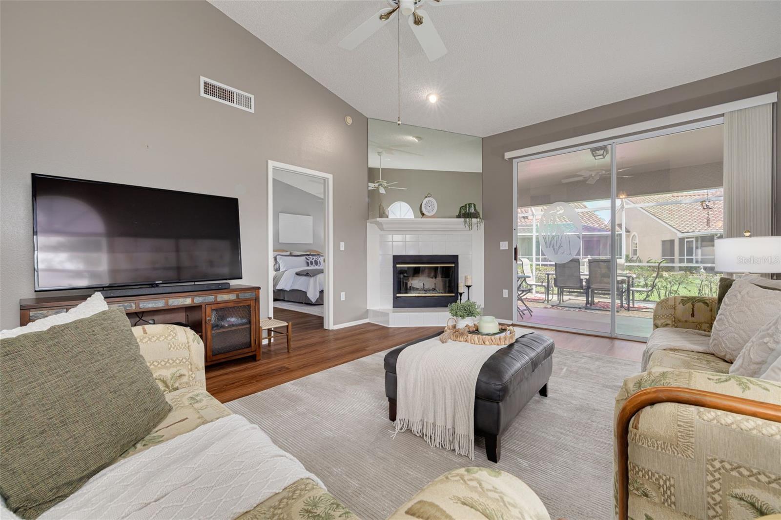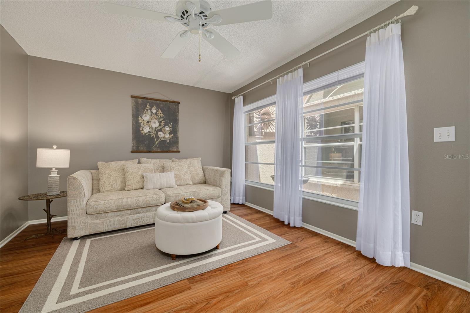 Tucked away at the end of a cul-de-sac, this villa is located inside the gated community of Salem Village, part of the beautifully maintained Ridgemoor neighborhood. Residents of this desirable community enjoy a heated pool and cabana, along with access to Ridgemoor’s park, tennis courts, basketball court, and playground. Offering nearly 1,700 sq. ft., the home features 2 bedrooms, 2 bathrooms, an office/den, and a 2-car garage. Inside, you’ll find a spacious living room with soaring ceilings, a wood-burning fireplace, and newer vinyl plank flooring that flows throughout. The kitchen is equipped with newer appliances, while the hot water tank and water softener were replaced within the last few years. A Mediterranean-style tile roof enhances the home’s charm and curb appeal. Sliding glass doors open to a screened lanai overlooking a tranquil pond, lush trees, and an oversized side yard. Reasonable HOA fees include lawn care, exterior maintenance, cable TV, internet, and trash service for a truly worry-free lifestyle. Outdoor enthusiasts will appreciate being just minutes from John Chesnut Park, with its scenic trails and boardwalks along Lake Tarpon, while the white sands of Clearwater Beach and Honeymoon Island are only a short drive away. Conveniently located near shops, restaurants, banks, and everyday essentials, this villa perfectly combines comfort, convenience, and an ideal Palm Harbor location.