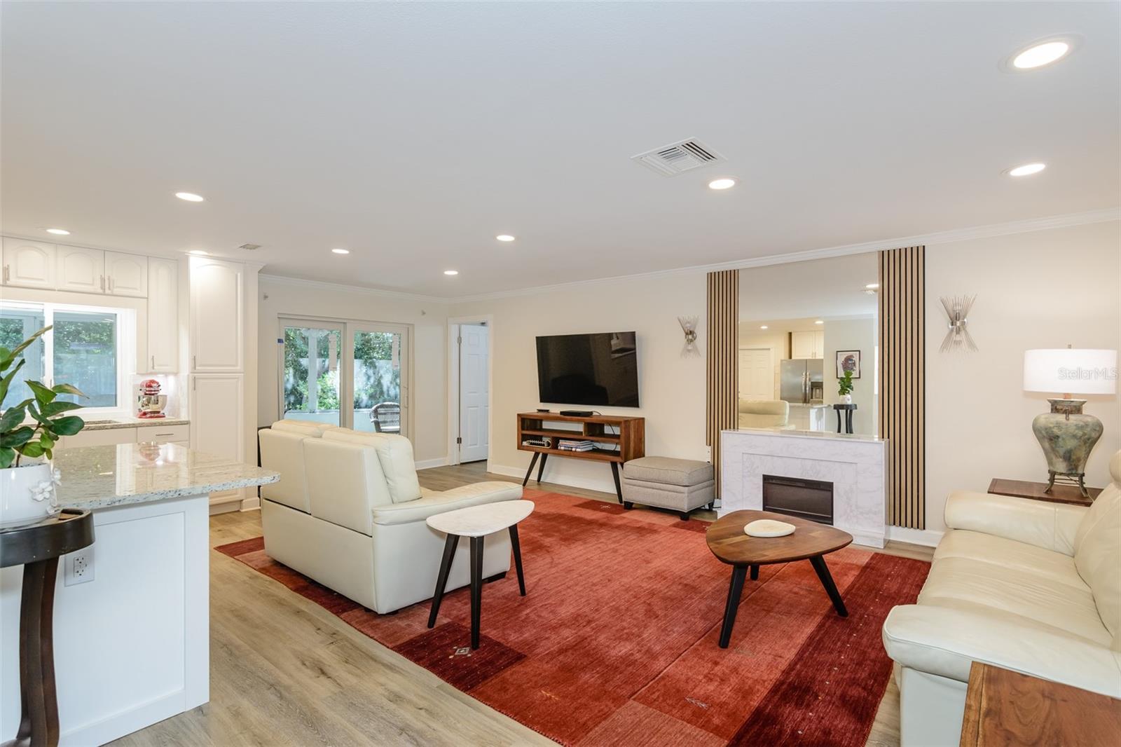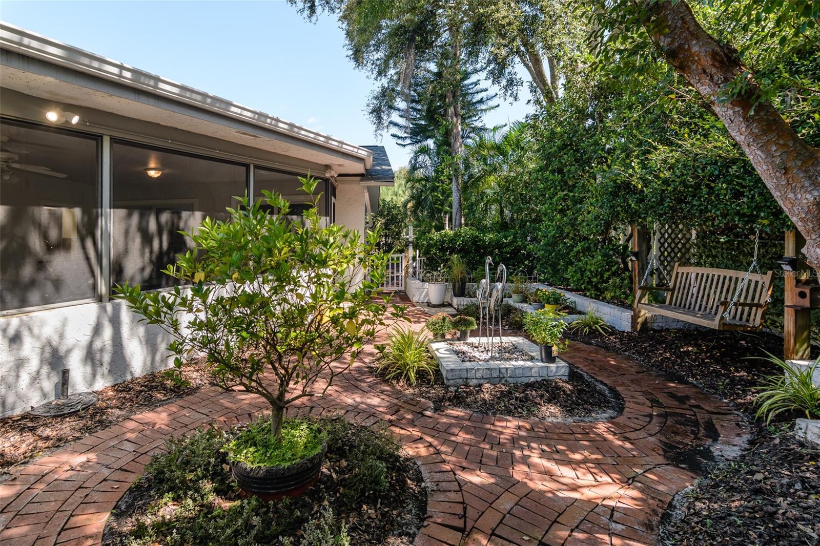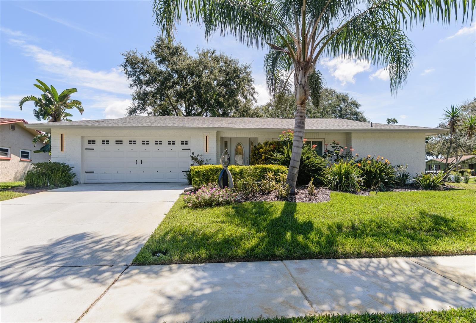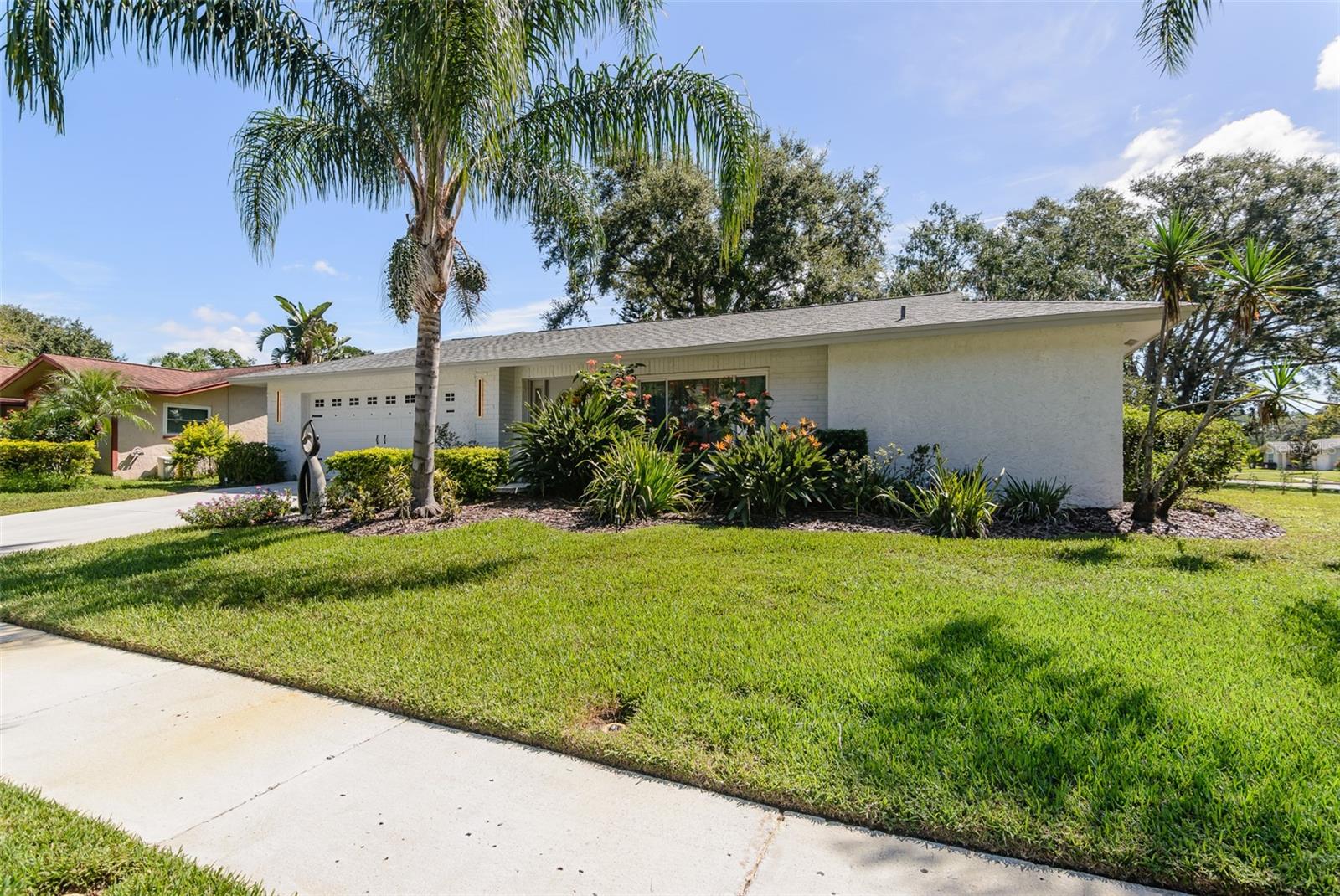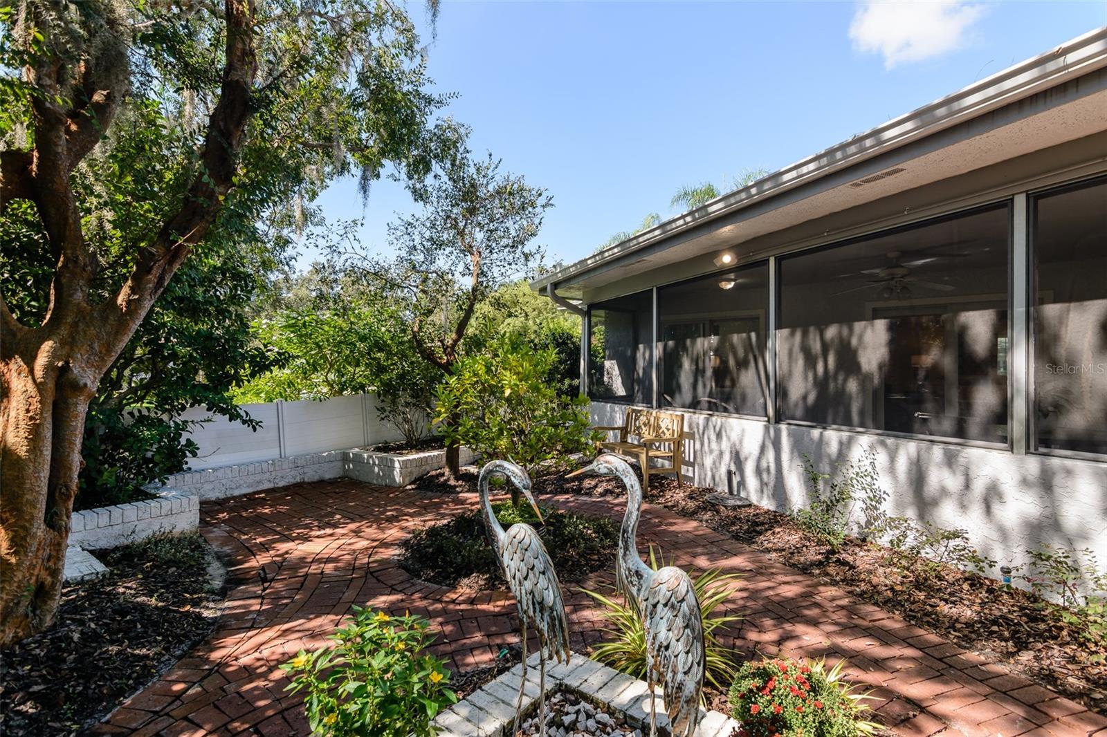 MOTIVATED SELLER. Looking for a move-in ready, completely updated 2Br/2Ba/2Gar home on a corner lot in a 55+ community? Look no further! Beautifully and fully updated baths and kitchen with new stainless refrigerator and range. Eight panels of Andersen Renewal impact rated sliding glass doors ($32,000) installed in August 2025 with views of the grand screened lanai and a charming brick-paved courtyard garden with fenced backyard. Impact rated windows installed in 2023. Shingle and flat roofs replaced in October 2023. Luxury vinyl plank flooring throughout. Crown molding in shared living spaces and 4 inch baseboards. Kitchen with granite countertops, marble mosaic backsplash, undermount sink, and under cabinet lighting opens to both living room and dining room. Electric fireplace in living room for chilly winter evenings. Split bedroom plan. The primary bedroom has a large walk-in closet and beautiful ensuite bath with stone countertop and walk-in shower. The guest bedroom with wall of closets abuts the guest bath with stone countertop, undermount sink, newer cabinet, tiled walls and tub rain-shower. Linen closet. New electric hot water heater 2025. Water softener. Newer washer and dryer in garage. Open all the sliding glass doors to bring the outdoors in during mild weather. Community pool and clubhouse with full kitchen, library, and billiard room. Low $500 annual HOA fee. Must own 2 years prior to leasing and a twelve month lease restriction with required HOA approval. Walkable to Lansbrook Golf Course and Suncoast YMCA with gym, pool, tennis courts, basketball, yoga classes, and exercise classes. Bike ride to John Chestnut Park with dog park, boat ramp and a boardwalk and tower for viewing Lake Tarpon. Also easy access to Pinellas Trail for walking and biking. Twenty minutes to Honeymoon Island State Park Beach.