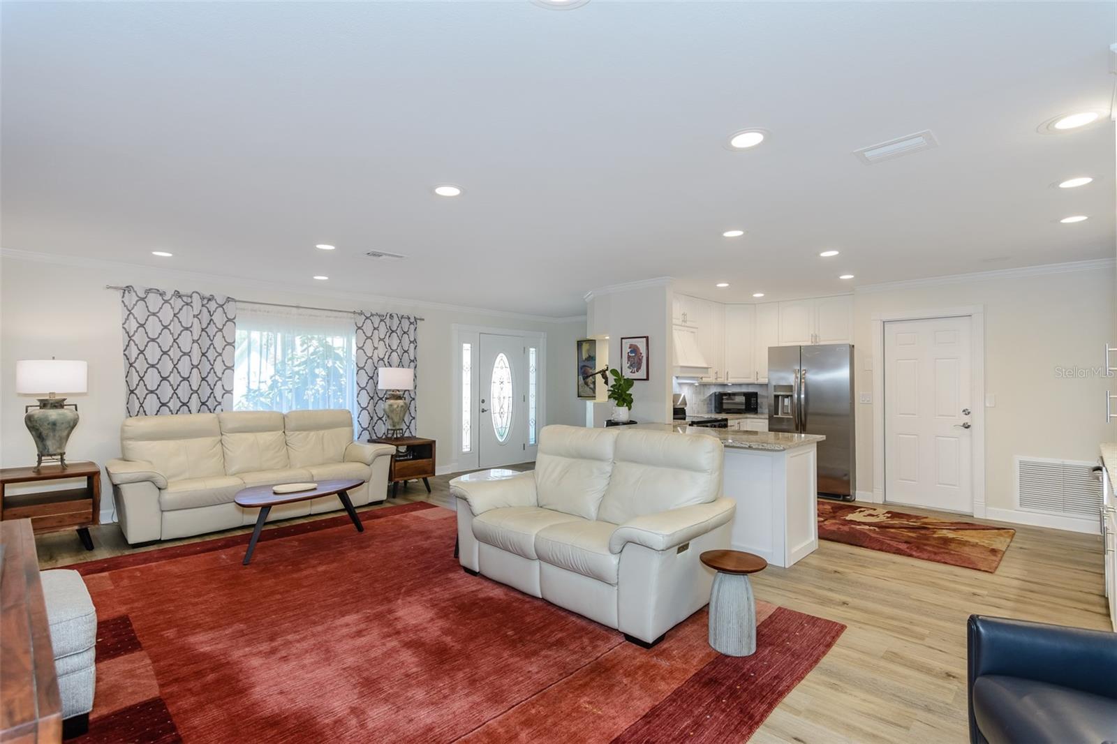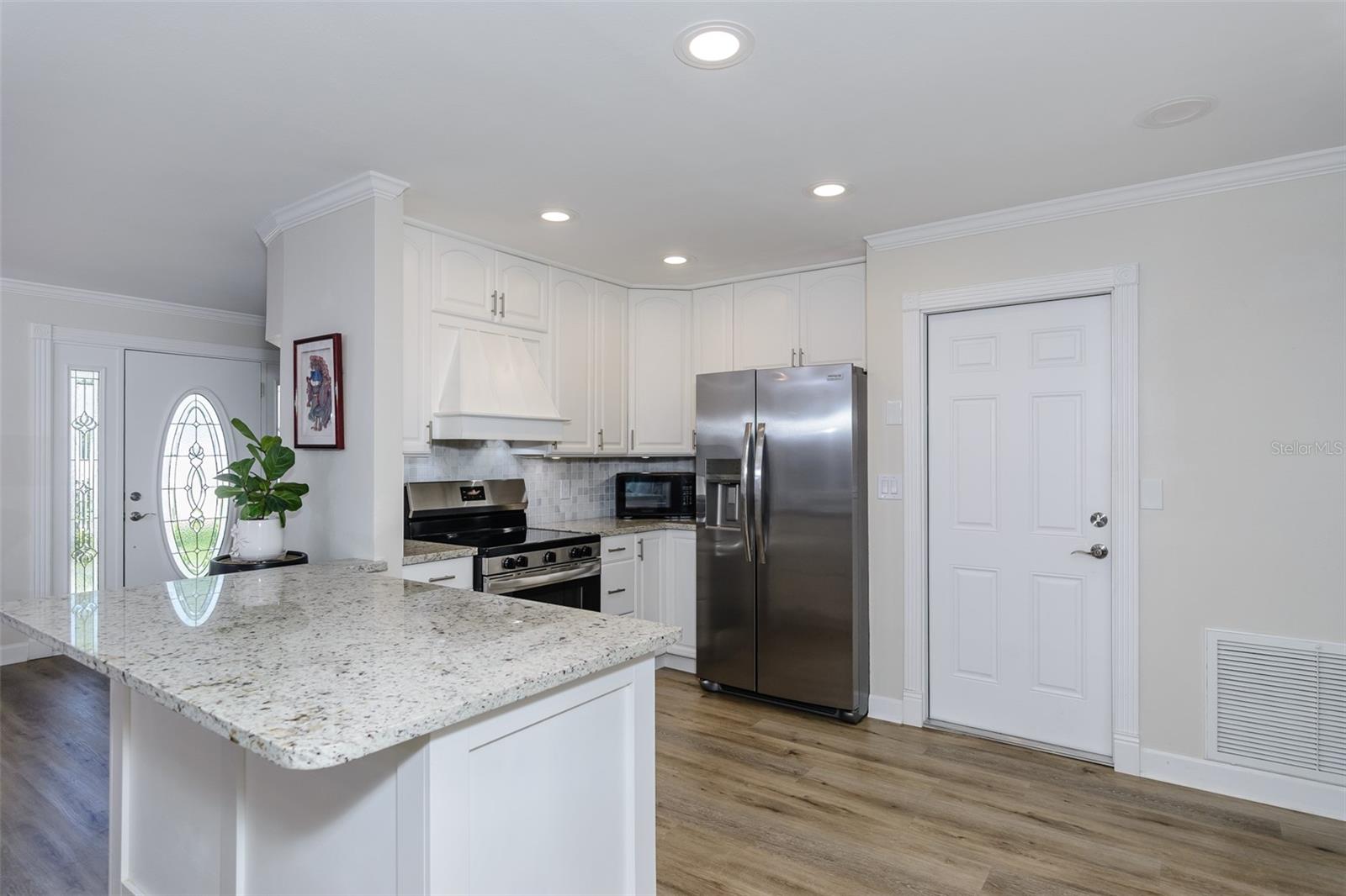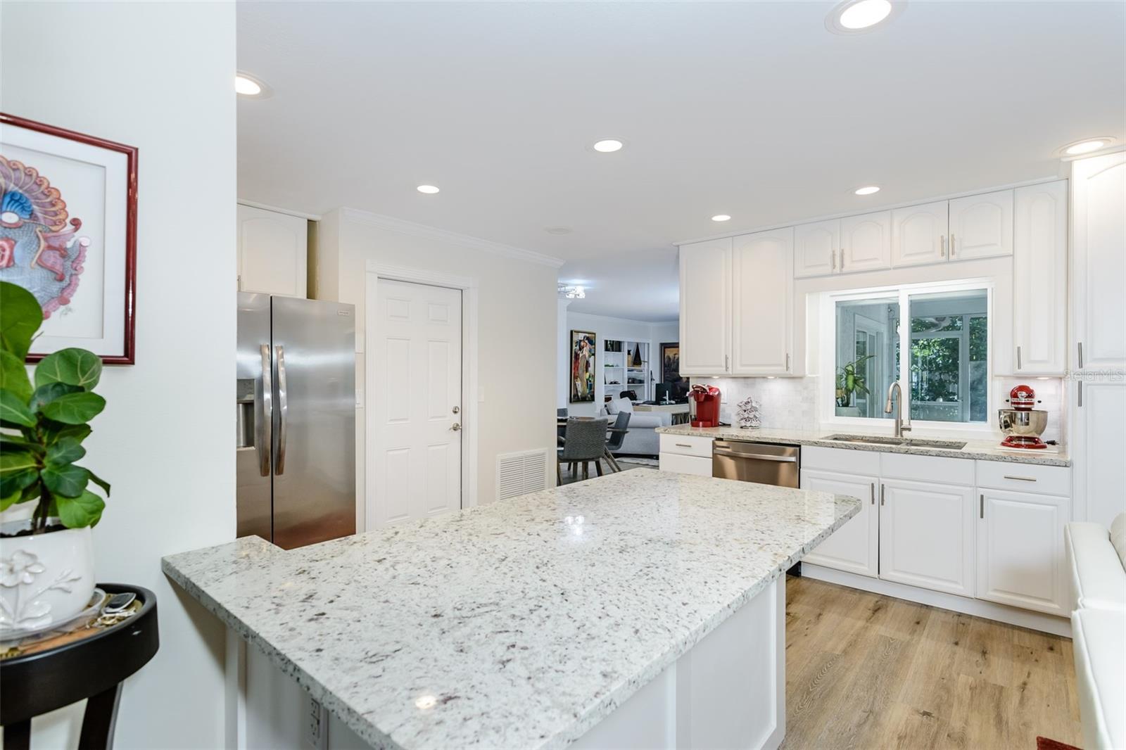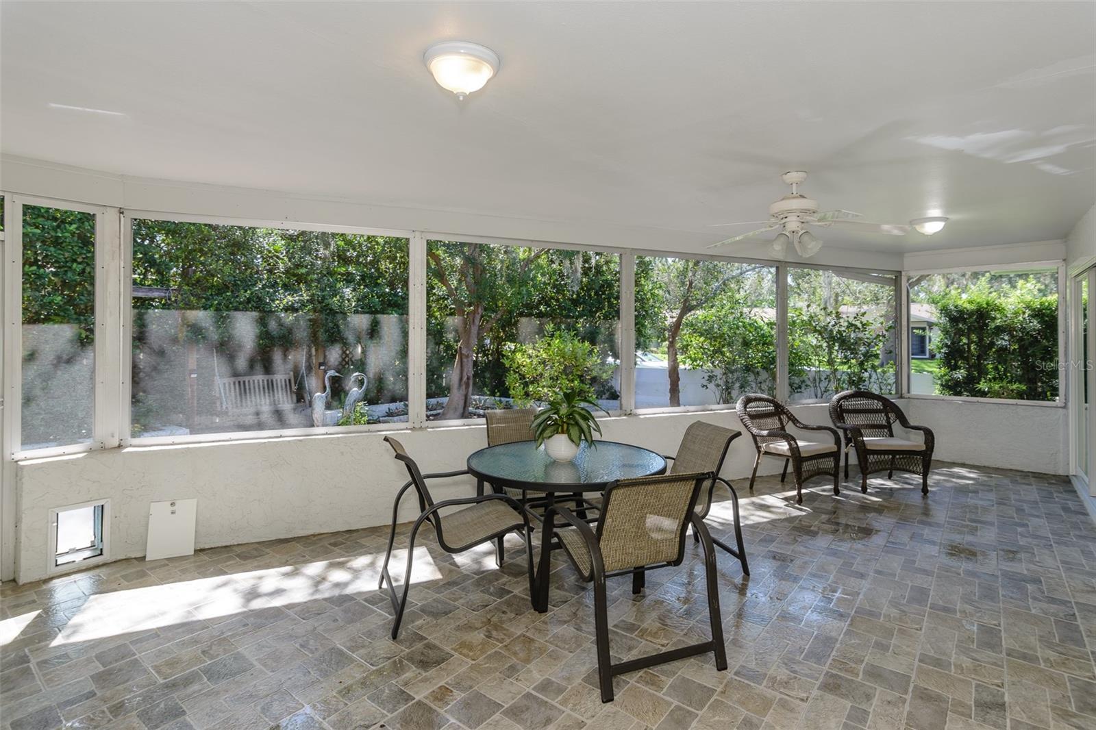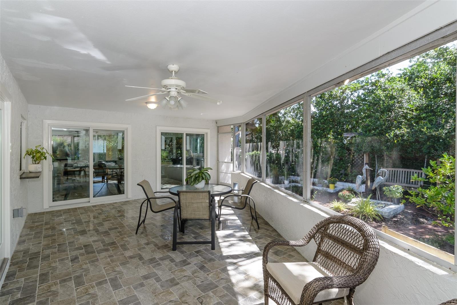 MOTIVATED SELLER. Looking for a move-in ready, completely updated 2Br/2Ba/2Gar home on a corner lot in a 55+ community? Look no further! Beautifully and fully updated baths and kitchen with new stainless refrigerator and range. Eight panels of Andersen Renewal impact rated sliding glass doors ($32,000) installed in August 2025 with views of the grand screened lanai and a charming brick-paved courtyard garden with fenced backyard. Impact rated windows installed in 2023. Shingle and flat roofs replaced in October 2023. Luxury vinyl plank flooring throughout. Crown molding in shared living spaces and 4 inch baseboards. Kitchen with granite countertops, marble mosaic backsplash, undermount sink, and under cabinet lighting opens to both living room and dining room. Electric fireplace in living room for chilly winter evenings. Split bedroom plan. The primary bedroom has a large walk-in closet and beautiful ensuite bath with stone countertop and walk-in shower. The guest bedroom with wall of closets abuts the guest bath with stone countertop, undermount sink, newer cabinet, tiled walls and tub rain-shower. Linen closet. New electric hot water heater 2025. Water softener. Newer washer and dryer in garage. Open all the sliding glass doors to bring the outdoors in during mild weather. Community pool and clubhouse with full kitchen, library, and billiard room. Low $500 annual HOA fee. Must own 2 years prior to leasing and a twelve month lease restriction with required HOA approval. Walkable to Lansbrook Golf Course and Suncoast YMCA with gym, pool, tennis courts, basketball, yoga classes, and exercise classes. Bike ride to John Chestnut Park with dog park, boat ramp and a boardwalk and tower for viewing Lake Tarpon. Also easy access to Pinellas Trail for walking and biking. Twenty minutes to Honeymoon Island State Park Beach.