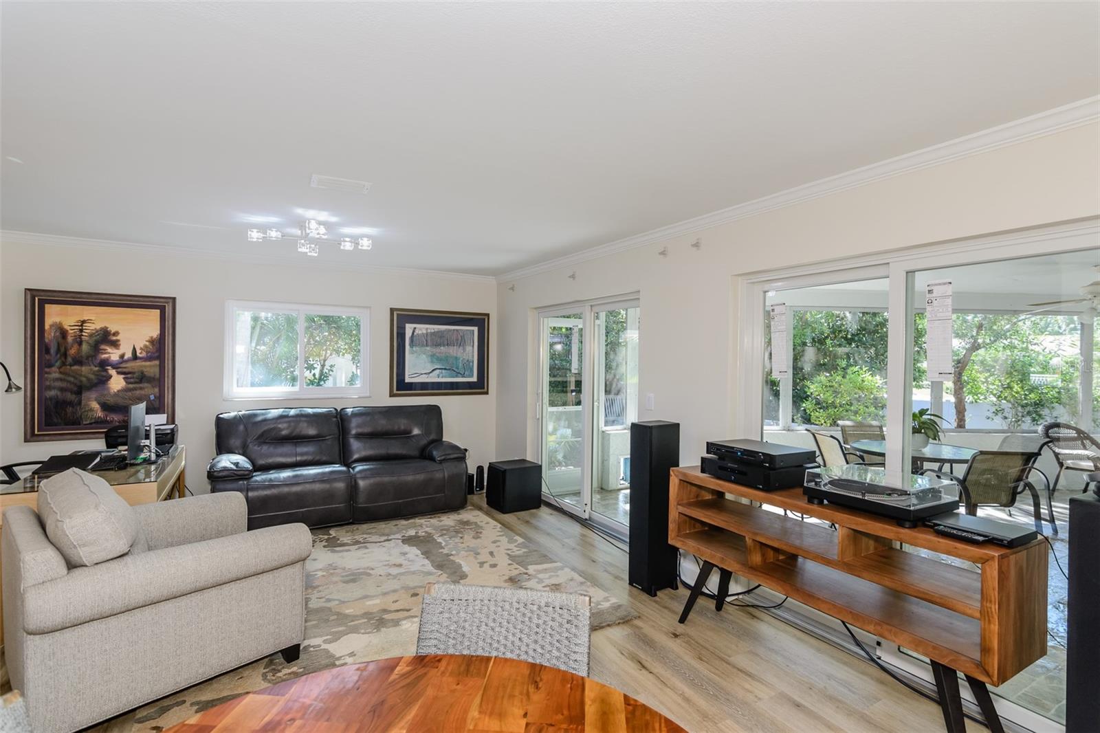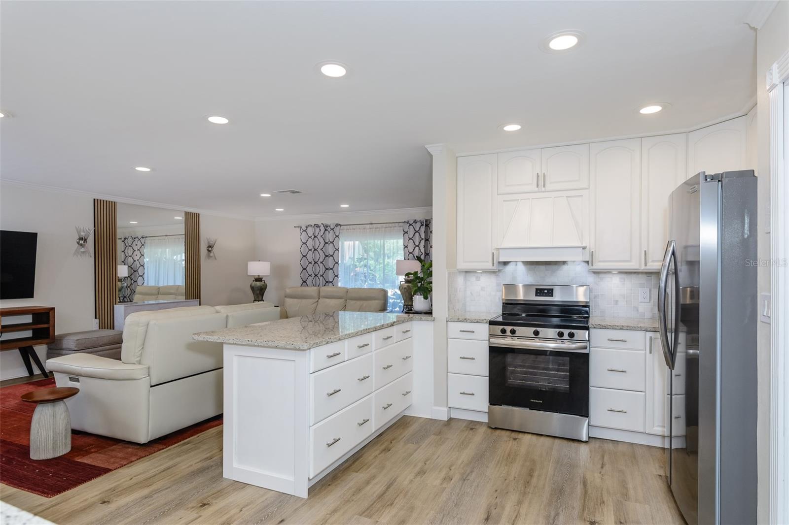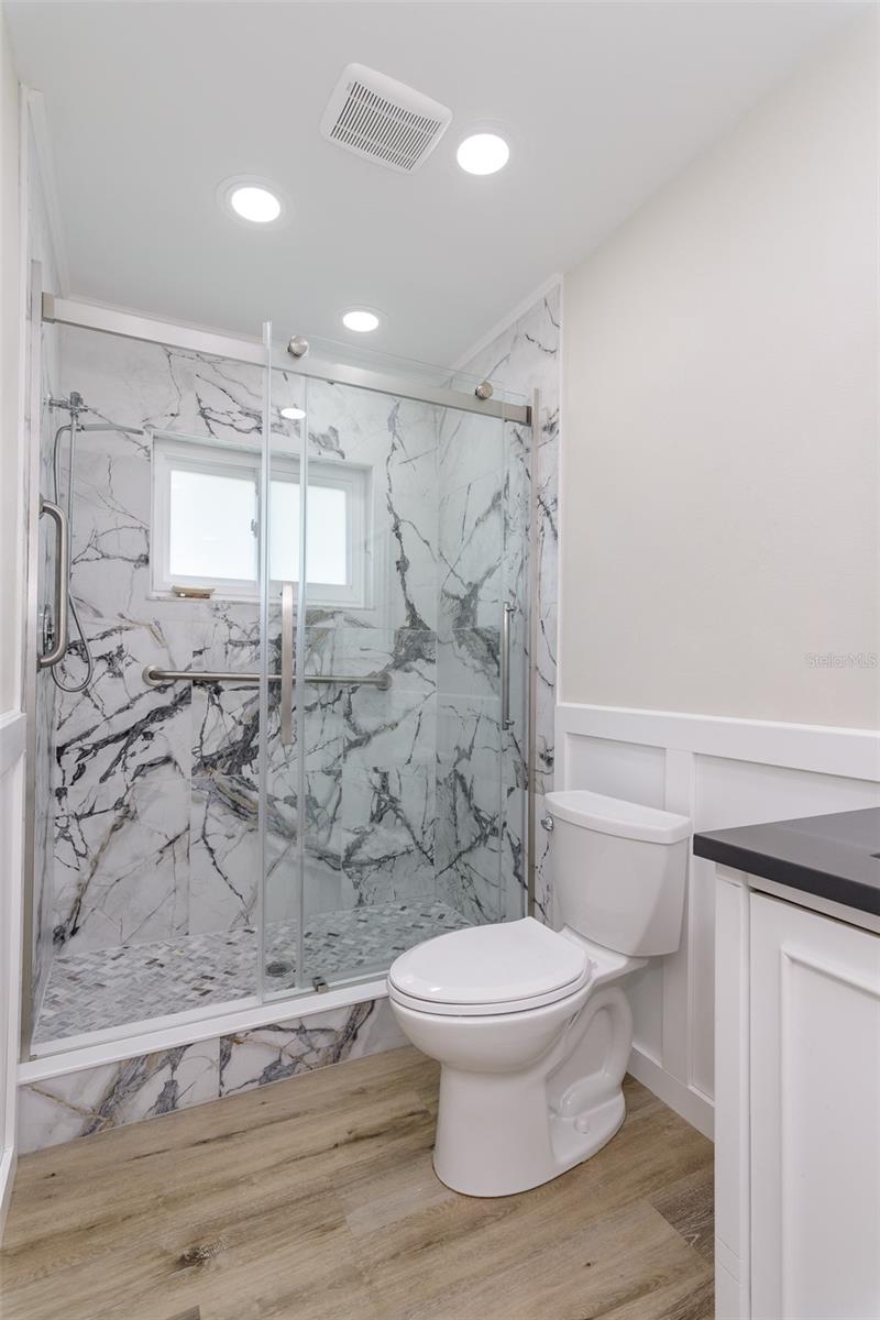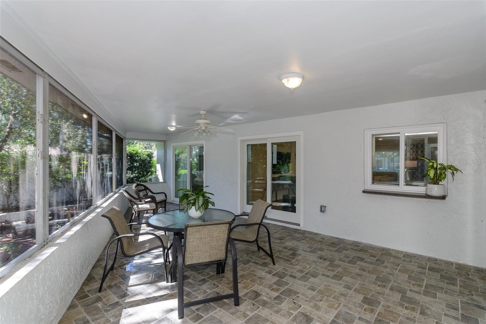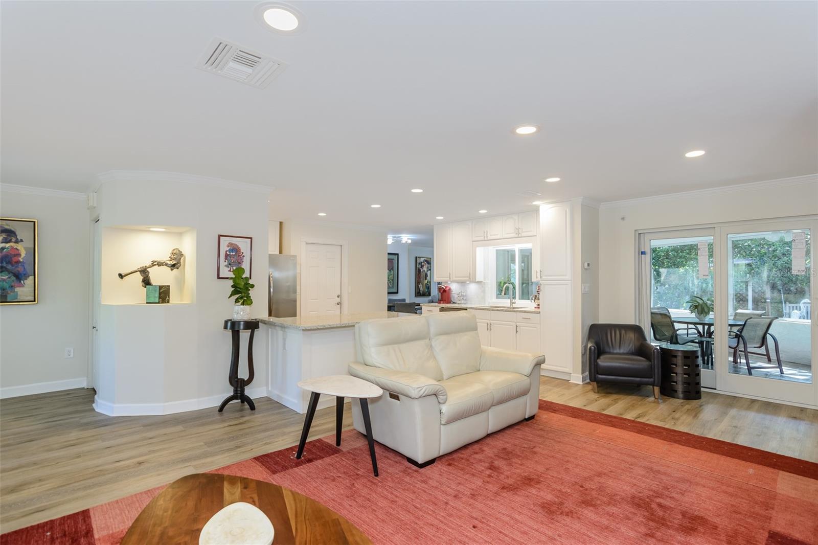 MOTIVATED SELLER. Looking for a move-in ready, completely updated 2Br/2Ba/2Gar home on a corner lot in a 55+ community? Look no further! Beautifully and fully updated baths and kitchen with new stainless refrigerator and range. Eight panels of Andersen Renewal impact rated sliding glass doors ($32,000) installed in August 2025 with views of the grand screened lanai and a charming brick-paved courtyard garden with fenced backyard. Impact rated windows installed in 2023. Shingle and flat roofs replaced in October 2023. Luxury vinyl plank flooring throughout. Crown molding in shared living spaces and 4 inch baseboards. Kitchen with granite countertops, marble mosaic backsplash, undermount sink, and under cabinet lighting opens to both living room and dining room. Electric fireplace in living room for chilly winter evenings. Split bedroom plan. The primary bedroom has a large walk-in closet and beautiful ensuite bath with stone countertop and walk-in shower. The guest bedroom with wall of closets abuts the guest bath with stone countertop, undermount sink, newer cabinet, tiled walls and tub rain-shower. Linen closet. New electric hot water heater 2025. Water softener. Newer washer and dryer in garage. Open all the sliding glass doors to bring the outdoors in during mild weather. Community pool and clubhouse with full kitchen, library, and billiard room. Low $500 annual HOA fee. Must own 2 years prior to leasing and a twelve month lease restriction with required HOA approval. Walkable to Lansbrook Golf Course and Suncoast YMCA with gym, pool, tennis courts, basketball, yoga classes, and exercise classes. Bike ride to John Chestnut Park with dog park, boat ramp and a boardwalk and tower for viewing Lake Tarpon. Also easy access to Pinellas Trail for walking and biking. Twenty minutes to Honeymoon Island State Park Beach.