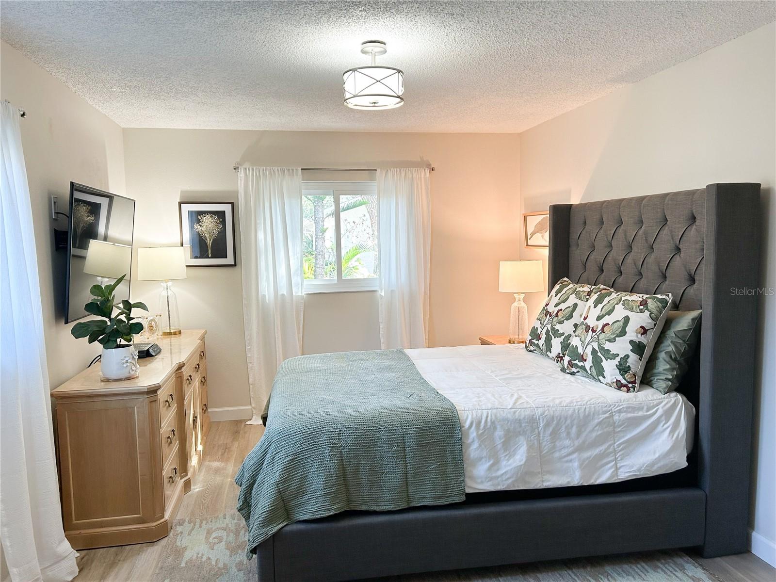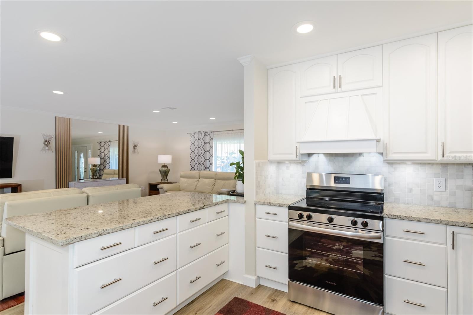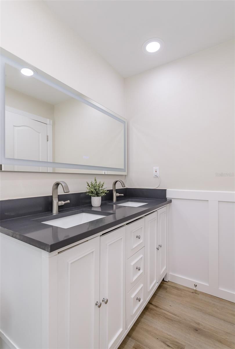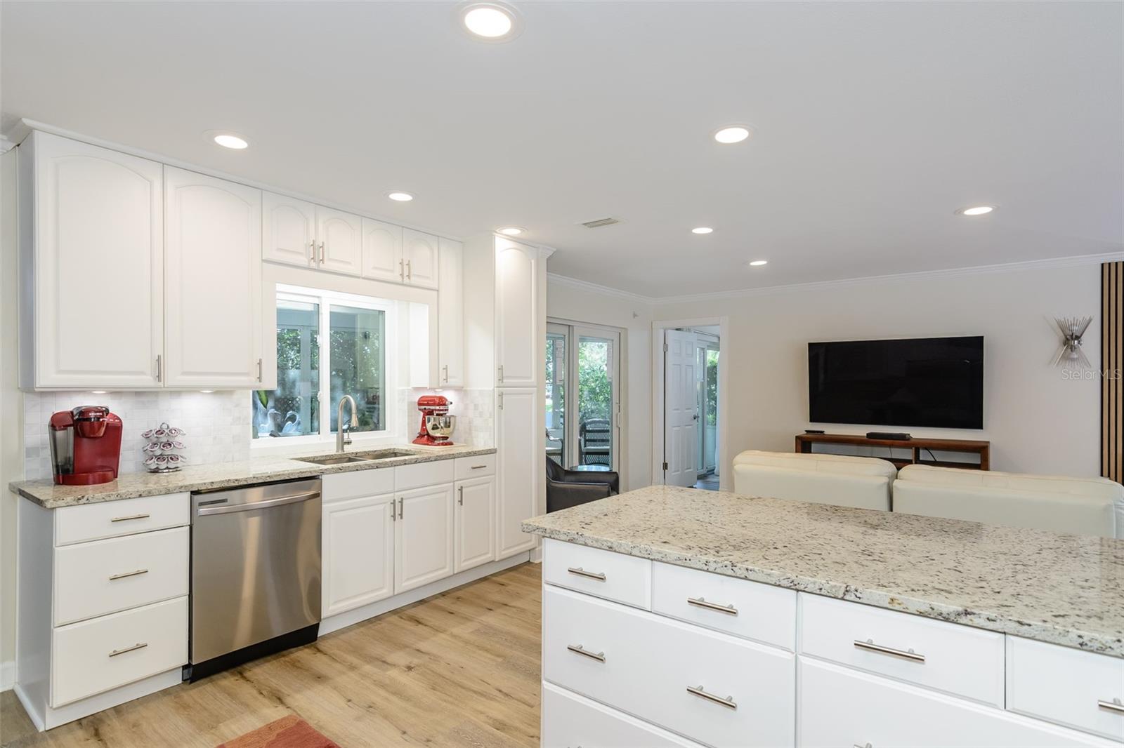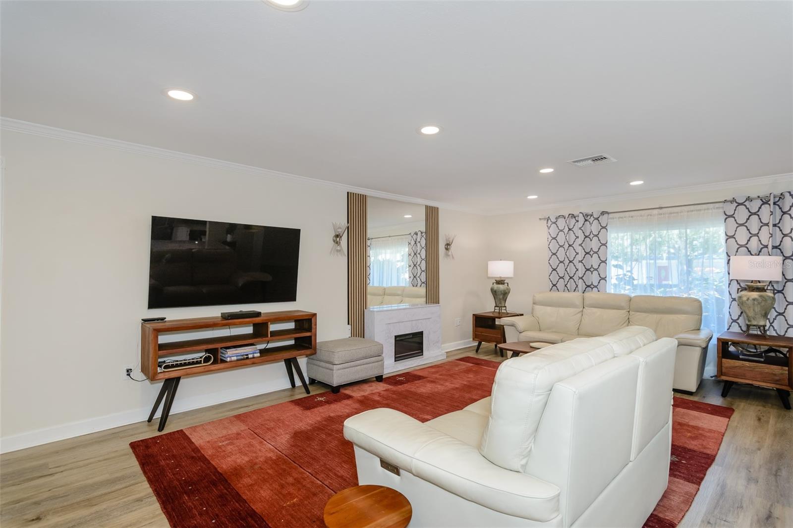 MOTIVATED SELLER. Looking for a move-in ready, completely updated 2Br/2Ba/2Gar home on a corner lot in a 55+ community? Look no further! Beautifully and fully updated baths and kitchen with new stainless refrigerator and range. Eight panels of Andersen Renewal impact rated sliding glass doors ($32,000) installed in August 2025 with views of the grand screened lanai and a charming brick-paved courtyard garden with fenced backyard. Impact rated windows installed in 2023. Shingle and flat roofs replaced in October 2023. Luxury vinyl plank flooring throughout. Crown molding in shared living spaces and 4 inch baseboards. Kitchen with granite countertops, marble mosaic backsplash, undermount sink, and under cabinet lighting opens to both living room and dining room. Electric fireplace in living room for chilly winter evenings. Split bedroom plan. The primary bedroom has a large walk-in closet and beautiful ensuite bath with stone countertop and walk-in shower. The guest bedroom with wall of closets abuts the guest bath with stone countertop, undermount sink, newer cabinet, tiled walls and tub rain-shower. Linen closet. New electric hot water heater 2025. Water softener. Newer washer and dryer in garage. Open all the sliding glass doors to bring the outdoors in during mild weather. Community pool and clubhouse with full kitchen, library, and billiard room. Low $500 annual HOA fee. Must own 2 years prior to leasing and a twelve month lease restriction with required HOA approval. Walkable to Lansbrook Golf Course and Suncoast YMCA with gym, pool, tennis courts, basketball, yoga classes, and exercise classes. Bike ride to John Chestnut Park with dog park, boat ramp and a boardwalk and tower for viewing Lake Tarpon. Also easy access to Pinellas Trail for walking and biking. Twenty minutes to Honeymoon Island State Park Beach.