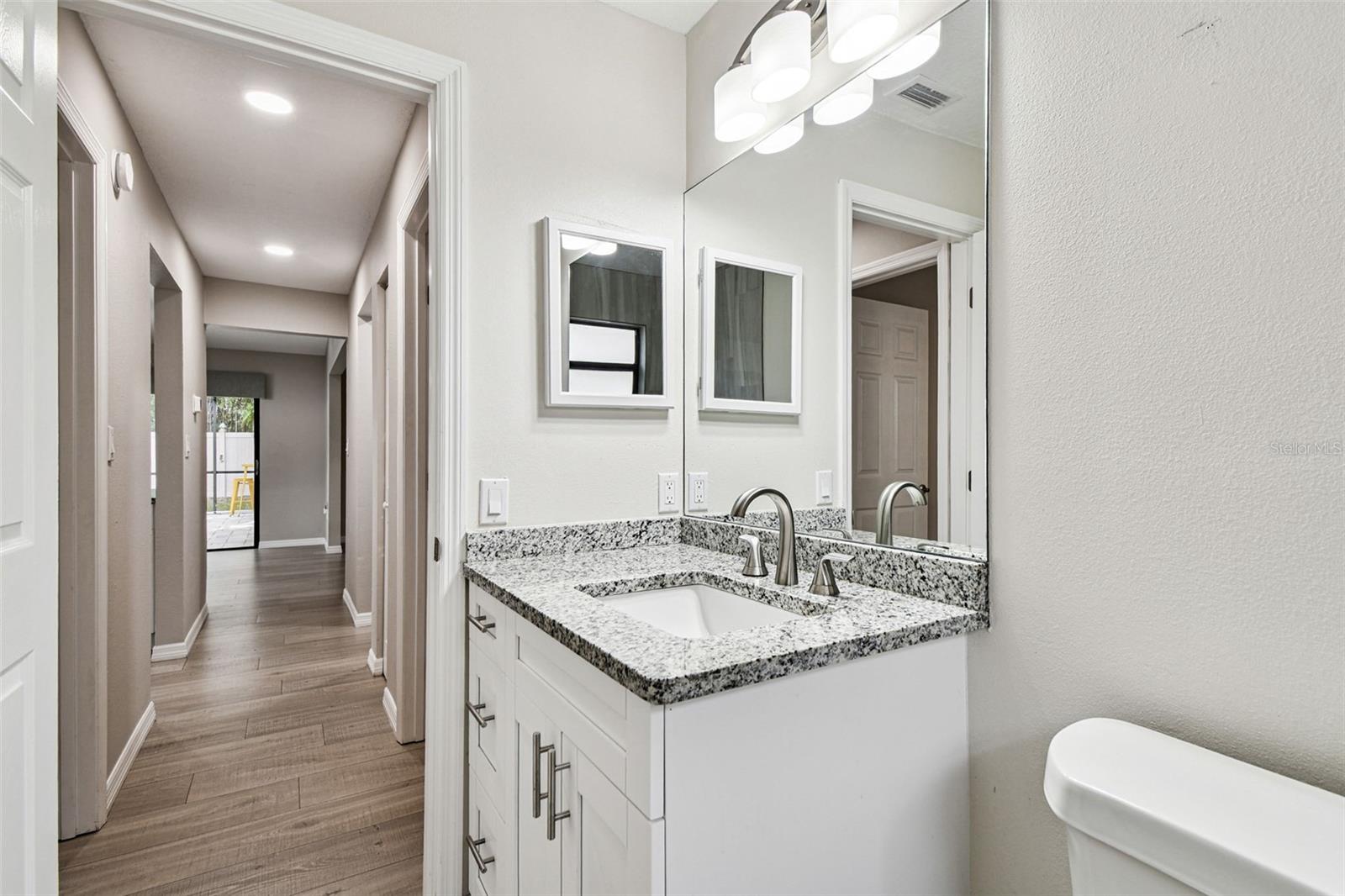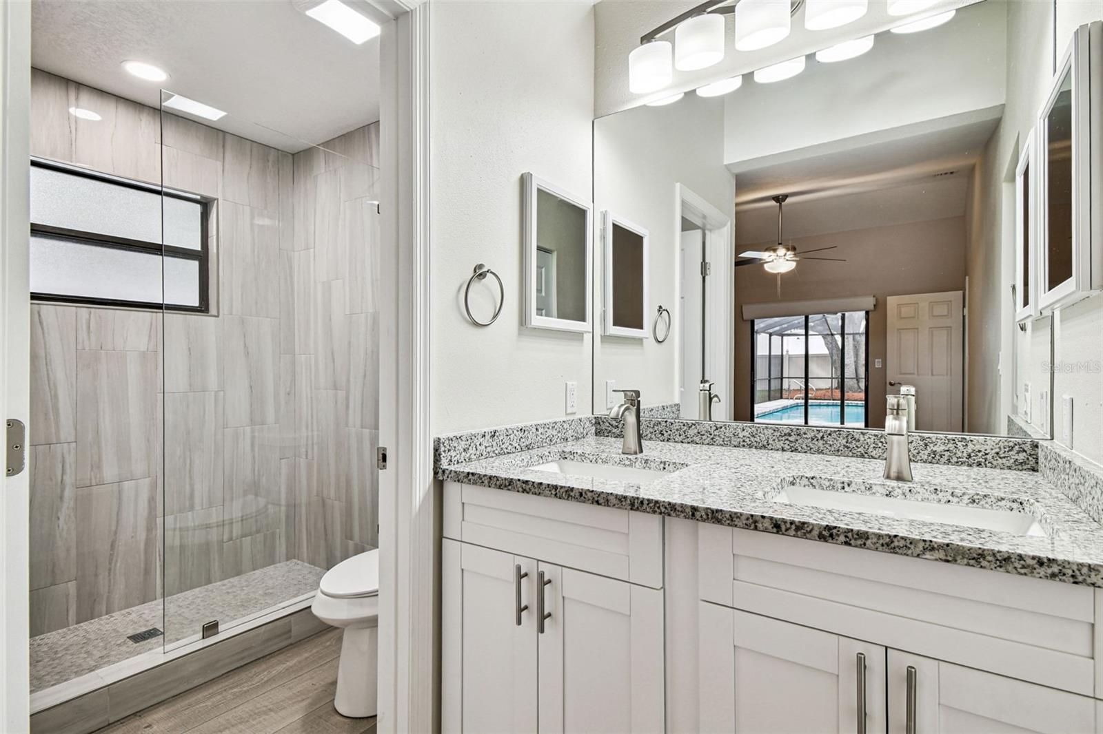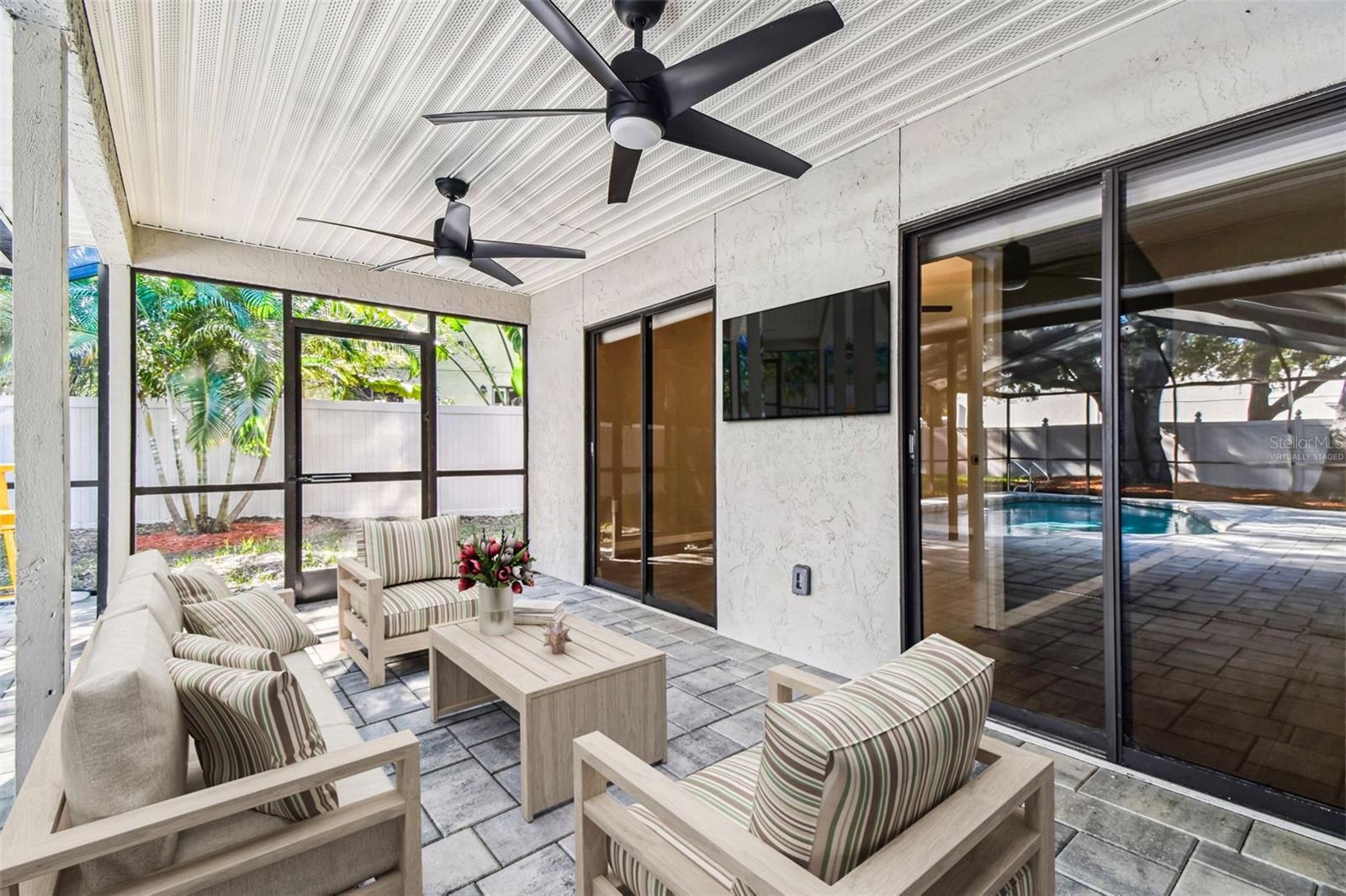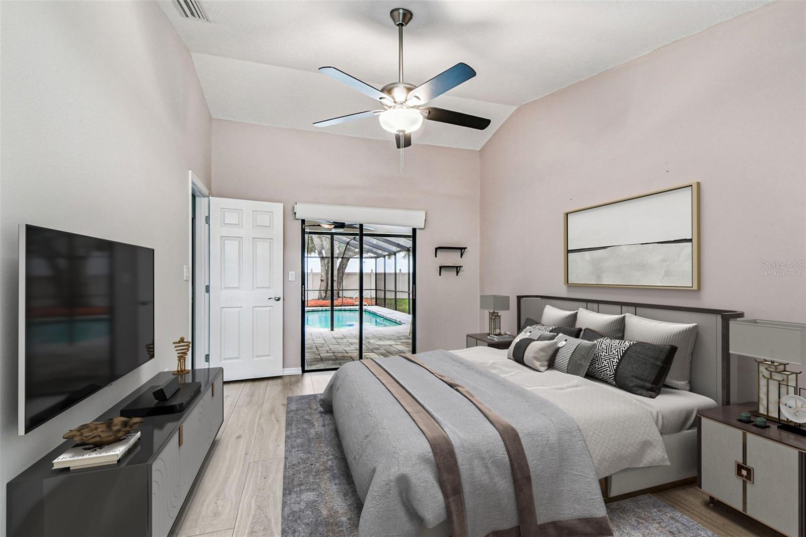 One or more photo(s) has been virtually staged. Stunning home in Crystal Beach Estates, fully remodeled just 2 years ago! Features include a new roof with transferable warranty and no flood insurance required. Enjoy the screen-enclosed in-ground pool with newly refinished surface, fresh pavers, and upgraded patio drainage. Inside, the open split floor plan boasts vaulted ceilings, luxury vinyl flooring, and all-new fixtures and ceiling fans. The modern kitchen showcases stainless steel appliances, custom soft-close wood cabinets, granite countertops, and a convenient wine/coffee bar perfect for entertaining. Both bathrooms have been beautifully updated, while the master suite offers a walk-in closet. Unique upgrades include a laundry room with custom dog wash station and pull-out steps, a quality vinyl fence, whole home R.O water filtration system and fresh landscaping. Located on a quiet street with no deed restrictions and zoned for top-rated schools.