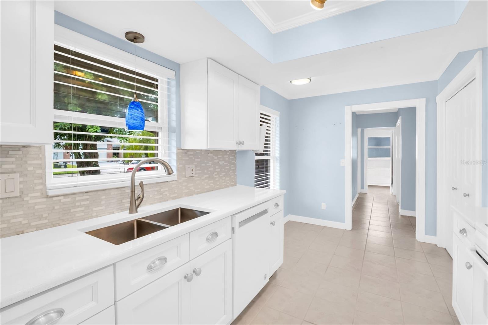 One or more photo(s) has been virtually staged. Beautifully updated and move-in ready, this 2-bedroom, 2-bath home is nestled in Palm Harbor’s premier 55+ golf community, Highland Lakes. From the moment you enter through the elegant glass front door, you're welcomed into a bright, open-concept living space featuring neutral tones, chair rail accents, smooth ceilings (no popcorn!), and abundant natural light. The spacious Florida room offers tranquil, private green views through hurricane-impact windows and opens via double glass doors to a fully enclosed lanai—not included in the living square footage—perfect for relaxing or entertaining. The modern kitchen boasts quartz countertops, solid wood cabinetry, a large pantry, tray ceiling, and a sunny eat-in dining nook. The generous master suite features a walk-in shower, a large walk-in closet, and an additional built-in closet for extra storage. Laundry hookups are available both inside the home and in the garage—your choice! Key updates include a 2019 HVAC system, 2018 electrical panel, hurricane-impact windows, and a cost-saving deep well. A recent 4-point inspection has already been completed and is transferable to the new owner for added peace of mind. Located in a non-evacuation, high-and-dry zone, this home offers safety and comfort year-round. Highland Lakes is celebrated for its vibrant country club lifestyle with a remarkably low HOA fee of just $164/month, covering FREE unlimited golf on three private executive courses, tennis, pickleball, bocce, and shuffleboard courts, as well as a clubhouse with regular entertainment, fitness classes, and social events. Enjoy the lakeside lodge on Lake Tarpon with a private boat ramp, fishing pier, and community pontoon boats. Additional perks include free RV and boat storage and a fully golf cart-friendly layout. Ideally located near world-class Gulf beaches, upscale dining and shopping, top-rated healthcare, major sports venues, two international airports, and a cruise port, this rare gem offers the perfect blend of elegance, comfort, and an active Florida lifestyle. Don’t miss your chance—schedule your showing today!
