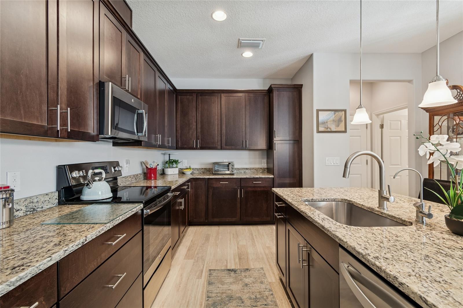 Immaculate, original owner townhome built in 2016 located in the desirable Harbor Springs of Palm Harbor-an intimate community of just 32 residences. This beautifully maintained 3-bedroom, 2.5-bath, 2-car garage home is loated near the Pinellas trail, just minutes from downtown Palm Harbor, Restaurants, breweries, shopping, and entertainment. Thoughtfully designed throughout, the kitchen offers additional cabinetry and counter space, including a lazy susan, granite countertops, and stainless steel appliances, with the dishwasher and refrigerator replaced in 2023. The open-concept main living area features high ceilings, laminate flooring installed in 2019, and plantation shutters throughout the entire home, creating a bright and polished living space. Enjoy outdoor living on the paver patio overlooking a peaceful preserve area. The spacious primary suite includes a walk-in closet and a beautifully renovated en-suite bath (2021) featuring marble flooring, marble shower, seamless glass enclosure, and dual sinks. Two additional bedrooms provide flexibility for guests or home office space. Roof (2016), AC (2023), Water heater (2016), Whole-house water filtration and softener system with reverse osmosis was installed 2024 ($10,000 value). The $518/ month HOA fee covers cable, internet, water, sewer, exterior and lawn maintenance The exterior of the homes will be freshly painted this year. Residents also enjoy access to the sparkling community pool area. This community has never flooded and current owner has a flood policy that is transferable.Close proximity to Dunedin, Honeymoon Island, Clearwater beach, and about 40 minutes to Tampa International Airport. This move-in ready townhome is exceptionally maintained and a truly must-see opportunity in a prime Palm Harbor location.