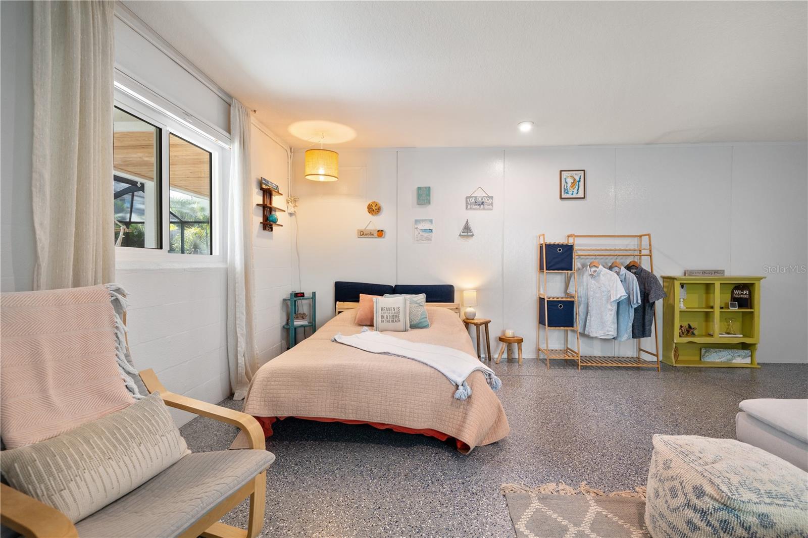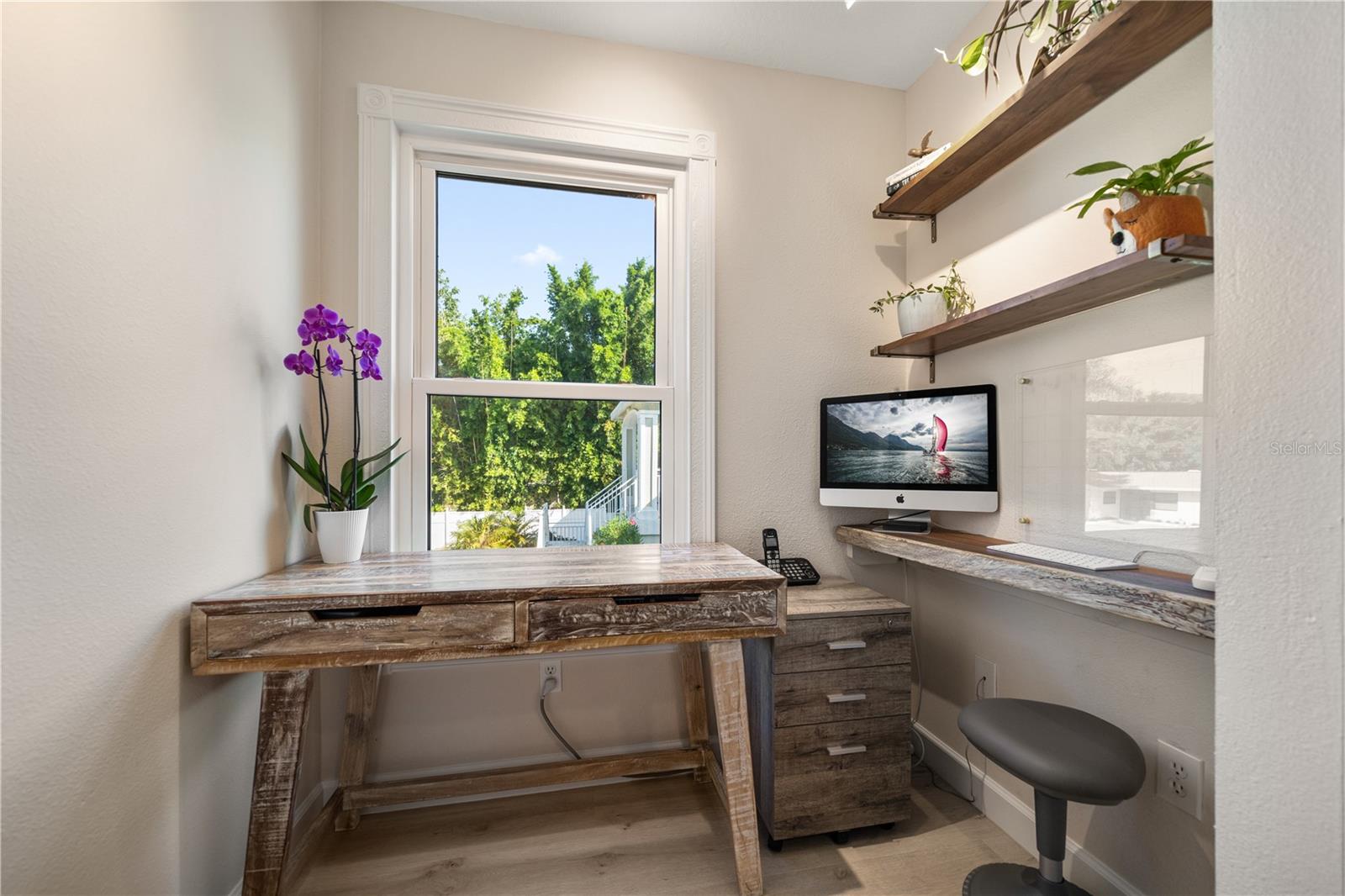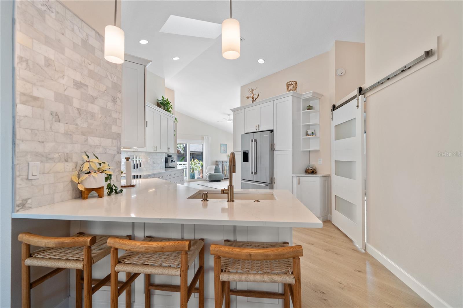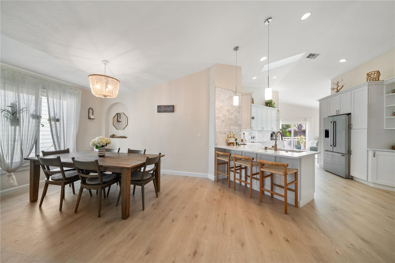 Looking for a slice of paradise? This STUNNING Key West styled home is calling your name! Nestled in the highly desirable Indian Bluff Island neighborhood of Palm Harbor, Florida, this home has four bedrooms and two bathrooms upstairs, and a 400 square foot air-conditioned room and en-suite bathroom downstairs. The downstairs flex space is simply incredible- with epoxy floors and air-conditioned parking for FOUR vehicles, laundry, bathroom, and a HUGE room that could be an office, home gym, or yoga studio, this space is awesome! Upstairs, the breathtaking interior has been fully updated within the past two years, with flexible living spaces and a bright and airy floor plan, thanks to tons of natural light and recently installed hurricane rated windows, doors and skylights throughout. New luxury vinyl flooring and paint as well. In the kitchen, you’ll find solid wood cabinets with dovetail drawers, quartz countertops, and a suite of Bosch and Berazzoni appliances. An Aquasana whole-house water filtration system, renovated wood burning fireplace, completely rebuilt back deck to enjoy the stunning big sky sunrises and 30 amp RV outlet are a few amazing touches that will enhance your enjoyment of this home. And with a metal roof installed in 2019, you can rest easy knowing your home is built to last. Enjoy the Florida sunshine in your own backyard escape, with a modern saltwater pool, beautiful travertine deck, and screen enclosure installed in 2023. Or take a short stroll to the water to watch the dolphins play. Additionally, the Pinellas Trail is a third of a mile away, leading you to Wall Springs Park less than a mile from your door, and the round trip walk to Crystal Beach is about three miles. Imagine sipping sweet tea on the back porch in the morning, enjoying the trail or taking a bike ride in the afternoon, and then watching the sunset from the front porch at night, this home offers the ultimate Florida lifestyle.