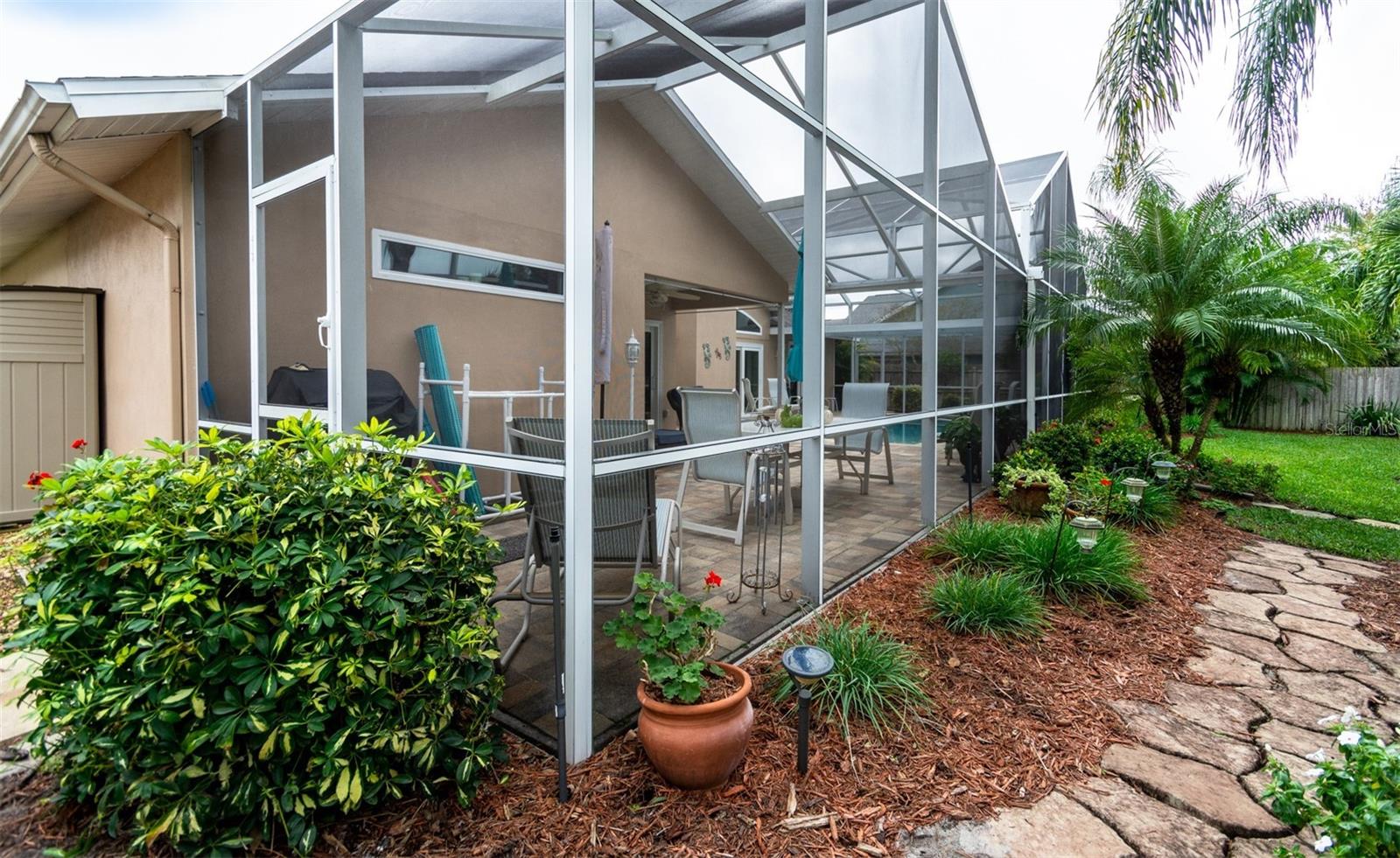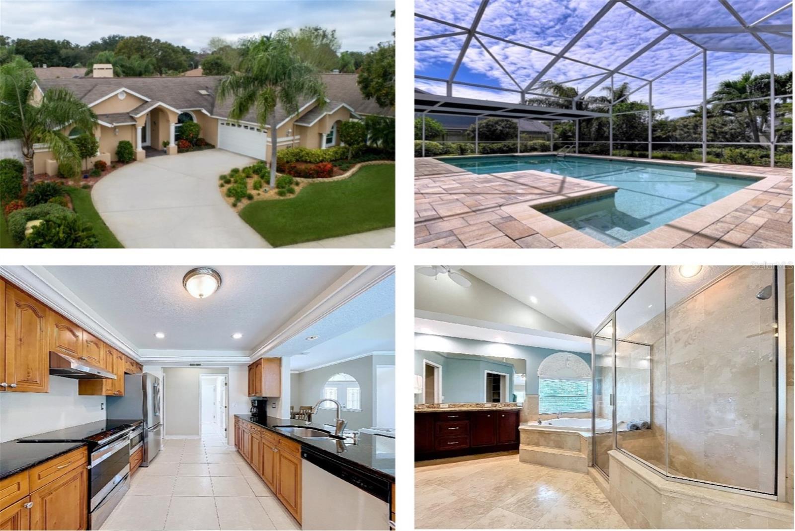 Walk, Jog or Bike to Honeymoon Beach/Caladesi Island and Pinellas Trails! Beautifully updated 3 Bedroom + Office - Pool Home nestled on a lushly landscaped lot in desirable Waterford Crossing! Open concept floor plan with soaring ceilings. Beautiful living room with fireplace and sliding glass doors leading to a large screened-in brick pavered lanai and a gorgeous saltwater/heated pool that's overlooking a newly landscaped tropical - oasis fenced-in backyard. Inviting formal dining room with arched window. Updated kitchen with breakfast bar, stainless steel appliances, wood cabinetry with convenient pull-outs and beautiful granite countertops, seamlessly opens to the living room and to the breakfast area. Large primary suite offers an organized walk-in closet and sliding glass doors leading to the lanai and pool, Luxurious updated primary bath with a large vanity, granite counters, large Jetted tub and separate shower. 2Nd Bath also beautifully updated with granite counters. This home offers a versatile layout to fit your lifestyle; The 3rd bedroom is currently open to the office creating spacious work from home or creative studio that can easily be closed off for full privacy, in addition there is a separate den/office with sliding doors leading to the lanai and pool, can be converted as a 4th Bedroom/Guest suite. Nice size laundry room with skylight. Newer flooring (No Carpet) Many updates throughout! New Hurricane rated front doors in 2021. New Hurricane rated windows and sliding glass doors in 2021. New Hurricane rated garage door in 2021. Newer pool sweeper and saltwater pool generator in 2021, Brick pavered lanai, Pool Enclosure and Pebble Tech refinished in 2015 (High Elevation! No Flood Insurance Required! Beautiful community park and playground. Great location, Close to schools, just minutes to Dunedin causeway, marinas, golf courses, downtown Dunedin, and downtown Palm Harbor! 20-25 minutes to Clearwater Beach. 25/30 Minutes to St Pete and Tampa Airports!