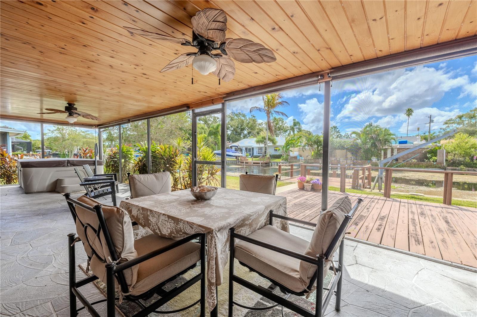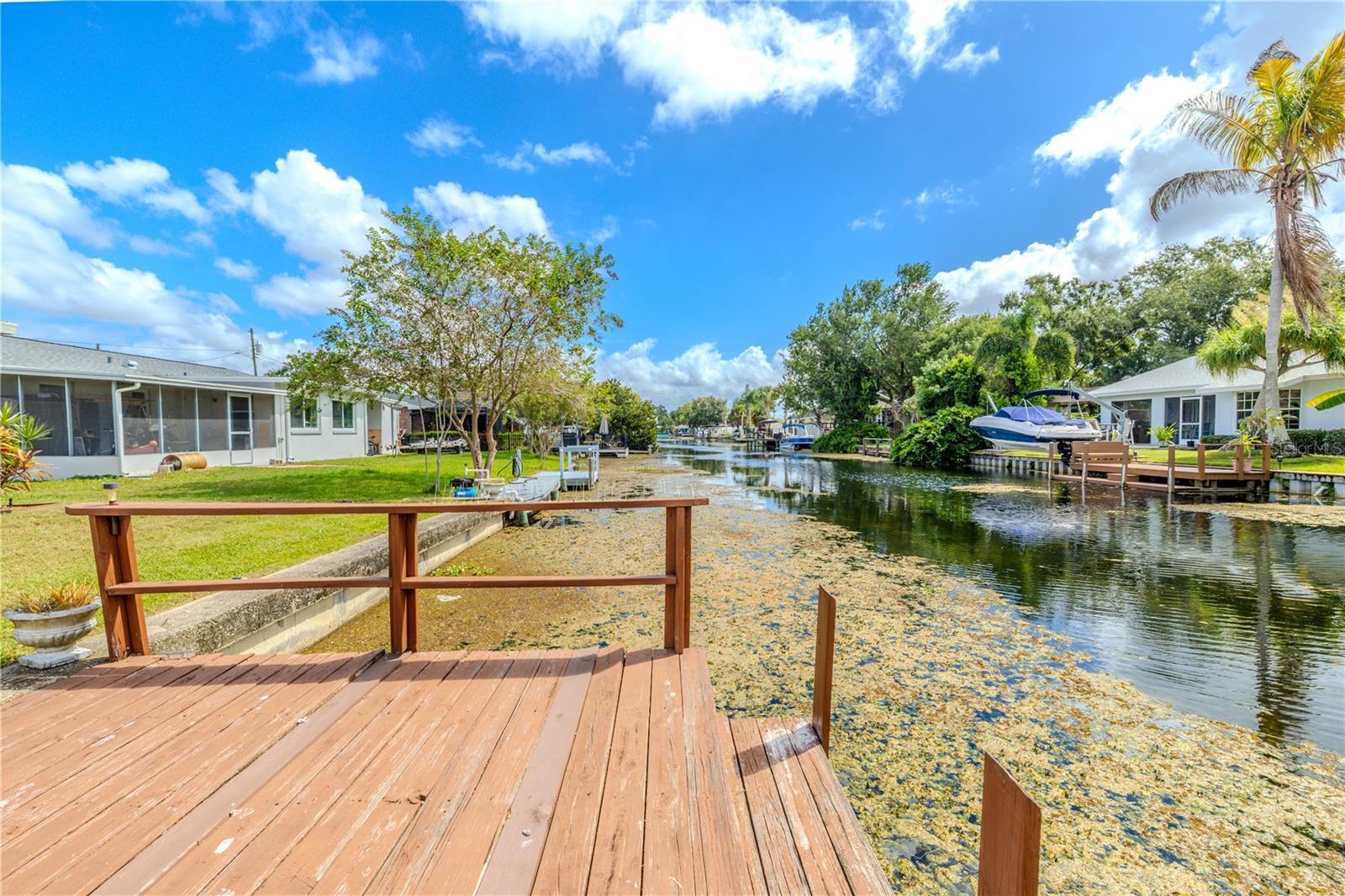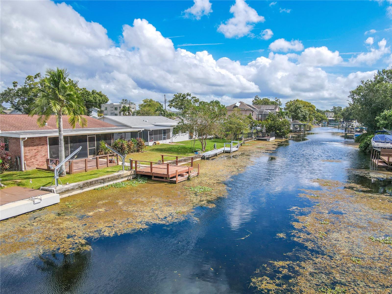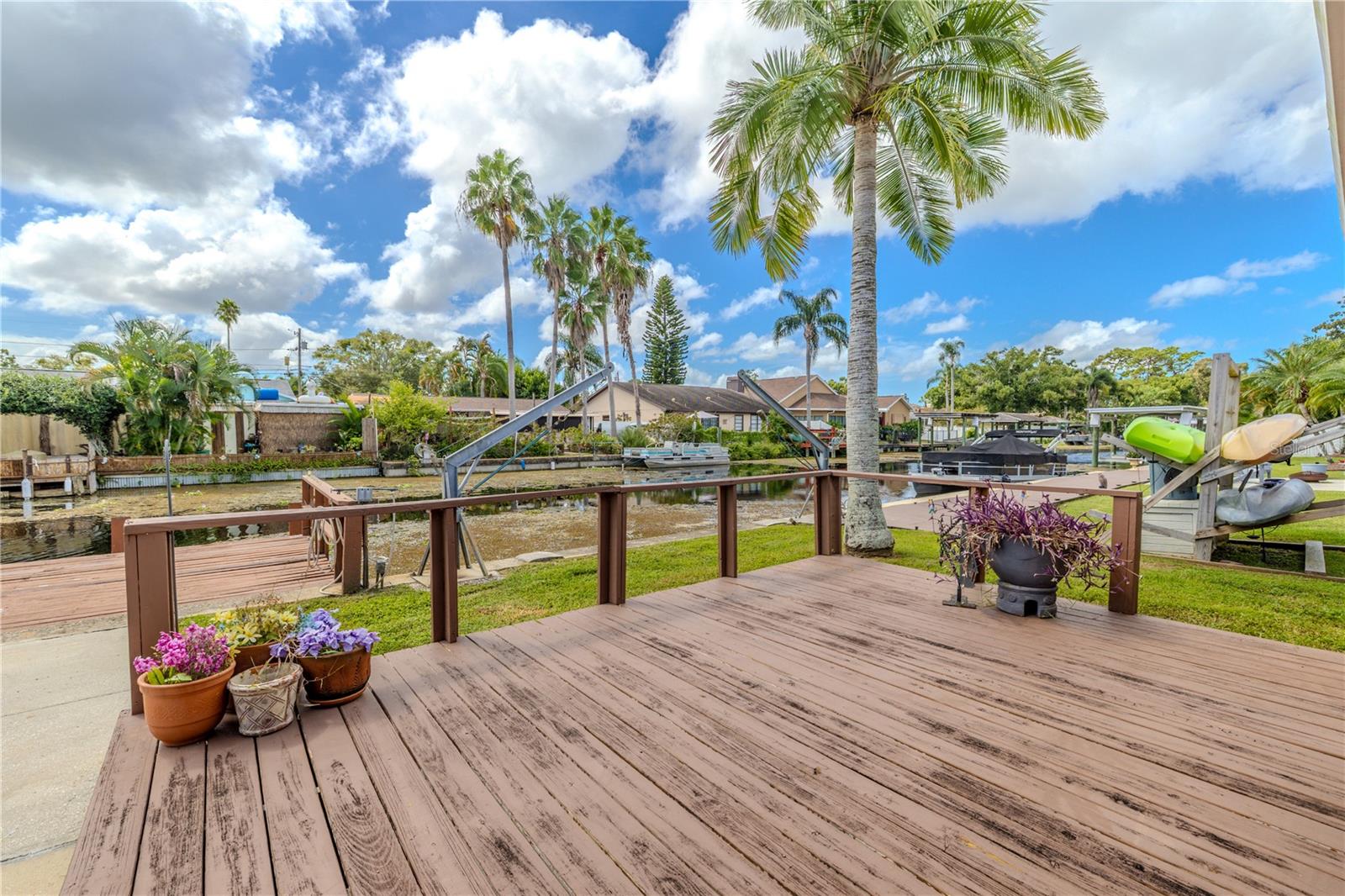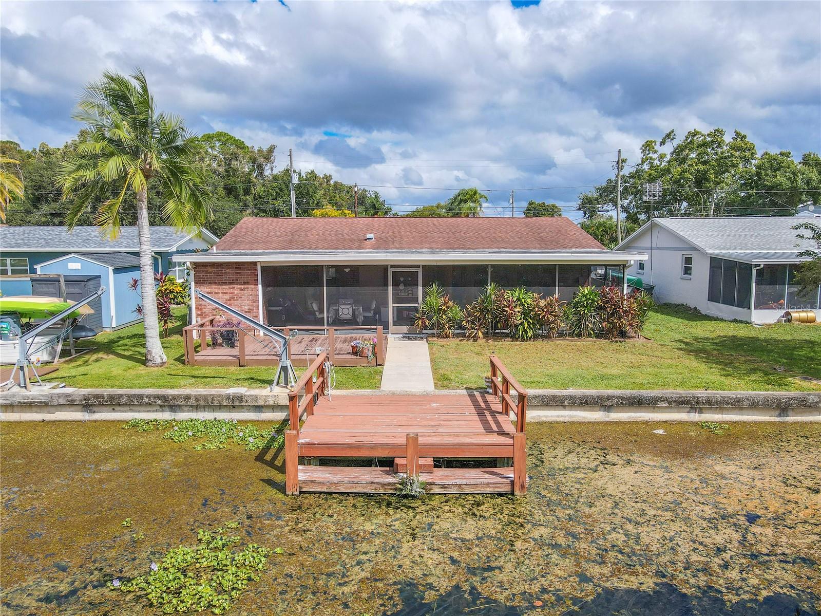 WATERFRONT DREAM WITH DOCK AND DAVITS! Direct access to Lake Tarpon! Welcome to this beautifully maintained 3-bedroom, 2-bath waterfront home in the heart of Palm Harbor, where timeless character and everyday comfort come together. Perfectly positioned along a canal with access to Lake Tarpon, this property offers a lifestyle that blends relaxed Florida living with a convenient central location. The home makes a lasting impression from the moment you arrive with its classic brick exterior, manicured lawn, and inviting landscaping. A wide driveway leads to a two-car garage, while the covered front entry adds a welcoming touch. Inside, natural light fills the open floor plan through a wall of wood-framed glass doors spanning the back of the home. These doors create a seamless connection to the outdoor living spaces and capture beautiful views of the water beyond. The living, dining, and kitchen areas flow together effortlessly, offering an inviting layout for both entertaining and everyday living. The kitchen features stainless steel appliances, generous cabinet storage, and a breakfast bar overlooking the main living area. The adjoining dining area is perfectly positioned to enjoy the water view, while the open design makes hosting easy. Tile flooring extends throughout the entire home, giving every room a clean, cohesive look that is both stylish and practical. The primary suite is privately located on one side of the home and includes a walk-in closet, an ensuite bath, and direct access to the screened patio. The primary bathroom also connects to the patio, bringing in soft natural light and enhancing the home’s easy indoor-outdoor flow. Two additional bedrooms and a full guest bath are located on the opposite side of the home, providing versatility for family, guests, or a home office. Outdoor living takes center stage with an expansive screened lanai featuring a wood-paneled ceiling, ceiling fans, and plenty of space for dining or relaxing. Beyond the screened area, the open deck overlooks the canal and leads to a private dock, perfect for enjoying morning coffee, fishing, or simply taking in the water view. Additional features include a water heater replaced less than one year ago, washer and dryer located in the garage, and a spacious two-car garage with ample storage and workspace. Located in a prime Palm Harbor area, this home offers convenient access to top-rated schools, parks, restaurants, and shopping, with major roadways including U.S. 19, Tampa Road, and Curlew Road just minutes away. Gulf beaches, marinas, and outdoor recreation are within easy reach, making it simple to enjoy all that coastal living has to bring. Blending open living spaces, full tile flooring, and canal access to Lake Tarpon, this home captures the essence of Florida waterfront living. From the wall of wood-framed doors to the screened patio and private dock, every detail invites you to slow down, unwind, and enjoy the water. Schedule your private showing and discover how relaxing everyday life can feel here in Palm Harbor.