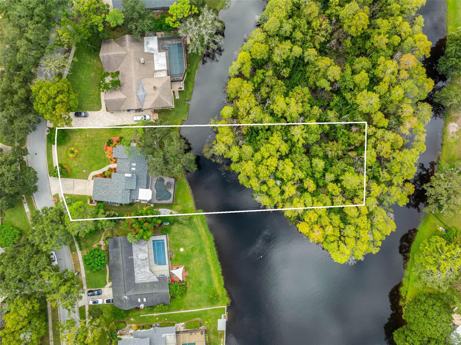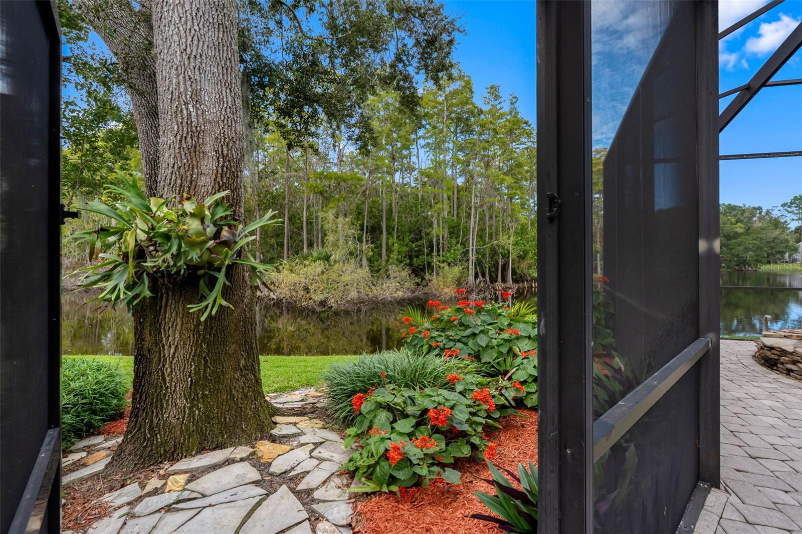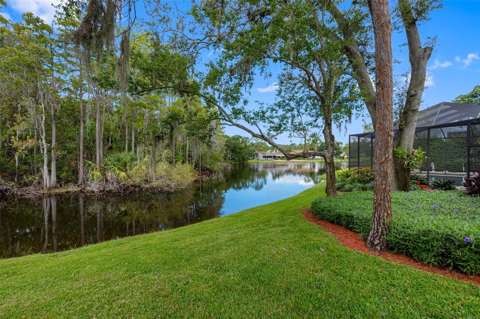 GET YOUR OWN ISLAND! Exceptional pond-front home in Autumn Woods, Palm Harbor with tranquil water and nature views. This custom-built residence sits on over 3/4 of an acre and requires no flood insurance—a rare find. MAKE THIS YOUR OWN! Recent updates include a brand-new roof, new cedar siding, and fresh exterior paint. Natural gas features include a Generac whole-home generator, gas range, water heater, and dryer. The home offers 3 bedrooms, 2.5 baths, and an oversized 2-car garage. The bright interior features high and cathedral ceilings, skylights, wood floors, and a wood-burning fireplace. The kitchen includes granite countertops, vaulted ceilings, gas range, and a breakfast area with pond views. The first-floor primary suite features a walk-in closet and five-piece bath. Two additional bedrooms and full bath are upstairs. Enjoy the screened lanai overlooking the pool and private pond. Autumn Woods offers tennis, pickleball, basketball, dog park, playground, and top-rated schools including Palm Harbor University High. Located near Honeymoon & Caladesi Islands, Pinellas Trail, shopping, dining, and beaches.