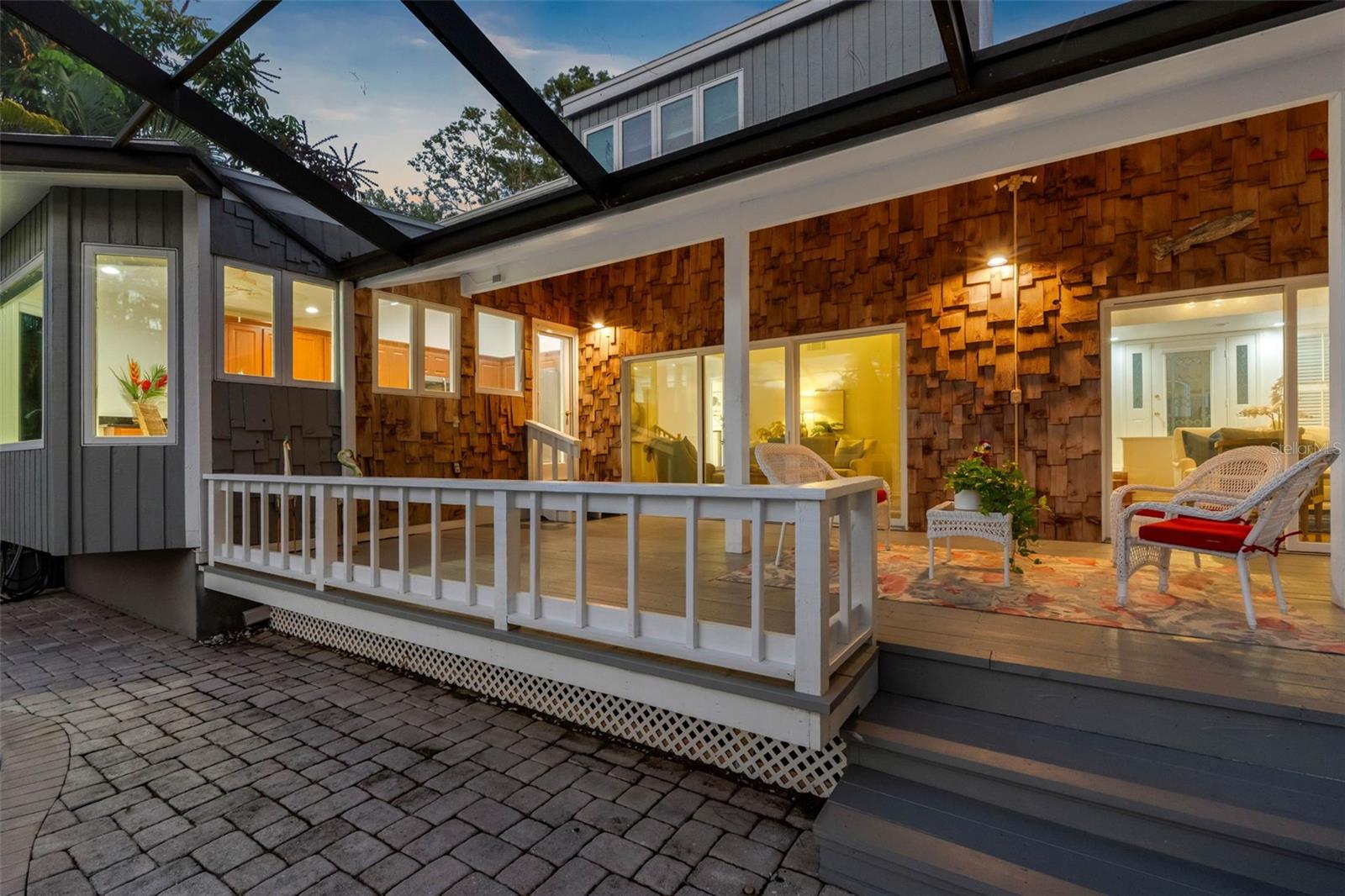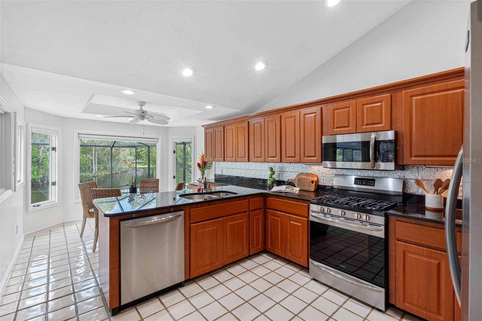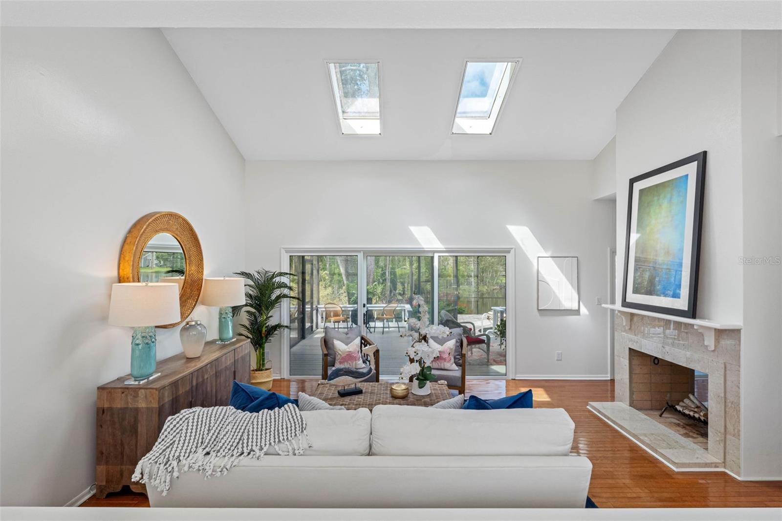 GET YOUR OWN ISLAND! Exceptional pond-front home in Autumn Woods, Palm Harbor with tranquil water and nature views. This custom-built residence sits on over 3/4 of an acre and requires no flood insurance—a rare find. MAKE THIS YOUR OWN! Recent updates include a brand-new roof, new cedar siding, and fresh exterior paint. Natural gas features include a Generac whole-home generator, gas range, water heater, and dryer. The home offers 3 bedrooms, 2.5 baths, and an oversized 2-car garage. The bright interior features high and cathedral ceilings, skylights, wood floors, and a wood-burning fireplace. The kitchen includes granite countertops, vaulted ceilings, gas range, and a breakfast area with pond views. The first-floor primary suite features a walk-in closet and five-piece bath. Two additional bedrooms and full bath are upstairs. Enjoy the screened lanai overlooking the pool and private pond. Autumn Woods offers tennis, pickleball, basketball, dog park, playground, and top-rated schools including Palm Harbor University High. Located near Honeymoon & Caladesi Islands, Pinellas Trail, shopping, dining, and beaches.