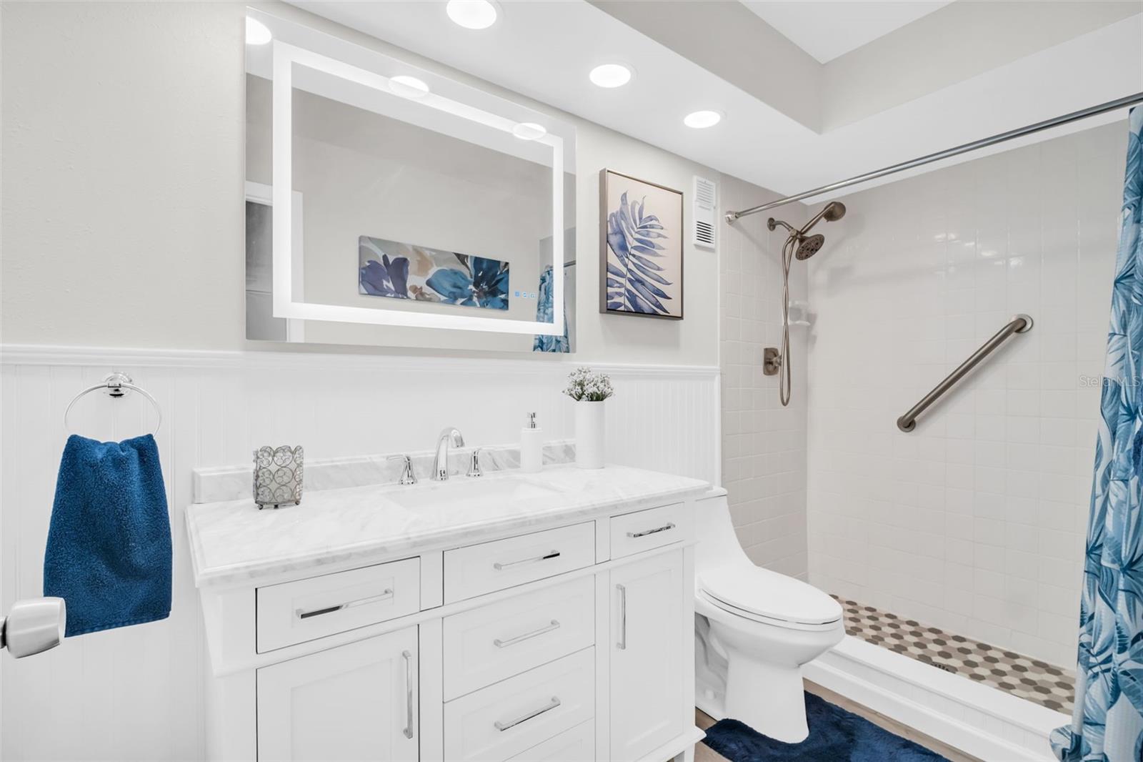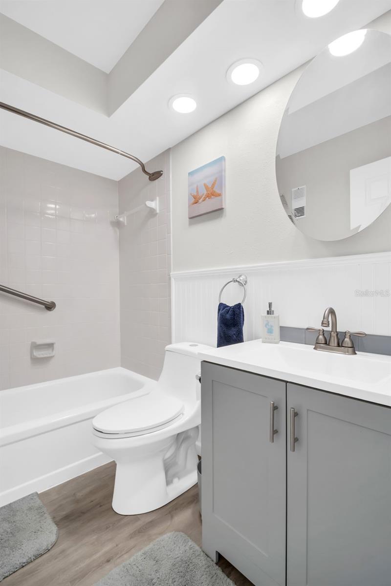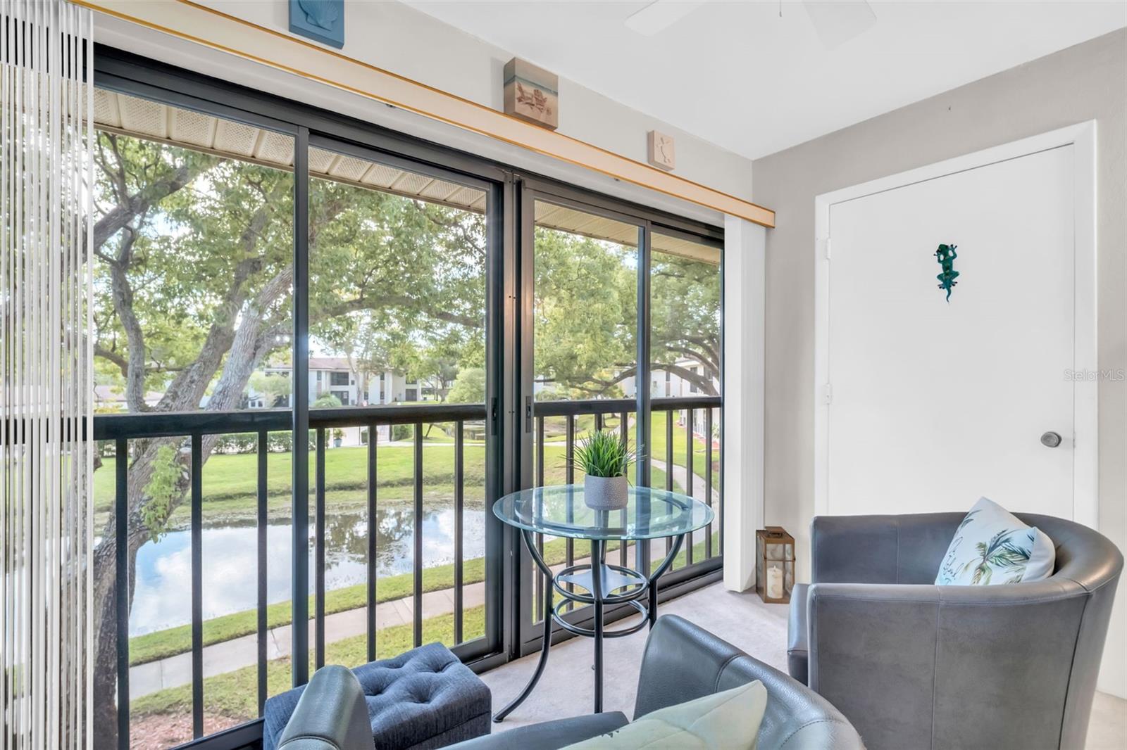 GORGEOUS two bed/two bath condo in the desirable Landings Community of HIGHLAND LAKES! This totally renovated second floor condo has beautiful views overlooking a serene pond. Pride of ownership abounds! Keyless entry. New screened storm door. Fabulous renovated kitchen with white shaker cabinets, Corian countertops, tile backsplash, undermount sink and newer stainless appliances. Updated lighting, doors and ceiling fans. The spacious great room (living/dining room) has crown molding and an attractive decorative wall that leads to a cozy screened lanai with extra storage and a lovely peaceful view. The large primary suite has sliders leading to the lanai, a walk-in closet and an impressively renovated en suite bath with walk-in shower. The secondary bedroom is sunny and bright. Common renovated bath has a tub and shower. Convenient laundry closet with newer Maytag washer and dryer and tiled floor. Entire condo painted one year ago in a calming neutral palette. Electrical panel 2021. No neighbors above! Community pool and covered carport are steps away from condo. The Landings community of HIGHLAND LAKES is Palm Harbor’s PREMIER 55+ golf and lakefront community offering OUTSTANDING amenities including FREE UNLIMITED GREEN FEES on three private nine-hole executive courses, putting green and driving cages. FREE RV and BOAT storage. The main clubhouse is the hub for entertainment and social events including every club imaginable! Clubhouse offers a heated and cooled 0lympic-sized pool with heated whirlpool spa, fitness, pickleball, four tennis courts with night lighting, eight shuffleboard courts, bocce ball court, arts, interest and hobby programs. The Lake Tarpon Lodge offers a second heated pool, picnic and party facilities, fishing pier, two community pontoon touring boats and a boat dock. Pontoon boats ferry residents to a local waterfront restaurant. HIGHLAND LAKES homes are HIGH and DRY…ZONE X…NO FLOOD INSURANCE…and are located in the most convenient location in Tampa Bay…within minutes of the best Gulf beaches, two international airports, extensive retail options and wonderful restaurants, professional sporting events, rich cultural resources and excellent medical services are all nearby. Nothing to do except move in and enjoy this lovely completely updated condo! HIGHLAND LAKES is CAREFREE Florida living at its FINEST!