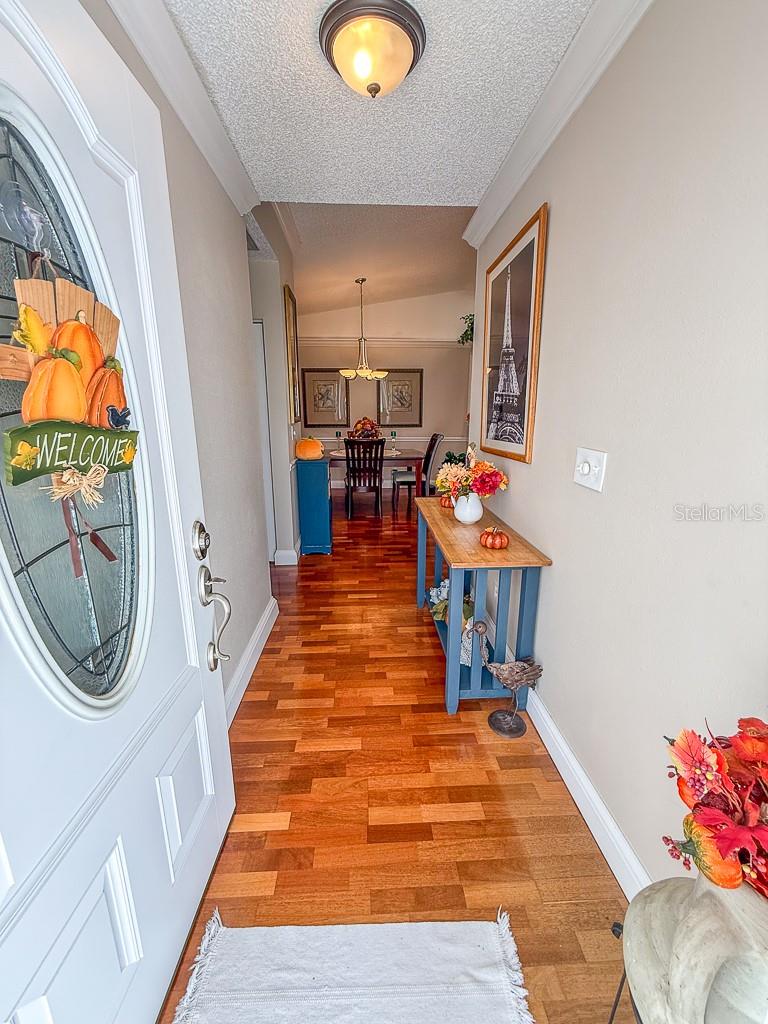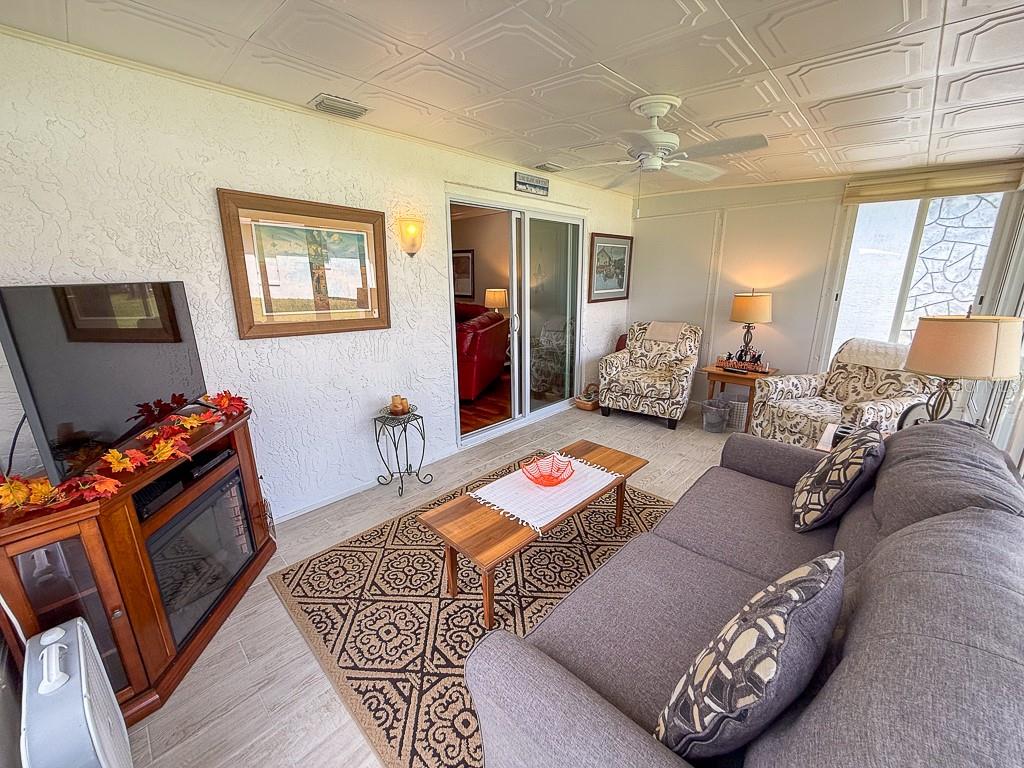 2 Bedroom, 2 Bath, 2 Car Garage End-Unit Villa in 55+ Highland Lakes Community! Welcome to this charming and beautifully updated villa offering exceptional curb appeal, modern updates, and a thoughtful blend of comfort and style. This bright, open home features vaulted ceilings, skylights, and a lockable storm door that brings in natural light while adding security. Updates include the electrical panel, roof and solar tube skylights (2014), water heater, water softener, windows and doors, lanai roof 2019, garage door opener, washer, dryer, and more! The stunning updated kitchen is a showstopper with solid wood cabinetry featuring 42” uppers, elegant glass-front accents (with optional wood inserts), a built-in wine rack, Silestone countertops, stainless steel appliances, undermount sink with high-mount faucet, can lighting, a skytube skylight, and a pass-through window to the dining area—perfect for entertaining! The spacious living and dining area offers rich hardwood cherry floors, crown molding with designer lighting, plant shelves, and custom architectural details that add warmth and character. The primary bedroom is generously sized, featuring hardwood floors, a walk-in closet, and an updated ensuite bath with a solid wood vanity topped with granite, modern lighting, framed mirror, newer toilet, and a glass-enclosed shower with elegant tile and decorative accents. The guest bedroom offers ample space with dual closets, one currently used as a convenient home office area, while the guest bath includes a solid wood vanity with granite counter, designer mirror, modern lighting, and crown molding. Enjoy year-round living in the glass-enclosed Florida room, expanding your space and opening to a rear pavered patio ideal for outdoor cooking, dining, or relaxing in privacy. Additional features include an indoor laundry closet with cabinetry, a renovated garage with pull-down attic access, and abundant storage throughout. Located in the desirable Highland Lakes 55+ community, this home welcomes one pet and offers low-maintenance living with fees covering lawn care, sprinklers, and irrigation water. Basic cable and internet (with two boxes) are available for just $16! Highland Lakes includes the following: Unlimited free golf on our three 9-hole executive golf courses named red, white, and blue. Outdoor clubhouse activities include tennis, pickleball, Bocce, shuffleboard courts, olympic size geothermal heated pool, and spa. The clubhouse has a library, kitchen, gathering room, cards and games, billiards, arts and crafts including woodworking, ceramics, painting, stained glass working, and more. Social activities include almost 100 clubs or groups, activities committee, casual parties, large dinner/dances, shows, and Saturday breakfasts. The rustic lakeside Lodge has a large multi-purpose room with beautiful hardwood floors, stone fireplace, a service kitchen, a panoramic view of Lake Tarpon, geothermal-heated pool and pool deck, a nearby certified butterfly garden, patio, picnic tables and grills as well as a horseshoe pitching pit. RV and boat parking in the RV/Boat Lot is included in the fees. Lake Tarpon is accessible via the boat ramp and there are two pontoon boats available for resident use/activities. This is a great Palm Harbor location served by top schools and is conveniently located near Tampa, St. Petersburg, Tampa International Airport, sporting events, beaches, medical centers, theaters, shopping, dining, and more!