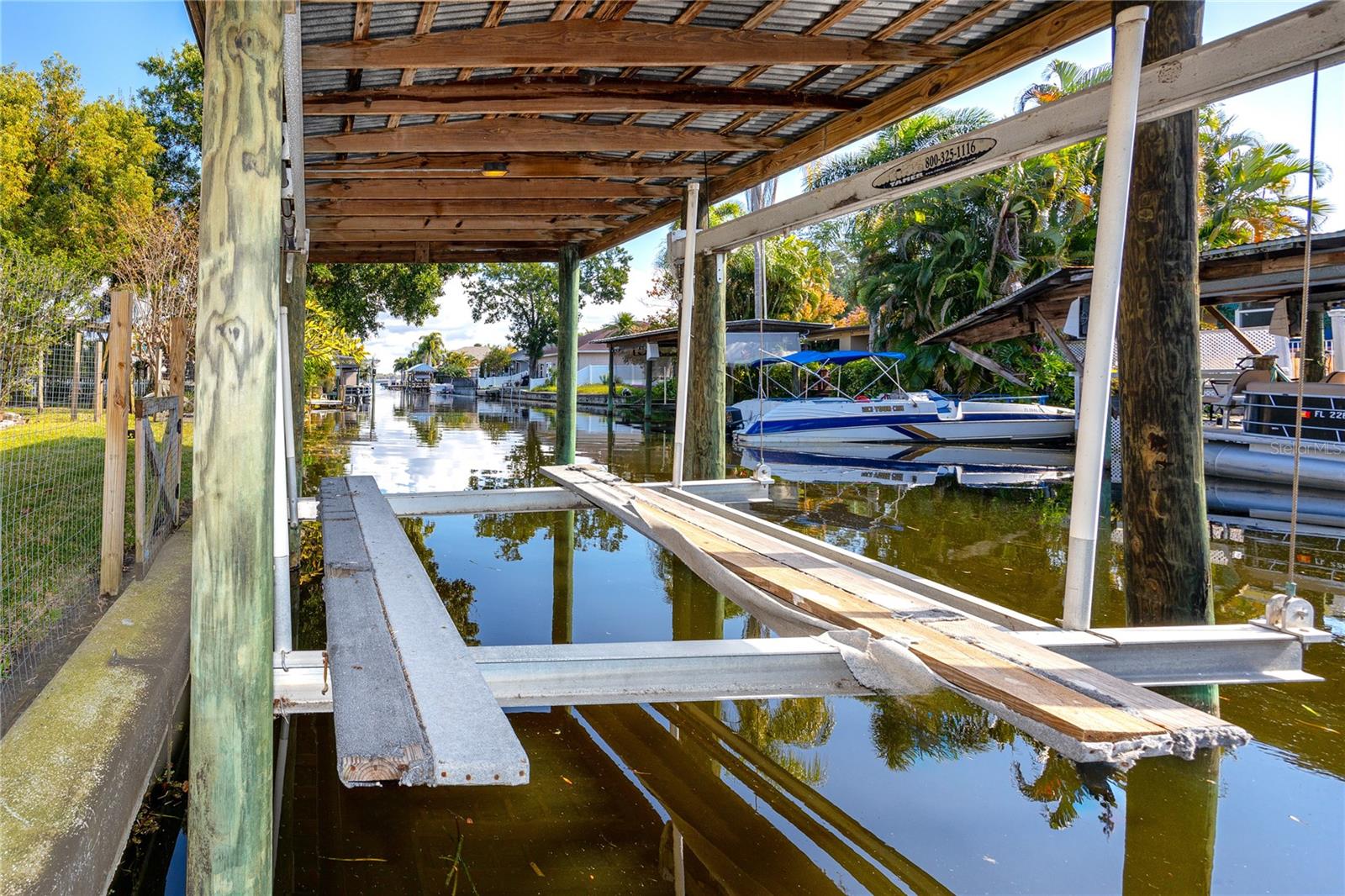 Enchanting, one-of-a-kind, custom home with private boat dock on a 1/4 acre double-lot! In 45 years of ownership this property has never flooded thanks to Lake Tarpon's dam and the Outfall Canal which regulate water levels. There's charm around every corner of this delightful home and you will love all the features! 4 bedrooms, 3 ½ baths, dual master suites, one with an office and one with a rooftop balcony, custom hardwood flooring, rich wood finishes, large formal dining room big enough for Holiday dinners with the whole family, gas burning fireplace, custom stained glass, upgraded hurricane windows, recessed lighting, plenty of closet space, an extra spacious 2-car garage with high ceilings and custom storage, and more. Step outside and enjoy multiple outdoor living areas, rose garden, patio swing, 120 feet of canal frontage, your own private, covered, boat dock with electronic lift, an irrigation system with free water from the lake, room for a swimming pool, and a spacious paver driveway that provides plenty of extra parking area for your visiting friends and family. Live the boating lifestyle! Sunset cruises, family ski outings or morning bass fishing on beautiful, freshwater Lake Tarpon are just outside your back door! This is the charming, family home you've been dreaming of! This Palm Harbor location is 19 min. to the beach, 35 min. to the airport and there's plenty of nearby shopping, restaurants and services. It is a must-see property and is priced to sell so don't delay!