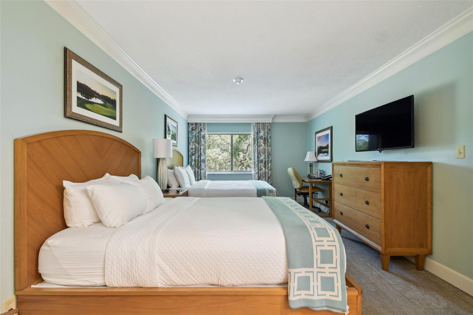 Two Bedroom/Two Bath “C” Unit: This beautiful, newly renovated 2 BR/2 BA condo is just waiting for you to call your home away from home! NEWLY RENOVATED to the NEW 2019 Rental Pool standards. Everything was updated! Neutral décor and crown molding brings comfort to all who enter. The large open kitchen has quartz counters and stainless steel appliances. Bathrooms are both done with granite vanities and guest bath has tiled stall shower. Master bath has a tub/shower combination and a separate vanity area. Guest room with Queen pillow-top bed and Master Bedroom with 2 Queen pillow-top beds have room for all. Need more space? There is a queen size sleeper sofa in the living room. Enjoy relaxing on the 2nd floor balcony overlooking the North Course after a day of fun at Innisbrook. The Peacock Pool is just a short walk from the entrance of the lodge. Several levels of club memberships are available for purchase to participate in the Innisbrook amenities. Innisbrook condo owners have the option to participate in the Resort’s optional Rental Pool program (condos in lodges 1-24 only). Situated on 800 wooded acres of rolling hills and 70 acres of lakes, Innisbrook, A Salamander Golf and Spa Resort is located just 25 minutes from Tampa International Airport. Innisbrook features sixty-three holes of golf, including the PGA’s Valspar Championship Copperhead course, 280spacious guest suites and rooms, 5 restaurants and 3 bars including the FAIRWAYS COFFEE AND WINE BAR featuring STARBUCKS coffee, 10 Har-Tru TENNIS courts, 4 Hard-court PICKLEBALL Courts, 3 Indoor RACQUETBALL courts, a full-service Salamander SPA with 12 treatment rooms and Fitness Center, 6 Swimming POOL Complexes, and 2 Conference halls.