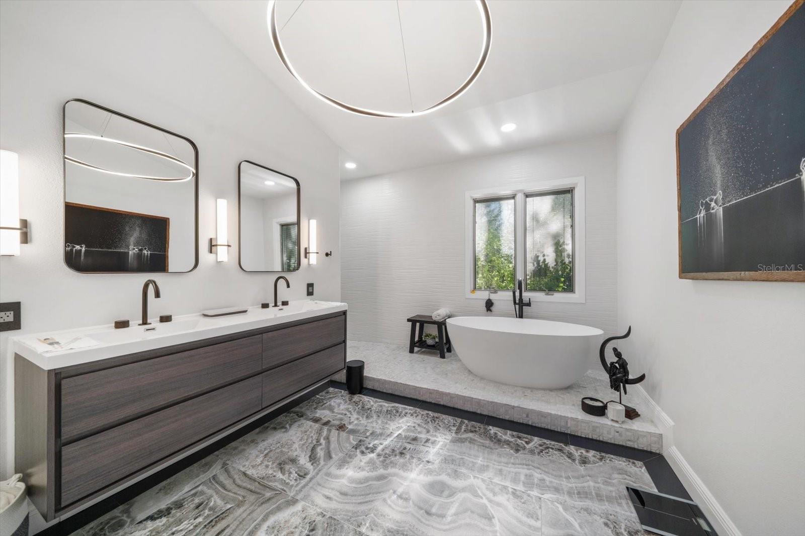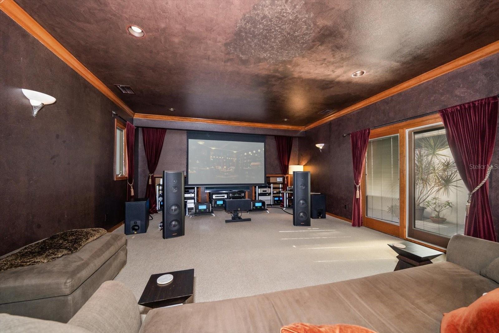 Welcome to a true masterpiece in the coveted Country Woods subdivision—a home so meticulously cared for and exquisitely updated that it feels like stepping into a private luxury retreat. Set on two pristine lots, this once model, now residence radiates curb appeal and pride of ownership from the moment you arrive, framed by lush landscaping and impressive Brazilian mahogany double front doors with elegant leaded glass. Inside, volume ceilings and abundant natural light set an inviting tone, guiding you into the heart of the home: a breathtaking chef’s kitchen outfitted with top-of-the-line appliances including Wolf, Sub-Zero, and a Fisher & Paykel double dishwasher. Brazilian granite counters, custom cabinetry, and a reverse osmosis water filtration system elevate both beauty and functionality. Perfectly positioned adjacent to the formal dining room and open to the expansive family room—with vaulted ceilings, skylights, and a cozy fireplace—this layout is designed for effortless entertaining. The desirable split bedroom plan features two primary suites, offering ultimate flexibility. One, part of an impressive 2000 addition, is a luxurious spa-inspired retreat complete with a tranquil reading nook, custom walk-in closets, and a dreamy ensuite boasting a soaking tub, double vanity, and walk-in shower. The addition also includes a state-of-the-art media/theatre room equipped with double sheetrock walls, mahogany doors, and a premium 4K/8K projection setup—perfect for cinematic nights at home. Step outside and experience resort-style living at its finest. Meander along peaceful garden paths, unwind beside the serene koi pond, or gather by the private fire pit on cool evenings. The stunning pool area provides a refreshing escape and an ideal backdrop for unforgettable gatherings. This home is loaded with high-end upgrades including Pella windows and doors, Tesla solar panels with battery backup and a transferable 20-year warranty, a spacious laundry room, and a 3-car garage. All of this is located just minutes from everything Dunedin offers—renowned restaurants, boutique shopping, the Dunedin Causeway, Honeymoon Island State Park, and vibrant coastal charm. This extraordinary home truly has it all—luxury, comfort, craftsmanship, and an unbeatable location. It’s the one you’ve been waiting for.