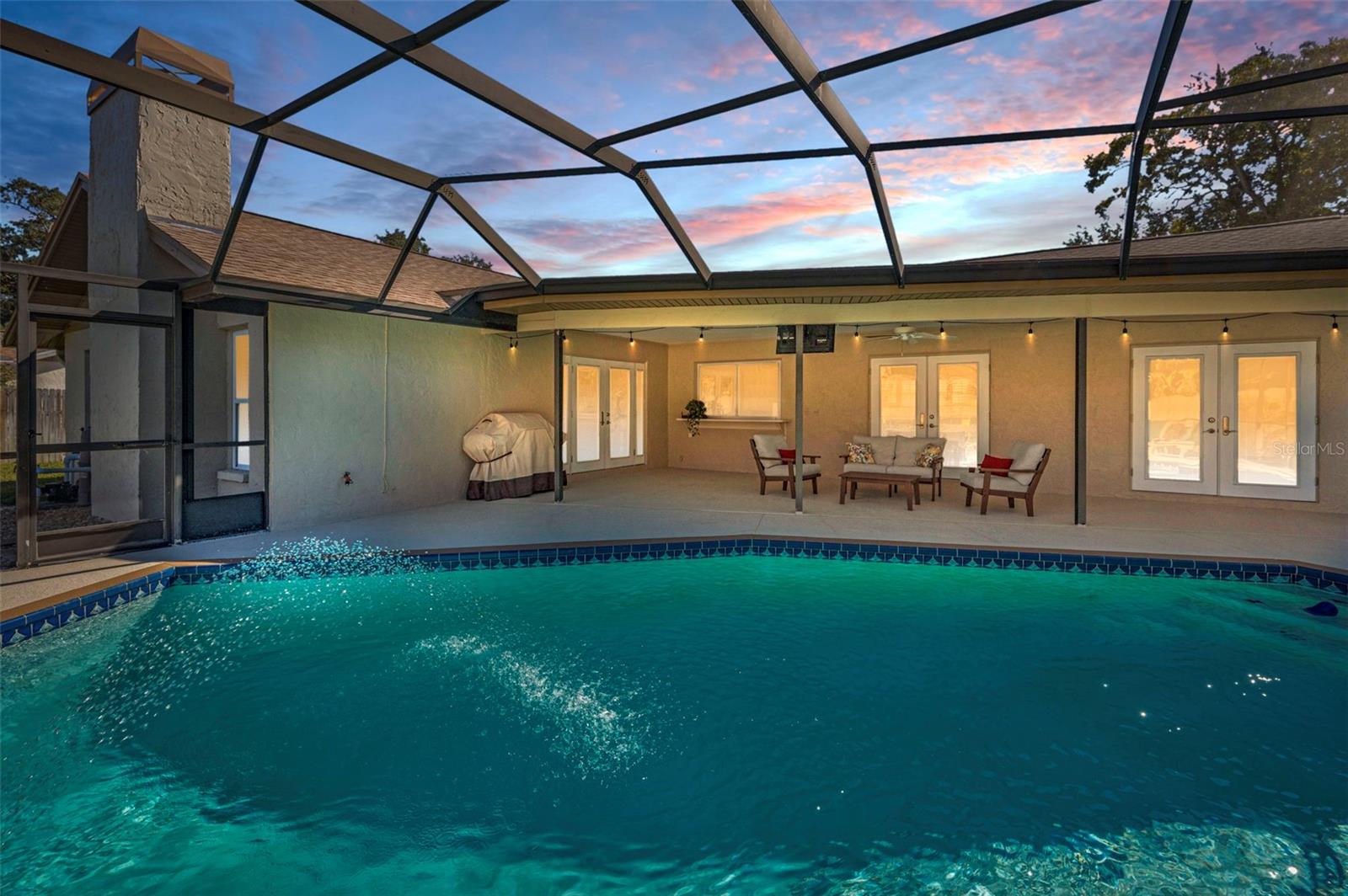 Enjoyed for decades - ready for new owners! Come see this "move-in ready" home in Eniswood, one of Palm Harbor's most desirable neighborhoods. As you enter the leaded glass front doors, you'll notice the pride of ownership: attractive cherry wood flooring, soaring vaulted ceilings in main areas, a freshly-painted neutral interior, and a light and bright open split floor plan. The efficient and functional design creates an easy flow from the living and dining rooms. A large hurricane-protected picture window framed by plantation shutters in the living room allows for plenty of natural light. At the heart of the home is a kitchen featuring granite counters, wood cabinetry for storage, stainless appliances and a pass-through window to the screened lanai. An eat-in area with additional cabinetry makes a great serving area or coffee bar. The adjacent family room has surround sound, vinyl plank flooring and a cozy updated fireplace for chilly evenings. On one side of the home, is the primary bedroom accented by vaulted ceilings, a walk-in closet and an en-suite bathroom. Two good sized bedrooms are on the other side of the home with an updated bathroom; the 3rd bedroom serves as an office. Three sets of french doors lead to the sparkling pool and covered lanai - a perfect oasis for relaxing evenings and entertaining friends and family. The large fenced yard provides space for pets and family activities. This golf-cart friendly neighborhood enjoys HIGHLY-RATED SCHOOLS, including Palm Harbor University High. Among the many recent updates are: interior and exterior paint (2025), NEW ROOF (2024), NEW water heater and breaker box (2025), NEW pool motor, LED lighting and repainted deck (2024-2026), NEW flat roof (2023). Situated near charming downtown Palm Harbor - the Pinellas Trail, gorgeous gulf beaches at Honeymoon and Caladesi Islands, shopping and restaurants are minutes away. A short commute to two international airports and everything Tampa Bay has to offer. Welcome home and enjoy your Florida lifestyle!