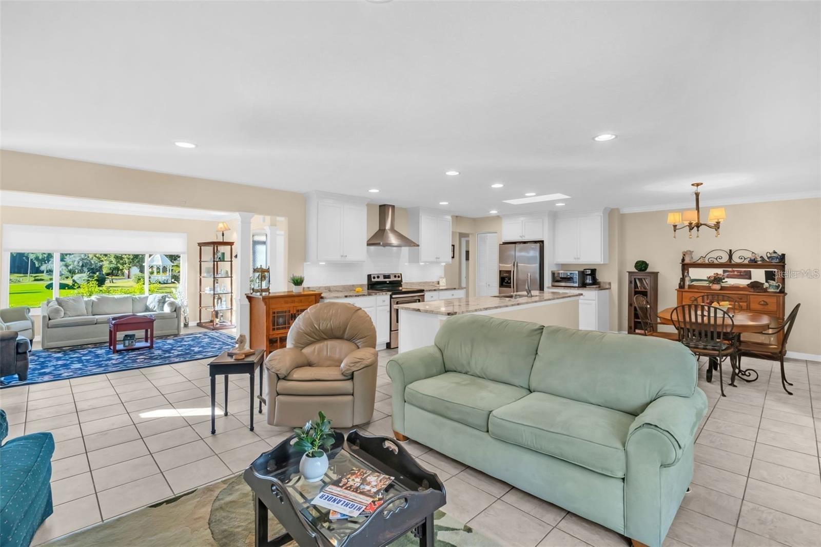 BEST VALUE within Highland Lakes! Unique, beautifully designed home that must be seen in person to fully appreciate! One of the finest homes in this resort-style 55+ community, offering free golf and hundreds of amenities! This beautifully updated, open-concept residence features nearly 1,900 square feet of living space, PLUS a bonus screened lanai not included in the heated square footage. Perfectly situated in Highland Lakes on a peaceful, private cul-de-sac, the home is surrounded by lush greenery with no neighboring homes visible from the front or backyard. Truly unique and full of charm—this is a property that must be seen to be fully appreciated! Large newer windows and skylights flood the home with natural light throughout the day. Quality upgrades shine in the spacious open-concept design that seamlessly blends the living room, family room, Florida room, dining area, and kitchen, creating an ideal setting for entertaining. The chef’s kitchen features a huge island open to the main living space, striking granite countertops, solid wood cabinetry, sleek stainless appliances, recessed lighting, and absolutely no popcorn ceilings, complemented by elegant chair rail detailing throughout. Two bedrooms are thoughtfully separated by a large dressing room, a bathroom, and two closets, while the versatile Florida room can serve as a THIRD BEDROOM, office, or game room and opens to a large private screened porch, also accessible from the primary bedroom. Additional highlights include a convenient inside laundry room with utility tub, a spacious two-car garage with workbench and pull-down stairs to a full attic, a cost-saving deep well, and an expanded patio perfect for grilling. Situated at one of the highest elevations in Pinellas County, this home is not in a flood zone offering peace of mind. No insurance worries here with a NEW electrical panel in 2024, 3.5 TON HVAC in 2016 and with a recently passed four-point inspection available and transferable to the buyer! Located in the highly desirable Highland Lakes active adult community, residents enjoy a vibrant lifestyle with a huge clubhouse offering concerts, shows, dinners, exercise classes, and fairs, plus a lodge on Lake Tarpon with complimentary pontoon rides across its scenic five-mile waters. Amenities include heated pools, pickleball, tennis, bocce, volleyball, yoga, cornhole, and water aerobics, along with creative outlets such as a full woodworking shop, art, ceramics, glass classes, a library with computers, and numerous clubs including chef’s, drama, and photography. The friendly community hosts neighborhood block parties—Block 32 is known as “the friendliest block”—and offers affordable RV and boat storage for only an initial $25 deposit and a minimal $25/YEAR fee. Best of all, residents enjoy three private, pristine championship golf courses with free unlimited play. With a low HOA supported by dedicated volunteers and the option to reserve the Lake Tarpon lodge for private events, this home offers not just a place to live, but an exceptional lifestyle. Schedule your private showing today and start your next chapter!