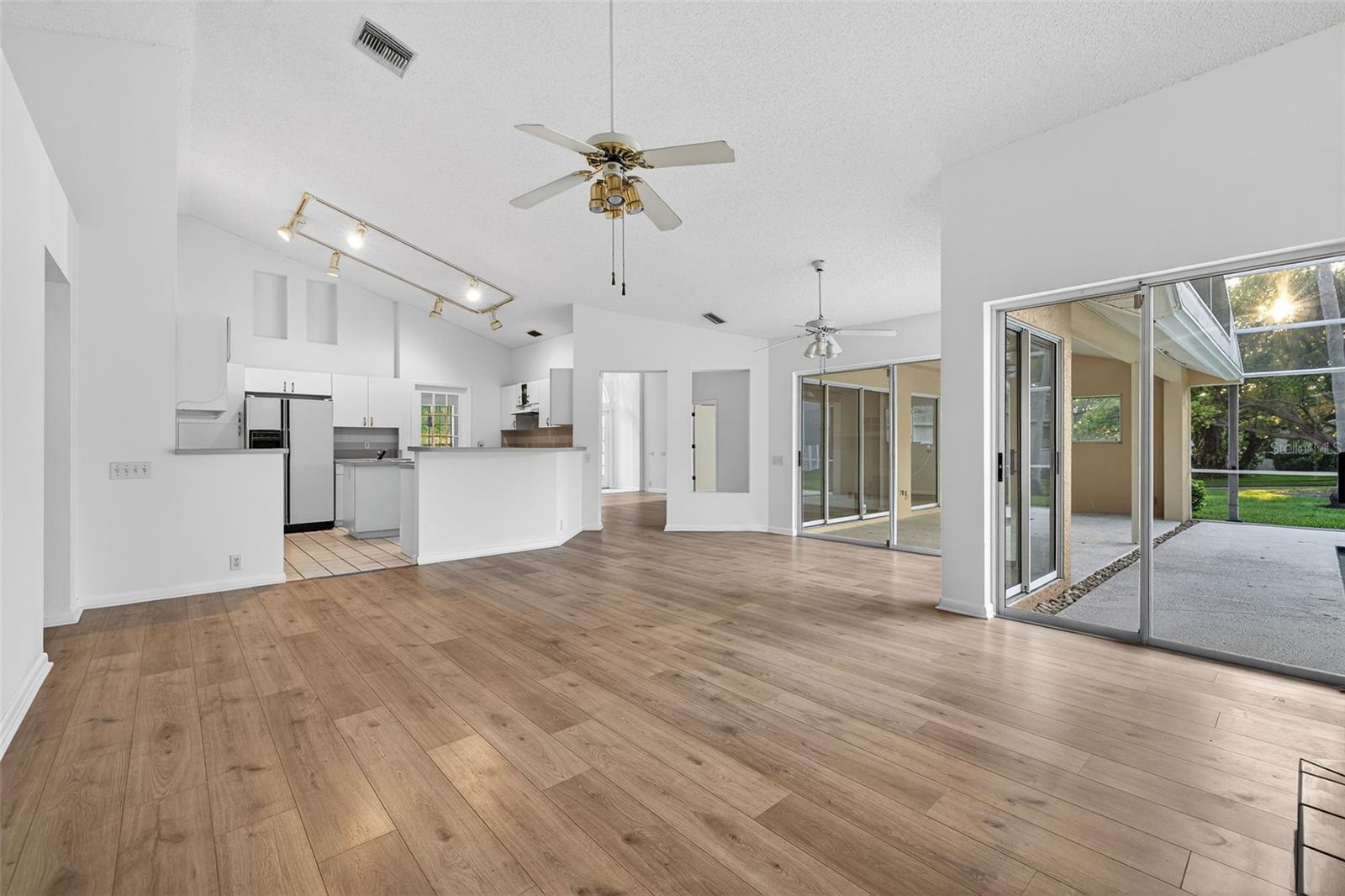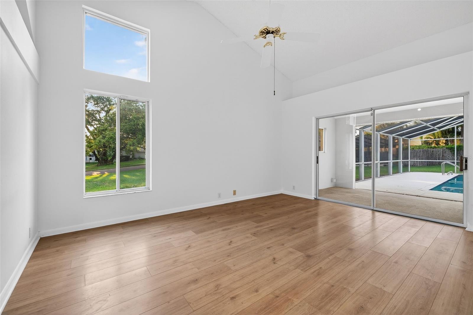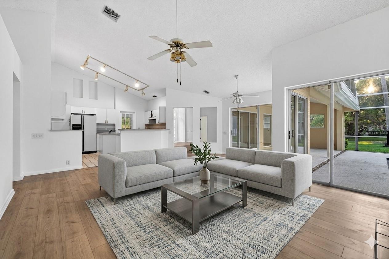One or more photo(s) has been virtually staged. This custom-built Rutenberg pool home is a timeless expression of quality craftsmanship, thoughtful design, and refined Florida living, perfectly positioned on a prime corner lot in a highly rated school district. Boasting 4 bedrooms, 3 baths, and 2,268 square feet of living space. Elevated and located in a non-evacuation zone, the property offers peace of mind while delivering exceptional space, comfort, and lifestyle appeal just minutes from premier shopping, dining, and Florida’s top-rated Gulf beaches. From the moment you arrive, the home’s architectural presence and meticulous upkeep set it apart. Inside, vaulted ceilings and an expansive, flowing layout create an immediate sense of openness and light. The residence is designed for both everyday living and effortless entertaining, featuring distinct yet connected spaces including a formal dining area, spacious living room, inviting family room with fireplace, and a dedicated den or office ideal for remote work or a private retreat. The heart of the home is the open kitchen, thoughtfully arranged with a center island, abundant cabinetry, and generous counter space, all overlooking the main living areas. This layout allows for seamless interaction between the kitchen, family room, and dining spaces, making it perfect for gatherings large and small. Adjacent, a spacious laundry room provides excellent storage and functionality for daily routines. The primary suite is a true sanctuary, offering ample room for relaxation along with a private ensuite bath designed for comfort and privacy. Additional bedrooms are well-sized and thoughtfully placed, including a Jack-and-Jill bathroom that enhances both convenience and functionality. A dedicated pool bath connects directly to the screened lanai, ensuring easy indoor-outdoor living and entertaining. Step outside to enjoy a private backyard oasis featuring a screened-in pool and lanai, ideal for year-round enjoyment. The deep yard provides space for play, pets, or future enhancements, while mature landscaping and the corner lot setting enhance privacy and curb appeal. An 8-zone sprinkler system and water softener system support both landscape maintenance and everyday comfort. Practical upgrades add long-term value and confidence, including a roof replacement in 2019, HVAC system replaced in 2017, and exterior paint completed in 2019. A three-car garage offers abundant room for vehicles, storage, and recreational equipment. This exceptional residence combines quality construction, generous living spaces, and a coveted location—close to vibrant restaurants, convenient shopping, and the breathtaking Gulf Coast beaches Florida is known for. A rare opportunity to enjoy refined living in a home that truly has it all.