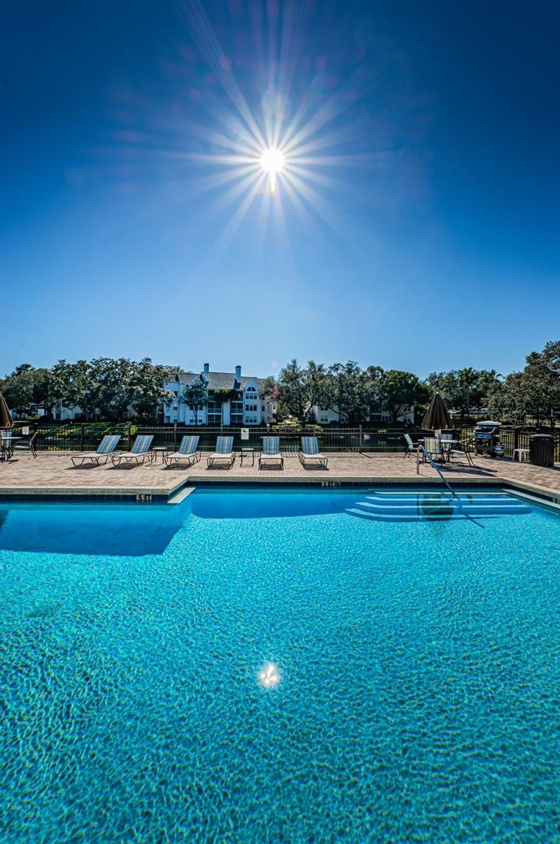 One or more photo(s) has been virtually staged. Enjoy serene water views from every room in this beautifully updated 2-bedroom, 2-bath ground-floor condo located in the gated community of The Bentley at Cobbs Landing. This bright and inviting home has been thoughtfully upgraded throughout and offers a desirable open layout ideal for comfortable living and entertaining. The modern kitchen features granite countertops, stainless steel appliances, and wood cabinetry, opening seamlessly to the dining and living areas. Tile flooring runs throughout, complemented by crown molding, plantation blinds, and fresh interior paint. A convenient inside laundry room includes a full-size washer and dryer. Both bedrooms function as private suites, each with ceiling fans, walk-in closets, and adjacent bathrooms with granite vanities and tub/shower combinations. Enjoy a spacious screened-in patio with additional storage, perfect for relaxing while taking in peaceful water views. This unit also includes a rare bonus storage room near the front entry, available in only a limited number of condos (small monthly fee). A standout feature is the excellent school district, with both elementary and middle schools just minutes away and within easy walking distance, making this an ideal location for families. Residents enjoy ample parking throughout the community, trash pickup, and resort-style amenities including a beautiful clubhouse, sparkling pool, hot tub, grilling stations, and a well-equipped fitness center. The gated entrance provides added security and peace of mind. Major updates include a newer roof (approx. 3 years, covered by the HOA), AC under 5 years, and a refrigerator approximately 3 years old. The HOA fee covers building insurance, cable TV, internet, roof, grounds maintenance, pest control, pool and hot tub maintenance, trash, private roads, recreational facilities, and reserves. Up to two pets allowed. Move-in ready and ideally located, this waterfront condo offers comfort, convenience, and a highly desirable lifestyle—schedule your private showing today!