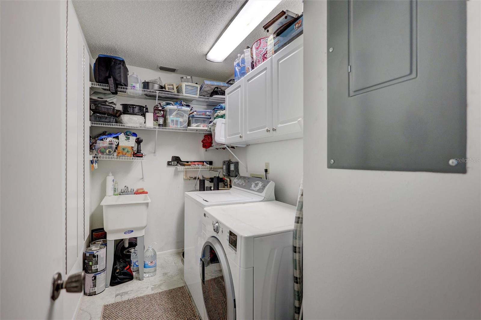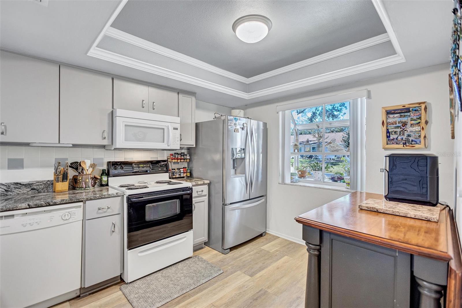 This end unit villa is right next to the covered carport and storage shed. A/C and hot water heater new in 2025, Roof new 2024. It's move in ready with luxury vinyl wood plank flooring, fresh interior paint throughout, and all the appliances; even a newer washer and dryer, are included. You will love the floorplan! Sunny kitchen with granite countertops and deep kitchen sink, pull out racks in the cabinets , pantry closet, & serving counter through to the oversize combined living & dining room space. Bedroom 2 is on the front adjacent to the guest bathroom. The spacious master suite is at the back on the home. The master features a walk-in plus a double closet, as well as a suite big enough for two with dual vanity and step-in shower. Great natural light throughout including a skylight in the great room. The finished sunroom is just off the living area and opens out to a patio and with new pavers, new hurricane windows, private walkway to the carport. Gutters have leaf builders over both front and back. Highland Lakes is Palm Harbor`s premier 55+ community! The low HL HOA fee includes free golf on 3 courses, heated pools & spa, tennis, pickleball & more sports, arts & crafts, entertainment & social events, Lake Tarpon amenities, hobby & interest groups, professional management, and just about anything else you might desire. Enjoy living within minutes of Gulf coast beaches, parks & trails, a wealth of restaurants & shopping