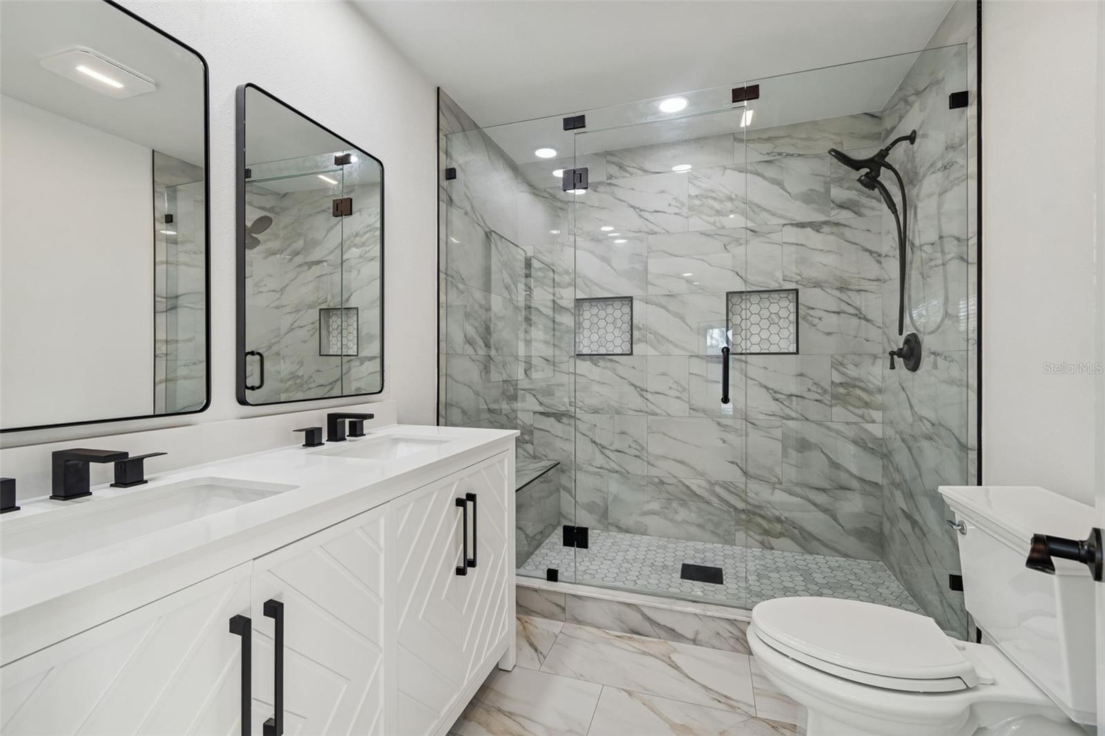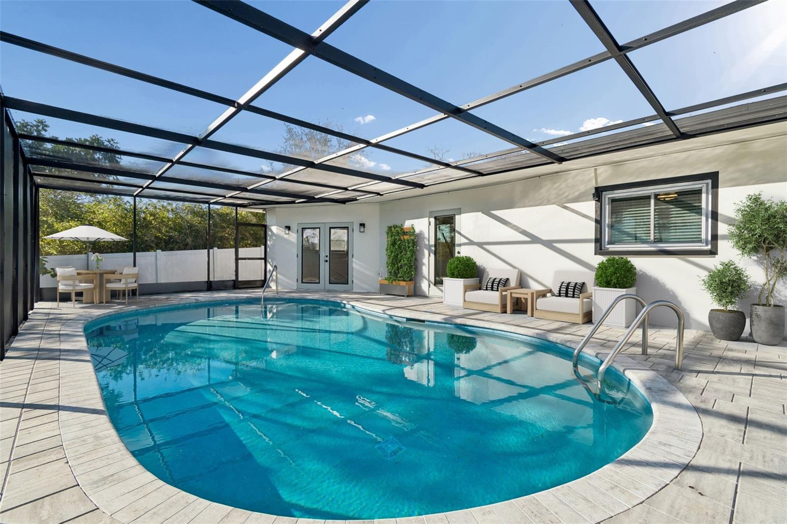 One or more photo(s) has been virtually staged. Welcome to 224 Timberlane Drive, tucked inside one of Palm Harbor’s best-kept secrets—the beautiful coastal community of Baywood Village. This beautifully renovated 4-bedroom, 2-bath home is a true stop-the-car stunner. Step inside to a showstopping designer kitchen featuring a massive island, quartz countertops, sleek modern cabinetry, a farmhouse sink, and brand-new stainless steel appliances—all opening seamlessly to the living area, perfect for entertaining and everyday living. An indoor washer and dryer closet adds extra convenience. The owner’s suite is a private retreat with direct access to the heated swimming pool and newly paved deck—ideal for morning coffee or a glass of wine at the end of the day. The spacious walk-in closet and beautifully remodeled ensuite bath feature a massive walk-in shower with bench, creating a calm, spa-like escape. Another rear room with pool access is perfect as an additional bedroom or home office. Upgrades are everywhere: freshly painted inside and out, new landscaping, new pavers in the front and on the pool deck, new irrigation, new doors, luxury vinyl flooring with 6” baseboards, and new tile in the bathrooms. You’ll also find all-new lighting fixtures and ceiling fans, plus an outdoor attached storage closet at the end of the driveway. Major systems are already done—new roof (2025), new central A/C (2025), pool resurfaced (2025), and new pool pump (2025). HOA membership is optional. Residents enjoy a clubhouse, playground, and lively community events such as golf cart parades, fishing tournaments, block parties, and chili cook-offs, with future plans for a multi-sport and pickleball court. With no deed or leasing restrictions, this move-in-ready home is perfectly suited as a primary residence, vacation getaway, or short-term rental investment. Bring your boat, golf cart, or RV and embrace the Florida lifestyle—just minutes from the Historic Tarpon Springs Sponge Docks, Wall Springs Park, Fred Howard Park Beach, Sunset Beach, Honeymoon and Caladesi Islands, the Pinellas Trail, and the world-famous Innisbrook Golf Resort, host of the annual PGA Tour.