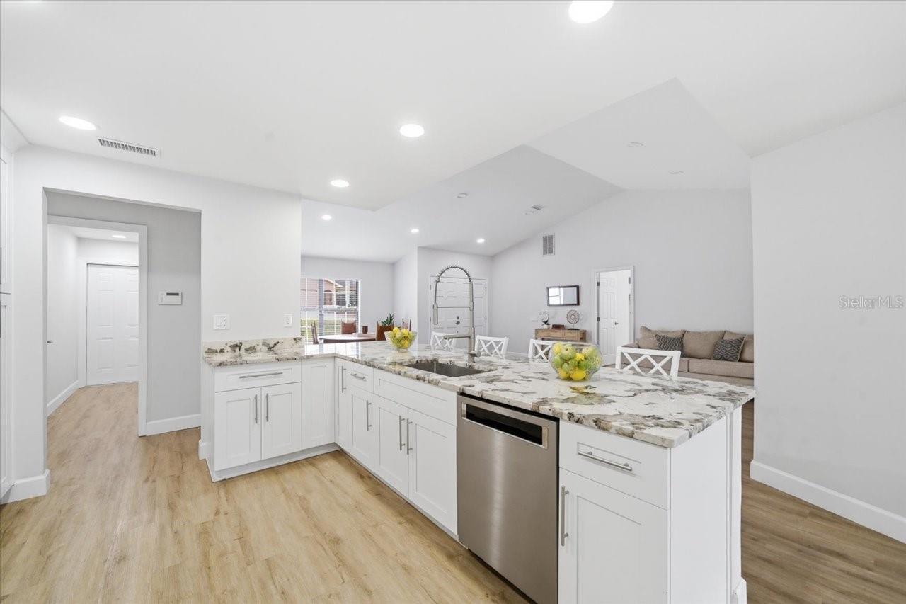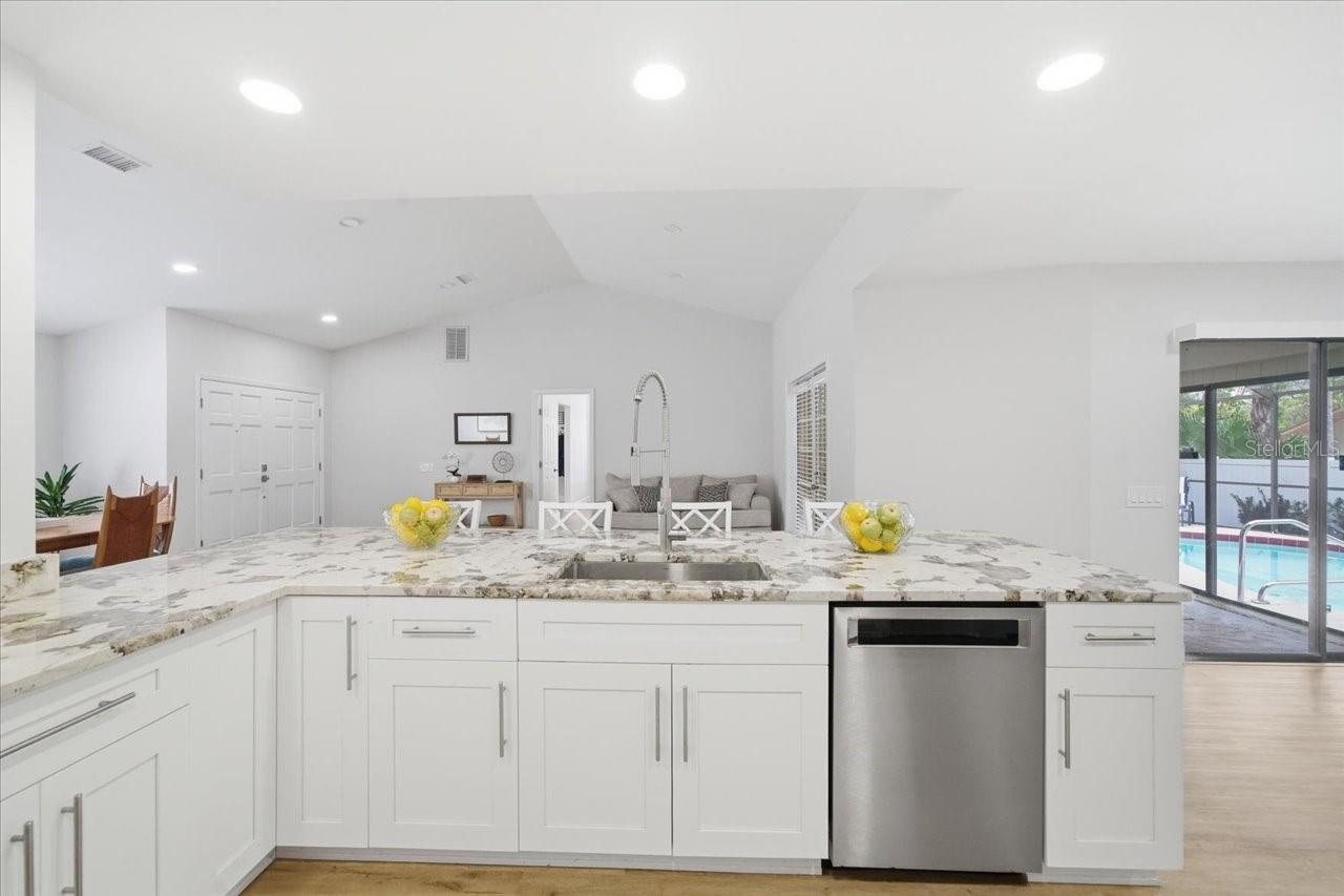 Welcome to this beautifully updated 3-bedroom, 2-bath, 2,312 sq ft pool home in the highly desirable Lake Valencia community of Palm Harbor. From the moment you arrive, it’s clear this residence has been meticulously maintained and thoughtfully modernized. Major Recent Upgrades Include: • Stunning new gourmet kitchen designed for both cooking and entertaining, featuring stainless steel appliances, gorgeous granite countertops, and custom cabinetry • Luxurious new primary bath with marble finishes, high-end fixtures and custom cabinetry • Fully renovated second bath • New flooring throughout • New laundry room • New lighting • Fresh interior and exterior paint • New privacy fence The home’s light-filled, open layout is enhanced by volume ceilings and an inviting air- conditioned sunroom/lanai—a perfect extension of the living space. Step outside to enjoy your own private oasis with a screen-enclosed pool and spa, and plenty of space for entertaining, lounging or dining. Additional highlights include: • Roof replaced in 2018 • Oversized two-car garage with mini-split A/C—excellent for storage, hobbies, working out or a workshop • Not in the Flood Zone and no flood insurance required here Lake Valencia is a quiet, deed-restricted neighborhood built around a peaceful lake, with a community play area and benches to enjoy the view. It has top-rated Palm Harbor schools, and convenient access to shopping, dining, beaches, parks, airports, and more. A truly exceptional property in a fantastic location—ready to welcome you home.